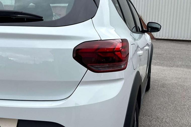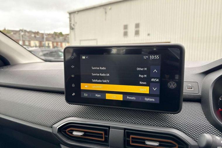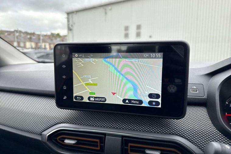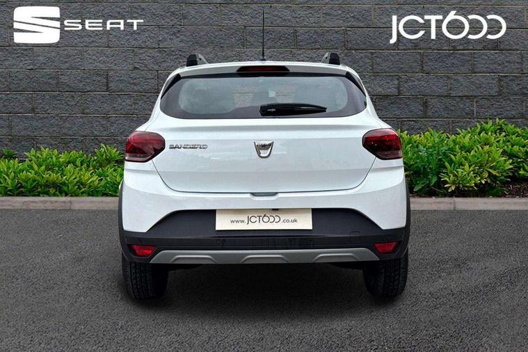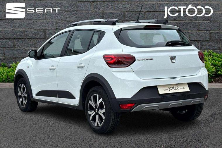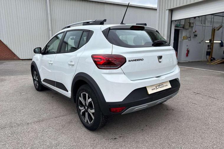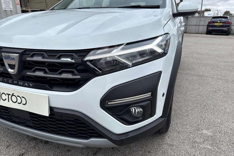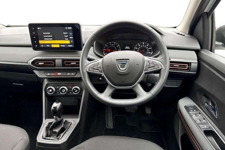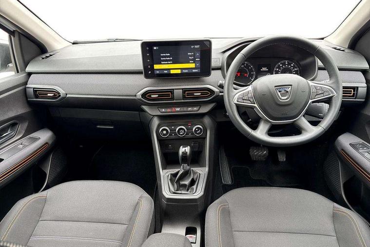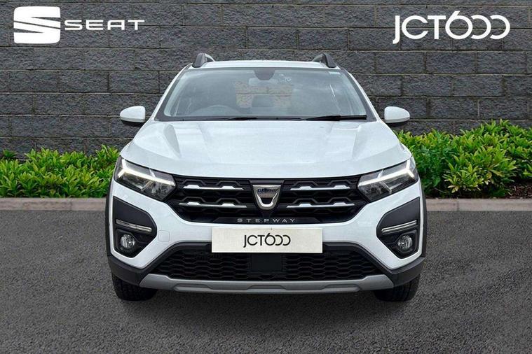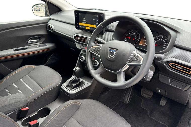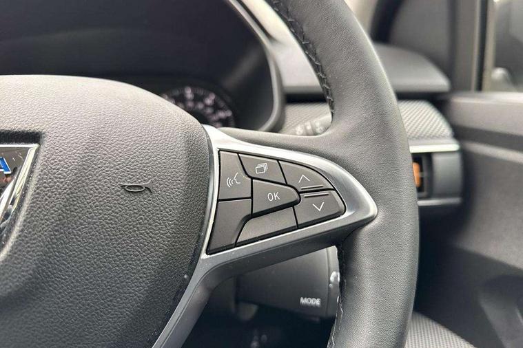 3.5" TFT instrument panel with on-board computer, Blind spot warning, Cruise control with speed limiter, eCall emergency call system, Eco mode, Electric power assisted steering, Front parking sensors, Rear parking sensors, Rev counter, Reversing camera, Stop/start system, 8" MediaNav - DAB Radio, Wifi smartphone replication, Bluetooth, 6 speakres, Apple CarPlay and Android Auto, USB connection for data transfer and charging, USB socket, 3 speed windscreen wipers, Auto lighting, Automatic wipers, Body colour door handles, Body colour door mirrors, Body coloured bumpers, Chrome longitudinal roof bars, Chrome radiator grille, Electrically adjustable and heated door mirrors, Front fog lights, Heated rear window, High level third brake light, LED automatic daytime running lights, LED Y-shape Dacia signature lighting, Modular roof bars, One touch electric front windows, Rear electric windows, Rear side wing doors, Rear wash/wipe, Stepway inscription on radiator grille and roof bars, Tinted windows, 1/3 to 2/3 split folding rear seats, 12 volt front socket, 12 volt rear socket, 3 height adjustable rear headrests, 3 seat rear bench, Automatic air conditioning, Driver + passenger vanity mirrors, Fabric upholstery, Fixed smartphone holder on dashboard, Height adjustable driver seat, Height adjustable front headrests, Height/depth adjustable steering wheel, High central armrest with console storage, Isofix points for child seats in both outer rear seats, Satin chrome interior door handles, Satin Chrome/Copper orange air vents, Single front passenger seat, Soft feel steering wheel, Steering wheel controls, 3x3 point rear seatbelts, ABS and Emergency brake assist, Automatic emergency braking system, Child locks on rear doors, Door open warning, Driver airbag, Electronic parking brake, ESC (Electronic Stability Control), ESP + Hill Start Assist, Front curtain airbags, Front seatbelt pretensioners, Front side airbags, Height adjustable front seatbelts, Passenger airbag, Seatbelt reminder for driver and front passenger, Tyre pressure monitor, Automatic central locking, Immobiliser, Keyless entry, Remote central locking, Decopart on instrument panel and door with textile, 16" Diamond-effect alloy wheels,