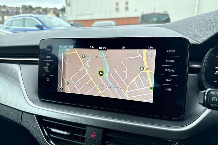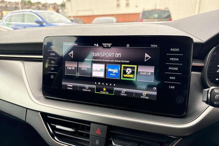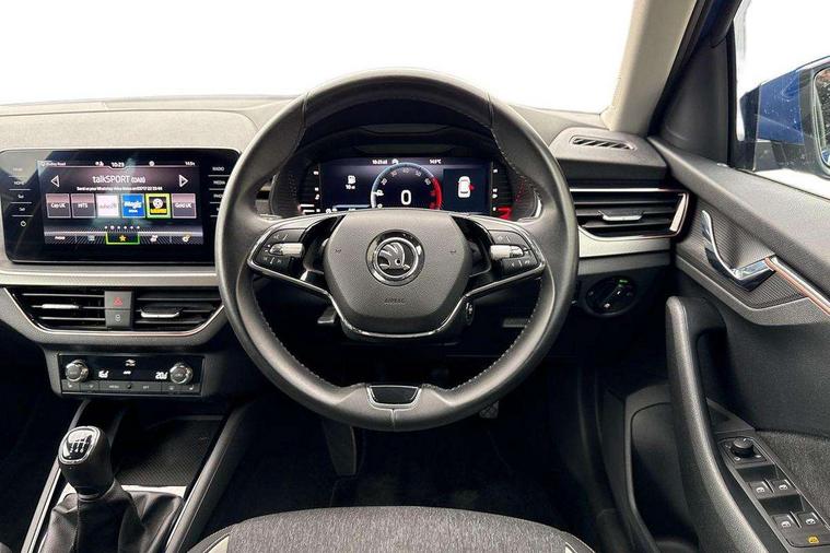 Amundsen satellite navigation with 9.2" touchscreen display, voice control, virtual cockpit and web radio, Bluetooth system, E-call, Front assist system, Gesture control, PAS, Rear view camera, Service indicator, Speed limiter, Virtual cockpit with 10.25" display, Wireless SmartLink for apple car play, android auto and mirrorlink, 8 Speakers, Auxiliary input socket, DAB Digital radio, Auto dimming rear view mirror, Body colour bumpers, Body colour door mirrors and handles, Chrome grille surround, Electric folding door mirrors, Electrically adjustable and heated door mirrors, Front and rear electric windows, Headlight range control, Heated rear window, LED rear lights - low functionality, Light sensors, Privacy glass, Rear fog lights, Rear side wing doors, Rear wiper, 12V Accessory socket in centre console, 3 seat bench in 2nd row, Chrome inner door handles, Dual zone climate control, Front head restraints, Glove compartment with illumination, Ice scraper, Isofix child seat fittings on outer rear seats, ISOFIX on front passenger seat, Manual lumbar support for front seats, Rake/reach adjustable steering wheel, Reading lights, Single front passenger seat, Sun visors with illumination on front passenger, Textile floor mats, Third rear headrest, Top tether for front passenger seat, Umbrella in driver's door, 3x3 point rear seatbelts, Airbags - driver and front passenger, ESP, Front passenger airbag deactivation switch, Front side airbags with curtain airbags, Hill hold control, Manual parking brake, Manual rear child locks, One tone horn, Rear disc brakes, Seatbelt reminder for driver an co-driver, Traction control, Tyre pressure monitor, Anti-theft alarm system with interior monitoring, backup horn, towing protection and remote central locking with SAFE system, Anti-theft wheel bolts, Electronic engine immobilizer, Latice curved decorative insert on the dashboard with hot stamping in copper and white ambient lighting white,