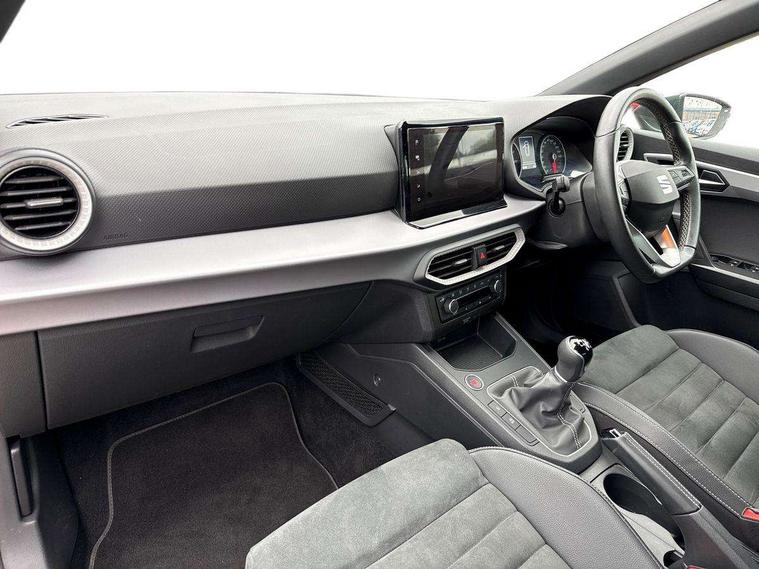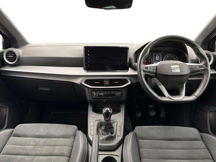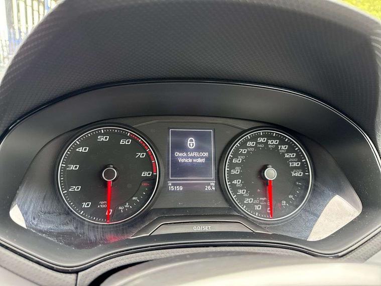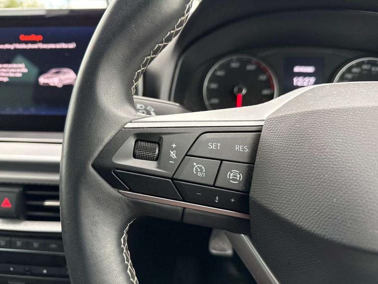 'Lights On' Reminder warning buzzer, 8" Digital cockpit, 9.2" touchscreen navigation system with type C USB socket, Voice control and DAB/AM/FM radio, Auto start and stop system, Bluetooth audio streaming with handsfree system, Digital clock, E-call, Full link smartphone integration with mirror link, wireless apple carplay, Google android auto + USB Type C cable for apple and android devices, Lane assist, Low fuel warning light, Outside temperature gauge, Power Steering, Rear parking sensor, Seat connect with safety, service, remote and online, SEAT logo boot release, Speed limiter, Trip computer, Comfort suspension, Auxiliary input socket, Radio/MP3 player, SD card slot, Steering wheel mounted controls, Anti theft roof antenna, Atom grey door mirrors, Auto dimming rear view mirror, Automatic rain sensing wipers, Body colour bumpers, Body colour door handles, Chrome window surround and upper grille surround, Dark tinted rear windows, Electric adjustable/heated/folding door mirrors, Electric front windows, Electric headlight adjustment, Electric rear windows, Front/rear fog lights, FULL LED automatic headlights with dynamic headlight range control, coming and leaving home, LED daytime running lights, LED tail lights, Rear side wing doors, Rear wiper, Third brake light, 3 seat bench in 2nd row, 60/40 split folding rear seat, Ambient interior lighting, Chrome detailing and black headlining, Comfort seats, Dual zone climate control with combination filter, Front centre armrest, Front courtesy lights, Front cupholders x 2, Front reading lights, Gear shift indicator, Glovebox, Height adjustable front and rear headrests (five), Height adjustable front seats, Height/reach adjust steering wheel, Illuminated air vent surrounds, Illuminated boot, Instrument lighting with brightness control, Isofix, Leather multifunction flat bottomed sports steering wheel, Microsuede cloth upholstery, Passenger sunvisor, Single front passenger seat, Storage pockets on back of front seats, Sunvisors with mirror and driver side card holder, 3 point seatbelts on all 3 rear seats, ABS, Active front headrests, Child locks on rear doors, Electronic stability control, Energy recovery system, Front assist forward collision warning and autonomous emergency braking, Front driver and passenger side airbags with curtain airbag and front passenger airbag deactivation, Hill hold control, Multi-Collision braking, Seat belt reminder for front and rear seats, Tiredness recognition system, Tyre pressure monitoring system, Electronic engine immobiliser, KESSY Keyless entry and go, Locking wheel bolts, Perimeter alarm and interior monitoring with backup horn and tow away protection, Remote central locking + deadlocks, 17" Dynamic machined alloy wheels in Nuclear grey,