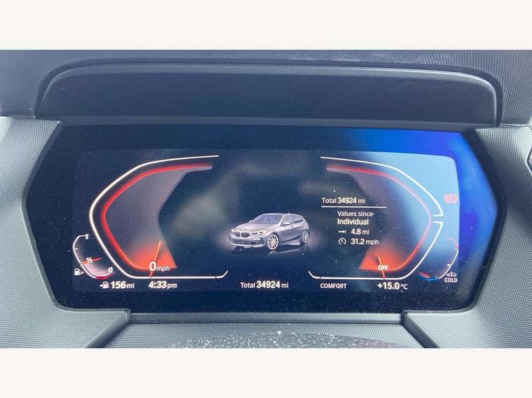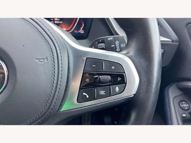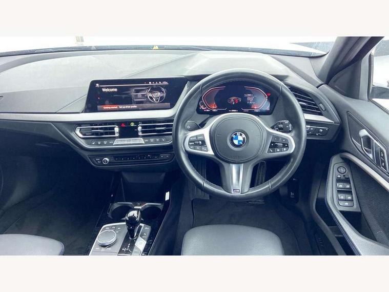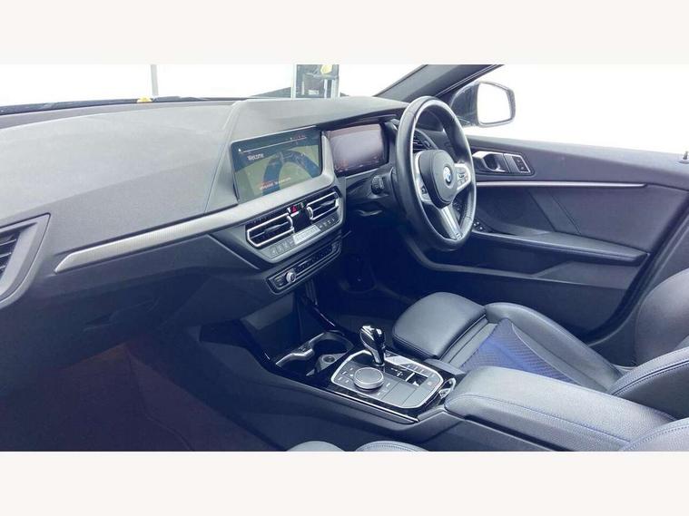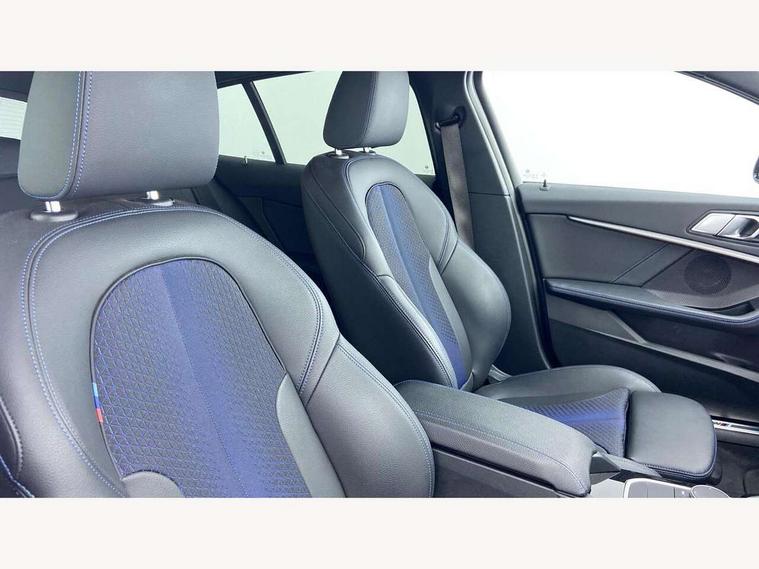 Active guard plus, Attentiveness assist, BMW ConnectedDrive online services, BMW Teleservices, Check Control warning system for monitoring of lights and door/luggage compartment open warning, Cruise control with brake assist, Eco pro mode, Front axle single joint with specific axle kinematics to minimise drive influences on steering + provide increased rigidity agile driving behaviour, Integrated owners handbook, Lane departure warning system, Oil sensor for level and grade, On board computer, Optimum shift indicator, Personal Profile, Pull away assistant, Rigidly mounted rear subframe - Multi link construction with separate spring / damper configuration and excellent driving characteristics, Speed limit Info including no-overtaking indicator, Speed limiter, Aluminium lightweight construction, Anti roll bar front and rear, Balancer shaft, Double VANOS twin scroll turbocharging system, Drive Performance Control, Electronic differential lock, High precision injection, M sport suspension, Petrol Particulate Filter, Twin tube gas filled shock absorbers with degressive characteristic curve, VALVETRONIC engine management, DAB Digital radio, Auto dimming rear view mirror, Automatic headlight beam throw control, Automatic windscreen wipers and automatic headlight, Body colour door handles, Body colour mirror caps, Body colour roof trims, Chrome 'M' logo side designation, Chrome exhaust twin tailpipes round 90mm in left, Chrome kidney grille frame with Satin Aluminium struts, Direction indicator side lights in exterior mirrors, Fading support, Folding side mirrors with auto dimming/folding wing mirrors with auto dimming, Follow me home headlights, Front and rear bumper system with replaceable deformation elements, Front and rear electric windows with open and close fingertip control, anti trap facility and comfort closing, Front door sill finishers in black plastic with M designation in metallic look, Green tinted heat protection glazing, Heated, electrically adjustable exterior mirror aspheric on driver side, convex on passenger side, High gloss shadowline window frame, Recess cover mirror frames and B/C pillar embelisher trim, High level third brake light, Integrated front windscreen with washer jets, LED daytime running lights, LED eyebrow turn indicators, LED front fog lights, LED Headlights, Lightweight engineering, Matt black air guide grilles, Matt black wheel arch trim, Model designation on electric bootlid, Nearside reverse light in rear light cluster, Preparation for high beam assistant, Rear fog lights, Rear side wing doors, Rear window wiper, Shark fin antenna, Trailer stabilisation logic, Visible VIN plate, Welcome lighting, 12V power socket in front centre console with blanking plug, 3 rear seat head restraints, 3 seat bench in 2nd row, 3 spoke sports leather steering wheel with black leather and stitching, pearl chrome decorative finish, specific M Badge, Anthracite headlining, Black boot net with lashing eyes, Cargo function on 2nd seat row, Child seat ISOFIX attachment for two outer rear seats and front passenger seat with anchorage points, Conditioned based service, Driver and front passenger seat heating, Folding rear clothes hook, Four grab handles integrated in roof lining, Front and rear door pockets with bottle holders, Front and rear side armrest integrated into door trim, Front armrest, Front sports seats, Glove compartment, Height adjustable front head restraints, Luggage compartment for bag hooks on left and right, foldable luggage compartment liner and four lashing eyelets, Manual adjust steering wheel, Multi-function controls for steering wheel, Single front passenger seat, Storage compartment in centre console, Sun visors with vanity mirrors and insert tab, Two front centre console cupholders, Two zone automatic air conditioning, Velour floor mats, Additional interior lighting pack - 1 Series, BMW live cockpit professional pack- 1 Series, Connected pack professional - 1 Series, Interior lights pack - 1 Series, M Sport exterior styling aerodynamics pack - 1 Series, 2 tone horn, 3 point seatbelts on all seats, front pyrotechnic belt tensioners, stopper and belt force limiters, rear coded belt buckles, Airbags - Front driver/passenger, front and rear curtain head protection, front side, manual deactivation of front passenger airbag, Anti lock braking system (ABS) with brake assist, BMW emergency call, Brake drying, Braking readiness, Child proof locking system in rear door, City braking function, Comfort modes, Cornering brake control, Crash sensor activating central locking release, hazard warning lights, fuel cut off, interior lighting + activation of safety battery terminal clamp, Driver and front passenger seat belt security check, Dynamic stability control + (DSC+), Dynamic Traction Control - DTC, Electrically operated hand brake including automatic hold function, Front and rear disc brakes, Seatbelt warning, Side impact protection, Tyre pressure monitoring system, Warning triangle and first aid kit, Central locking switch for all doors, fuel filler cap and luggage compartment, Deadlocking function system to all doors, Drive away locking system on all doors and luggage compartment with de-activated in iDrive settings, Locking wheel bolts, Remote control with integrated key with High-gloss Black inlay and M designation and 1 button for open/ close lock, window, open luggage compartment, Start/stop button illuminated in centre console with keyless engine start and auto start stop deactivation button, Thatcham Cat.1 alarm and immobiliser, Wheel slip limitation close to the actuator (ARB), Contrast stitching on instrument panel, Electrically powered 12V compressor, Reduced rolling resistance tyres,