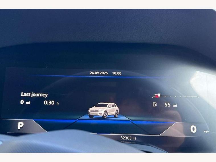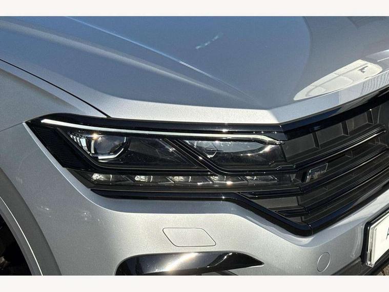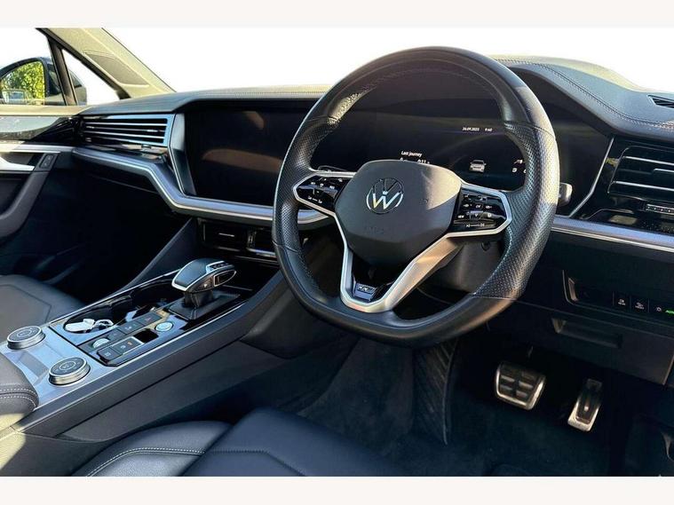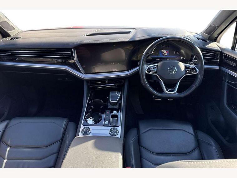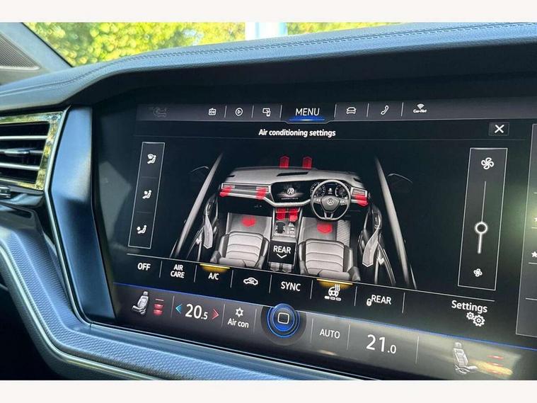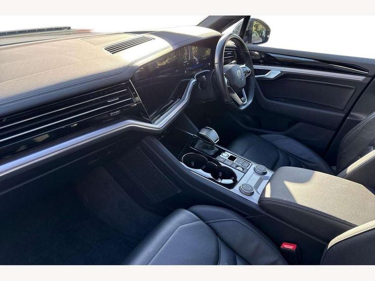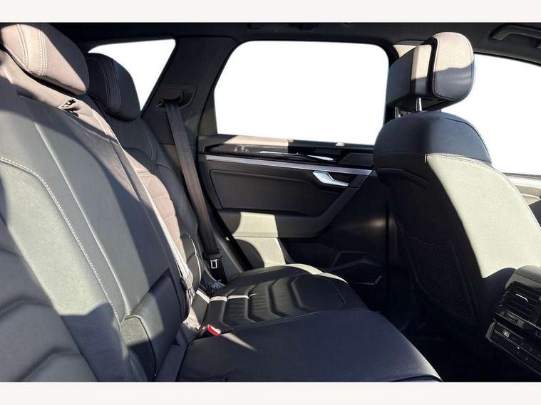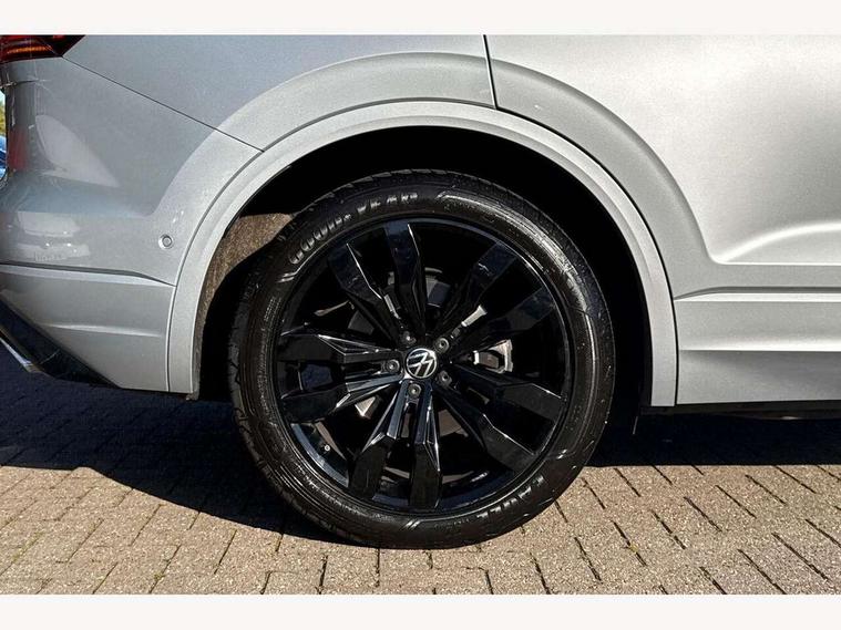 2D/3D map view, ACC - Adaptive cruise control with front assist, forward collision warning, distance monitoring, city emergency brake and speed limiter, Apple car play/Android Auto, Audible and visual fatigue detection system, Bluetooth hands free telephone connection, Car information display, Drive select with Damper control, Driver alert system, Dusk sensor, Dynamic road sign display camera controlled system with visual warning for traffic and road signs, eCall emergency system, Fully electric tailgate + keyless entry and start, Instrument cluster, MirrorLink, Multifunction camera with lane assist, Multifunction computer premium with 7" colour display, One touch indicators with repeat function, Service interval indicator, Speed sensitive power steering, Start/stop system with regenerative braking, Tailgate power latch, Think blue trainer driver tips and journey analysis, Traffic sign recognition, Voice control system, Wireless Smartphone charger, Torsen limited slip differential, DAB Digital radio, Dynamic navigation based on TMC+, Gesture control for infotainment system, Multi device interface (MDI) with illuminated USB-C connection, Music playback - MP3, WMA and AAC files, SD card slot, Simultaneous pairing of 2 compatible mobile devices, SMS functionality - read, compose and send SMS messages using touch-screen display, Title and cover art display, Volkswagen media control, Adaptive low beam for urban and motorway use, Auto dimming rear view mirror, Automatic coming/leaving home lighting function, Automatic headlights, Black anodised roof rails, Black door mirrors, Black rear diffuser, Black side window surrounds, Black upper and lower grille louvres extending into headlights and radiator grille, Body colour door handles, Body coloured wheel arches, C signature gloss black front air intake, Chromed tailpipe on the left and right integrated in the bumper with trapezoid design, Dynamic headlight range control, Electric front tilt/slide panoramic sunroof and fixed rear sunroof, Electrically power adjustable, heated, folding, auto dimming, front passenger exterior door mirror lowering function, Front and rear electric windows, Galvanised body, Gloss black finish B pillar, Gloss black rear diffuser, Headlight washers, Heat insulating glass in side and rear windows, Heated windscreen washer jets, IQ.Light-LED matrix headlight, daytime running light with dynamic cornering light and indicator, LED rear fog light, LED rear number plate lights, Plastic scuff plates in door apertures, Poor weather light, Puddle lights, Rain sensor, Rear wiper, 12V socket in front and rear centre console and boot, 2 Coat hooks on B pillar, 3 rear head restraints, 3 spoke sport heated leather multi-function sports steering wheel with gear shift paddles - generation 2, 4 way adjustable front head restraints, 4 way electric lumbar support for driver and front passenger, 4 zone climate control, 40:20:40 split folding slide/recline rear seat, B pillar vents, Black lower edge of door extending sills, Branded points of interest, Double sun visor for drivier and passenger with LED illuminated vanity mirrors, Electric luggage compartment cover, Folding rear centre armrest with 2 cupholders, Front + rear carpet mats, Front centre armrest with storage box, Gear shift indicator, Height/reach adjust steering wheel, Illuminated air conditioned glovebox, Isofix preparation for 2 rear child seats, Jack and tool kit, Leather trimmed gear knob with gloss black inlay/aluminum trim, Leatherette door trim, LED luggage compartment lighting, Load through provision, Luggage compartment with load lashing rings, Plastic loading edge protection, Rear seat remote release levers, Soul black headlining, Stainless steel pedals, Innovision cockpit pack - Touareg, R line styling pack - Touareg, 3 point front seatbelts with pre-tensioners, ABS, Active bonnet, Automatic post collision braking system, Curtain airbags, Driver/Front Passenger airbags, EBD + Brake Assist, EDL, Electronic parking brake with auto hold, ESC with ASR, Front seat side impact airbags, Hill descent control, Hill start assist, Passenger airbag deactivate switch, Seatbelt warning lamp and buzzer, Three 3 point rear seatbelts, Two tone horn, Volkswagen roadside assistance, Warning triangle and first aid kit, Alarm with interior monitoring in cab, backup horn and towing protection, Child security locks for front and rear doors, Electronic engine immobiliser, Remote central locking, Black decorative trims on the side windows, High gloss black centre console,