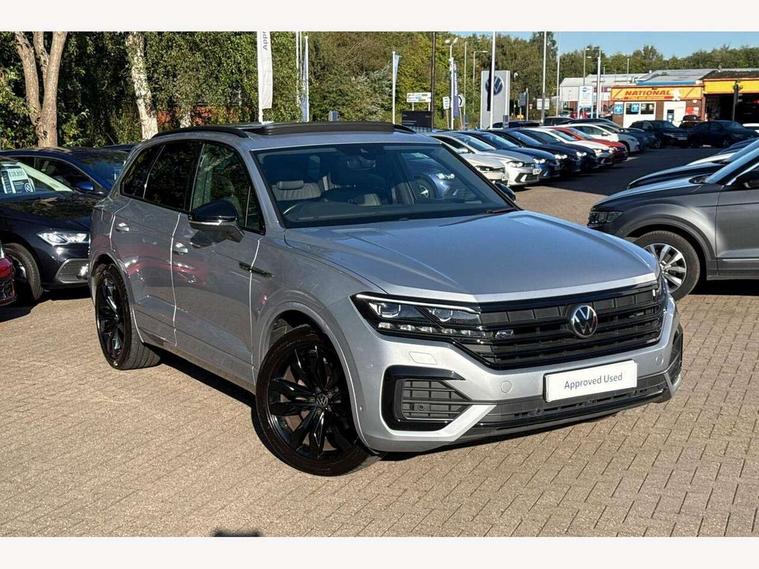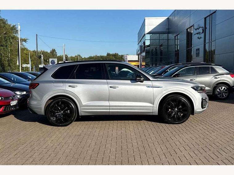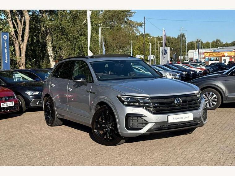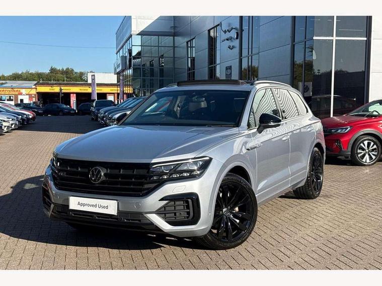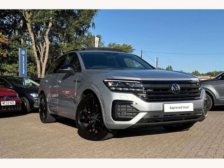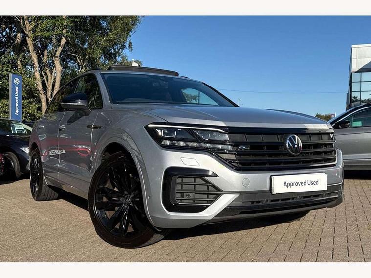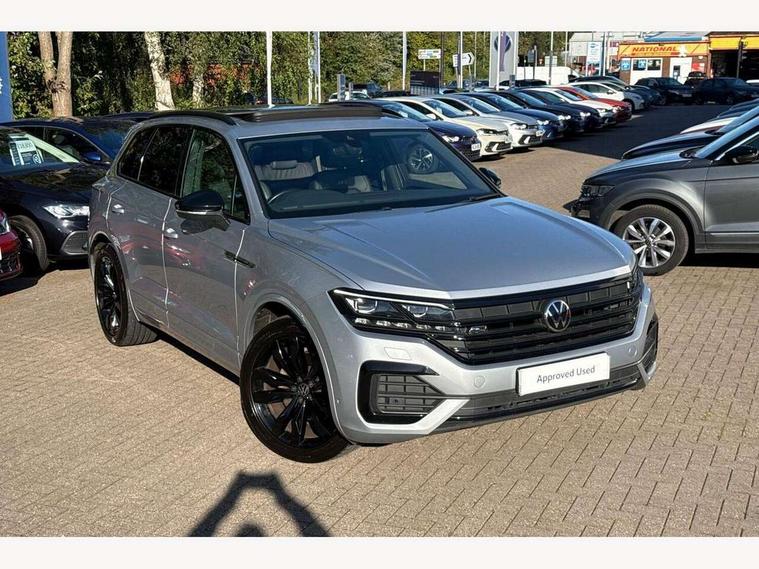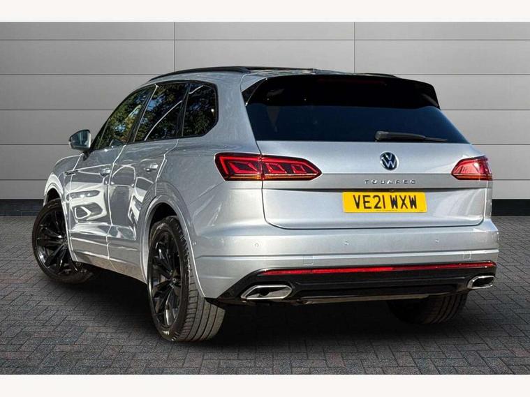 2D/3D map view, ACC - Adaptive cruise control with front assist, forward collision warning, distance monitoring, city emergency brake and speed limiter, Apple car play/Android Auto, Audible and visual fatigue detection system, Bluetooth hands free telephone connection, Car information display, Drive select with Damper control, Driver alert system, Dusk sensor, Dynamic road sign display camera controlled system with visual warning for traffic and road signs, eCall emergency system, Fully electric tailgate + keyless entry and start, Instrument cluster, MirrorLink, Multifunction camera with lane assist, Multifunction computer premium with 7" colour display, One touch indicators with repeat function, Service interval indicator, Speed sensitive power steering, Start/stop system with regenerative braking, Tailgate power latch, Think blue trainer driver tips and journey analysis, Traffic sign recognition, Voice control system, Wireless Smartphone charger, Torsen limited slip differential, DAB Digital radio, Dynamic navigation based on TMC+, Gesture control for infotainment system, Multi device interface (MDI) with illuminated USB-C connection, Music playback - MP3, WMA and AAC files, SD card slot, Simultaneous pairing of 2 compatible mobile devices, SMS functionality - read, compose and send SMS messages using touch-screen display, Title and cover art display, Volkswagen media control, Adaptive low beam for urban and motorway use, Auto dimming rear view mirror, Automatic coming/leaving home lighting function, Automatic headlights, Black anodised roof rails, Black door mirrors, Black rear diffuser, Black side window surrounds, Black upper and lower grille louvres extending into headlights and radiator grille, Body colour door handles, Body coloured wheel arches, C signature gloss black front air intake, Chromed tailpipe on the left and right integrated in the bumper with trapezoid design, Dynamic headlight range control, Electric front tilt/slide panoramic sunroof and fixed rear sunroof, Electrically power adjustable, heated, folding, auto dimming, front passenger exterior door mirror lowering function, Front and rear electric windows, Galvanised body, Gloss black finish B pillar, Gloss black rear diffuser, Headlight washers, Heat insulating glass in side and rear windows, Heated windscreen washer jets, IQ.Light-LED matrix headlight, daytime running light with dynamic cornering light and indicator, LED rear fog light, LED rear number plate lights, Plastic scuff plates in door apertures, Poor weather light, Puddle lights, Rain sensor, Rear wiper, 12V socket in front and rear centre console and boot, 2 Coat hooks on B pillar, 3 rear head restraints, 3 spoke sport heated leather multi-function sports steering wheel with gear shift paddles - generation 2, 4 way adjustable front head restraints, 4 way electric lumbar support for driver and front passenger, 4 zone climate control, 40:20:40 split folding slide/recline rear seat, B pillar vents, Black lower edge of door extending sills, Branded points of interest, Double sun visor for drivier and passenger with LED illuminated vanity mirrors, Electric luggage compartment cover, Folding rear centre armrest with 2 cupholders, Front + rear carpet mats, Front centre armrest with storage box, Gear shift indicator, Height/reach adjust steering wheel, Illuminated air conditioned glovebox, Isofix preparation for 2 rear child seats, Jack and tool kit, Leather trimmed gear knob with gloss black inlay/aluminum trim, Leatherette door trim, LED luggage compartment lighting, Load through provision, Luggage compartment with load lashing rings, Plastic loading edge protection, Rear seat remote release levers, Soul black headlining, Stainless steel pedals, Innovision cockpit pack - Touareg, R line styling pack - Touareg, 3 point front seatbelts with pre-tensioners, ABS, Active bonnet, Automatic post collision braking system, Curtain airbags, Driver/Front Passenger airbags, EBD + Brake Assist, EDL, Electronic parking brake with auto hold, ESC with ASR, Front seat side impact airbags, Hill descent control, Hill start assist, Passenger airbag deactivate switch, Seatbelt warning lamp and buzzer, Three 3 point rear seatbelts, Two tone horn, Volkswagen roadside assistance, Warning triangle and first aid kit, Alarm with interior monitoring in cab, backup horn and towing protection, Child security locks for front and rear doors, Electronic engine immobiliser, Remote central locking, Black decorative trims on the side windows, High gloss black centre console,