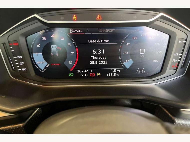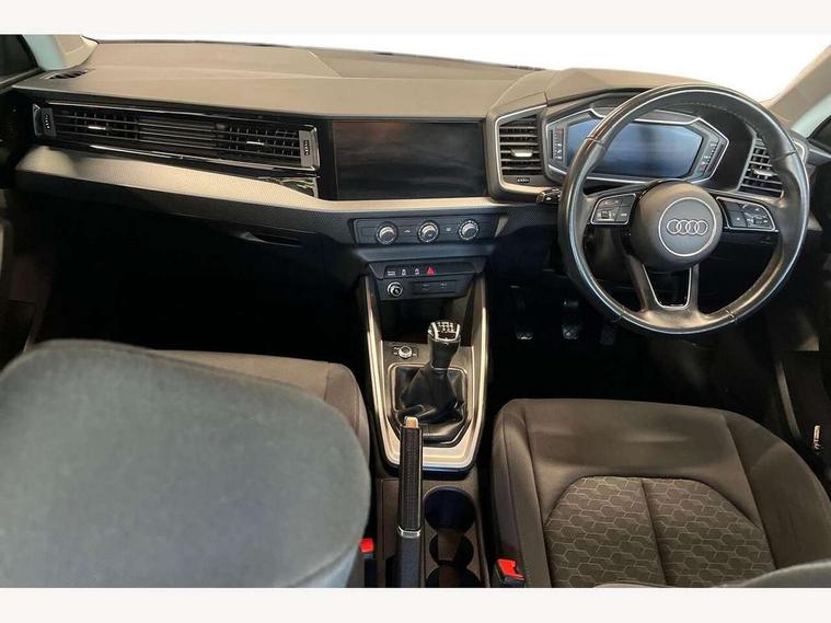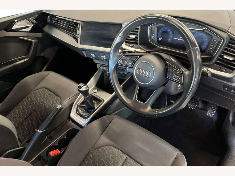 10.25" Digital instrument cluster display classis style instrument dials + speed, odometer, time, outside temperature, telephone menu + fuel level warning, Audi connect safety emergency and service including E-call, Audi drive select - power steering assistance + engine, Audi smartphone interface with connect compatible smartphone via USB directly MMI display + Nav, music, third party apps controlled via MMI controller, Automatic start/stop system, Bluetooth interface, Cruise control, Driver's information system, Electromechanical power steering, Lane departure warning system, Service interval indicator, Speed limiter, Voice control system, Washer fluid level indicator, Dynamic suspension, 1 x SDXC card reader, 2 x USB type C connection points, DAB Digital radio, MMI radio plus with 8.8" colour MMI display screen and MMI touch, Auto dimming rear view mirror, Body coloured bumpers, Body coloured door mirrors, Electric front and rear windows, Electrically adjustable, heated, folding door mirrors with integrated LED side indicator, Front side air inlets in grained matt black and C frame in titanium black, Heat insulating glass windscreen and side windows, Heated rear windscreen, LED headlights with LED rear lights + dynamic rear indicators + headlight adjustment and high beam, turning light + LED daytime running lights, Radiator grille and rear diffuser in matt titanium black, Radiator protective grille frame in matt aluminium silver, Rain and light sensors, Rear fog lights, Rear wiper, Scandium grey tailpipe trim, Side front spoiler lips in grained matt black, 12V socket in centre console with two cup holders, 3 rear seats with headrests, 40:60 Split folding rear seat or folded fully, Door sill trims with aluminium inlay, Driver and passenger seat with manual height adjust with forward and backwards adjustment, Front head restraints, Front/rear floor mats, Height and reach adjustable steering wheel, ISOFIX child seat mounting for front passenger and outer rear seats including top tether attachment point of outer rear seats, Leather gear knob with aluminium trim, Leatherette handbrake grip, Luggage compartment light with front and rear reading lights, Manually adjustable lumbar support in front seats, Novum cloth upholstery with front sport seats, Titanium grey cloth headlining, Luggage compartment pack - A1, 3x3 point rear seatbelts, Audi pre-sense front with pedestrain and cyclist recognition, Brake assist function, Driver and front passenger airbag with front side and head airbags, Electronic Stability Control including ABS, EBD, ASR and EDL, Front and rear seatbelt reminder, Front passenger airbag deactivation switch, Hill hold assist, Seatbelt height adjustment for front seats, Seatbelt monitoring, Tyre pressure warning light, Warning triangle and first aid kit, Anti theft alarm, Anti theft wheel bolts and loose wheel warning, Immobiliser, Remote central locking with 2 foldaway keys, Aluminium trim for control switches, air vents and digital instrument cluster, Silver grey accent areas including air vents, door handle recesses and centre console in diamond paint finish, Slate grey inlays polygon structure in fine paint finish,