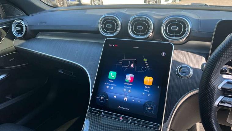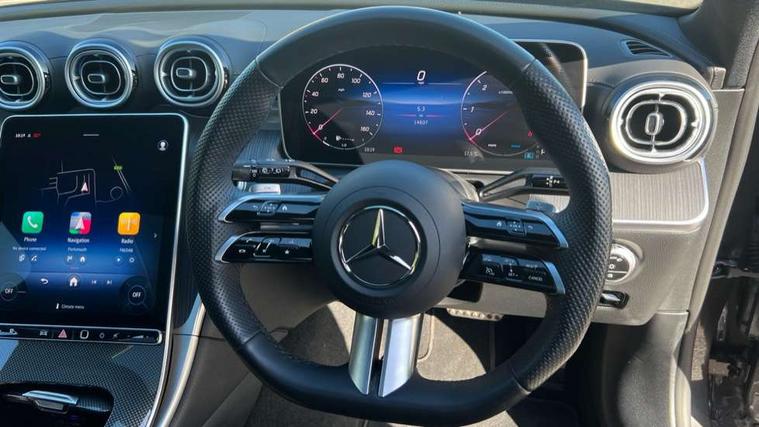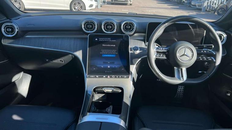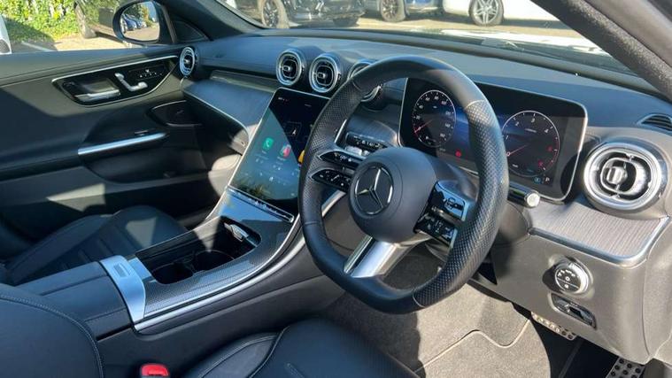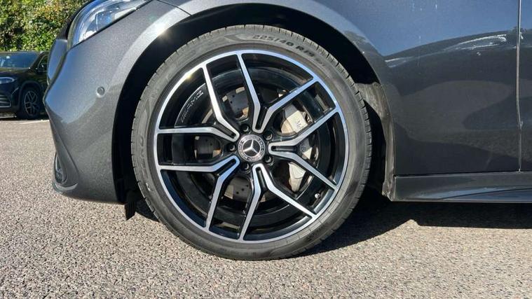 Active park assist with parktronic system, Attention assist, Bluetooth system, Collision prevention assist plus, Comand Online HDD Nav with media interface, radio/CD/DVD/MP3, 10.25 screen, linguatronic voice control, DYNAMIC SELECT with a choice of driving modes (ECO, Comfort, Sport, Sport+ and Individual), Multi function trip computer, Outside temperature gauge, Power opening/closing tailgate, Remote boot release, Reversing camera, Service indicator (ASSYST PLUS), Smartphone integration with Apple CarPlay and Android auto, Wireless charging, Diesel particulate filter, 2 USB ports in centre console, DAB Digital radio, Mid-range sound system with 7 speakers and 225W amplifier, SD card slot, Steering wheel mounted audio controls, Adaptive brake lights, Aerial in rear window, AMG body styling, Body coloured bumpers, Body coloured door mirrors, Chrome pins diamond radiator grille with integrated stars, Chrome roof rails, Electric windows one touch open/close, Electrically adjustable and heated door mirrors, Green tinted glass, Heated windscreen washers, LED daytime running lights, LED Indicators, LED tail lights, LED third brake light, Multi beam LED headlights, Rain sensor windscreen wipers, Rear wiper, Side windows surround in polished aluminium, Twin exhaust pipes, 2 cupholders in front centre console, 3 spoke flat bottom AMG steering wheel in nappa leather, 40:20:40 split folding rear seats, AMG floormats, AMG sports seats, Auto Mercedes-Benz child seat recognition sensor, Dual zone automatic climate control, Electric front seat height adjustment, Front and rear head restraints, Front centre armrest with storage compartment, Front door sills with Mercedes Benz lettering, Gearshift paddles, Heated front seats, Illuminated glovebox, Interior lighting - 64 colour Ambient lighting, Load compartment cover, Multifunction steering wheel, Rear top tether child seat ISOFIX attachment, Sports pedals with stainless steel surfaces and rubber studs, Sunvisors with illuminated vanity mirrors, Lighting pack - C class, Mirror pack - C Class, Seat comfort pack - C Class, Stowage space pack - C Class, 3 rear 3 point seatbelts, ABS with Brake Assist, Active bonnet, Adaptive brake system, Black seat belts, Brake calipers with Mercedes-Benz lettering + perforated brake discs, Child proof door locks, Crash sensor, Drivers knee airbag, Drivers pelvis airbag, Dual stage driver/passenger airbags, Electronic parking brake, ESP with ASR, Front passenger seat occupancy sensor, Front side airbags, Hill start assist, Rear seatbelt warning indicator, Tyre pressure monitoring system, Warning triangle and first aid kit, Window airbags, Alarm system/interior protection/immobiliser, Chrome surround electric key, Remote central locking, Tyre inflation kit,