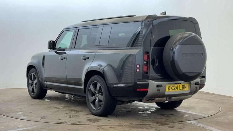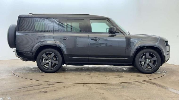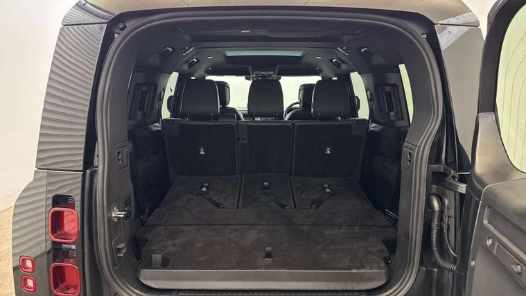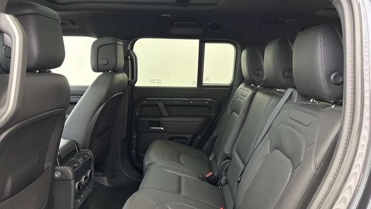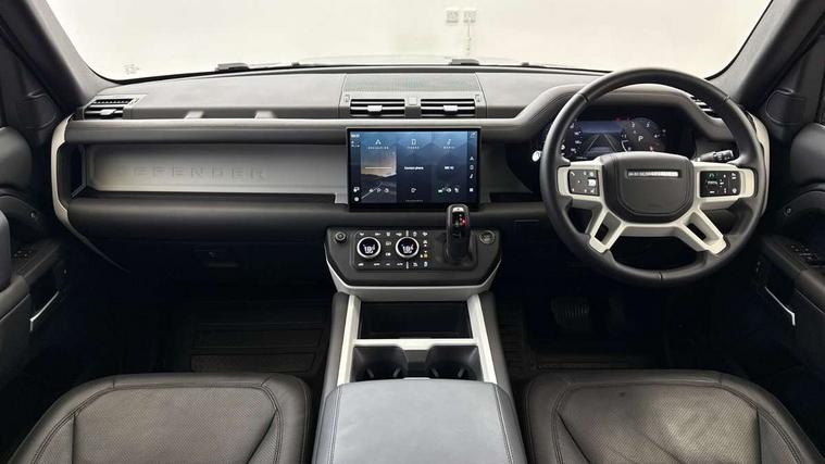 1 x USB-C (power only) & 1 x USB-C (power & data) in Row 1, 2 x USB-C in Row 2, 11.4" touchscreen, 2 x USB-C in Row 3, 360 degree parking aid, 3D Surround Camera with 360 View, 180 Rear View, Front Traffic Detection, Forward Vehicle Guidance, Tow Hitch Assist and clear sight Ground View, Adaptive cruise control, Android Auto, Apple CarPlay, Blind spot assist, Bluetooth system, Brake pad wear indicator, Clear exit monitor, Connected navigation pro, Driver condition monitor, Electric power assisted steering (EPAS), Interactive driver display, Lane keep assist, Push button start, Rear collision monitor, Rear traffic monitor, Traffic sign recognition with adaptive speed limiter, Trip computer, Wireless device charging, 8 speed automatic transmission, Adaptive dynamics, All wheel drive system, Electronic air suspension, Twin speed transfer box, DAB Radio (Digital Audio Broadcasting), Meridian 700w surround sound audio system with 15 speakers, Pivi pro connected, Automatic headlight levelling, Automatic headlights, Black exposed rear recovery eyes, Black roof rails, Body coloured bonnet, Centre high mounted stop light, Electric heated/power fold door mirrors with approach lights and auto dimming driver side, Electric windows with one touch open/close and anti-trap, Follow me home lighting, Front fog lights, Heated rear window with timer, Heated windscreen, Illuminated metal treadplates with brand name script, LED tail lights, Matrix LED headlights with signature DRL, Privacy glass, Puddle lights, Rain sensing windscreen wipers, Rear fog lights, Rear side wing doors, Rear wiper, Side hinged tailgate, Sliding panoramic roof, Standard tail door, Trailer stability assist, 12V power socket in loadspace, 3 seat bench in 2nd row, 3 seat bench in third row, Air quality sensor, Cabin Air Purification plus, Configurable cabin lighting, Durable rubber cabin flooring, Durable rubber loadspace flooring, Electric reach + rake adjustable steering column, Electrically adjustable steering column, Extended leather upgrade, Footwell lights, Front passenger isofix child seat attachment, Heated steering wheel, Loadspace cover, Loadspace Hook, Multifunction steering wheel, Overhead stowage for sunglasses, Rear headrests, Rear ISOFIX, Rear reading lights, Single front passenger seat, Soft close tail door, Storage glovebox, Sunvisors with illuminated vanity mirrors, Twin front cupholders, Non-smoker package, Online pack with data plan - Defender, 5 x 3 point seatbelts, ABS, Brake hold function, Cornering brake control (CBC), Customer configurable autolock, Driver and passenger airbags, DSC - Dynamic Stability Control, EBD - Electronic brakeforce distribution, Electric parking brake (EPB), Emergency brake assist, Emergency braking, ESP + traction control, Front airbags with passenger seat occupant detector, HDC - Hill descent control, Hill launch assist, Low traction launch, Power operated child locks, Remote for (e-Call, Optimised assistance call, InControl app, Climate, beep and flash and door), RSC - Roll stability control, Seat belt reminder, TPMS (Tyre pressure monitoring system), Alarm, Immobiliser, Intrusion sensor, Keyless entry, Locking wheel nuts, Secure tracker pro, All season tyres,