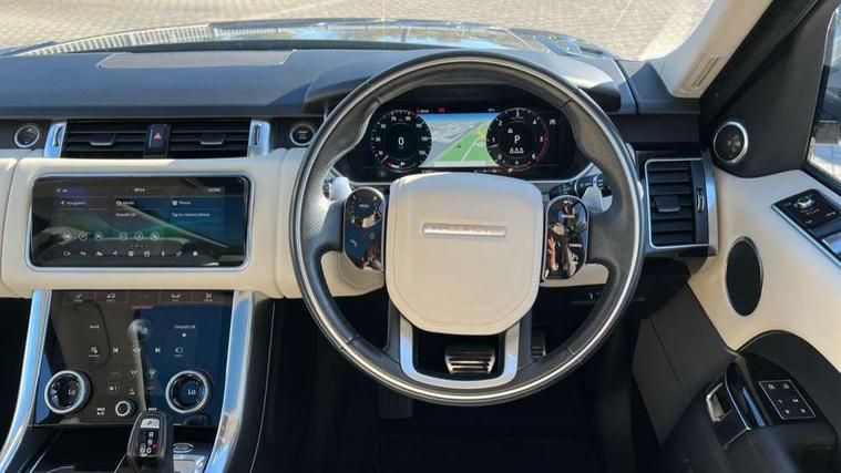 All Terrain Info Centre, Android Auto, Apple car play, Bluetooth connectivity, Electric power assisted steering (EPAS), Incontrol apps in vehicle touchscreen, Interactive Driver display instrument cluster, Mist sensor, Navigation pro system with 10" touch screen, app interface and media storage, Pro services and wifi hotspot, Push button start, Remote premium - Upgraded Incontrol remote app including remote climate control (engine dependent), remote lock + Unlock and remote beep + flash, TFT Virtual Instrument Panel, Touch pro duo system, Trip computer, Gradient release control (GRC), Bluetooth audio streaming, DAB Radio (Digital Audio Broadcasting), Incontrol protect - SOS emergency call with automatic collision detection, optimised assistance call and Incontrol remote app essential, USB/aux input socket, Acoustic front and toughened rear side glass, Acoustic laminated front windows, Adaptive brake lights, Auto dimming interior rear view mirror, Automatic headlights, Body coloured bumpers, Body coloured door mirrors, Centre high mounted stop light, Electric windows with one touch open/close and anti trap, Electrical towing preparation, Engine cover, Follow me home lighting, Front and rear recovery eyes, Front fog lights, Headlight power wash, Heated rear window, Heated windscreen includes heated washer jets, LED rear lamps, Privacy glass (Tinted glass rear of B pillar), Rain sensing windscreen wipers, Rear fog lights, Rear side wing doors, Rear wash/wipe, Remote window closing, Side repeater indicators in mirror, Sport Badge in silver, Standard bonnet, Trailer stability assist, 2 way active front head restraints, 2 way rear head restraints, 3 seat bench in 2nd row, 60/40 load through rear seats, Auto air recirculation, Bright metal foot pedals, Centre console with armrest, Climate control memory, Customer configurable single point entry, Driver's footrest, Front and rear cupholders, Front door storage space, Front map lights, Front seat back map pockets, Front stowage pocket, Front/rear passenger grab handles, Heated steering wheel, Isofix child seat preparation, Leather steering wheel with Atlas inserts, Loadspace light, Loadspace mounting provisions, Lockable glovebox, Multifunction steering wheel, Pollen filter, Power socket, Reach/rake electric adjustable steering column + entry/exit tilt away, Rear centre armrest, Rear ISOFIX, Roller blind loadspace cover, Satin chrome gearshift paddles, Single front passenger seat, Three 12V accessory power outlets, Smartphone pack - Range Rover Sport, 3 point seatbelts on all seats, Anti-lock braking system (ABS), Brake pre-fill technology, Cornering brake control (CBC), Curtain airbags, Customer configurable autolock, DSC - Dynamic Stability Control, Dual stage driver/passenger airbags, EBD - Electronic brakeforce distribution, Electric parking brake, Electronic traction control, Emergency braking includes city, urban AEB and pedestrian, Front seatbelt pretensioners, Gradient acceleration control, Grey anodised brake calipers, Height adjustable front seatbelts, Hill descent control, Hill launch assist, Low traction launch, Passenger seat occupant detector with front airbags, Power operated child locks, Roll stability control, Seatbelt warning, TPMS (Tyre pressure monitoring system), Immobiliser, Intrusion sensor, Keyless entry, Locking wheel nuts, Perimetric and volumetric anti theft alarm, Remote locking, Grand black veneer,