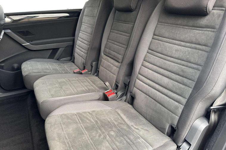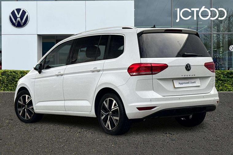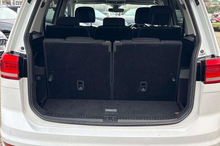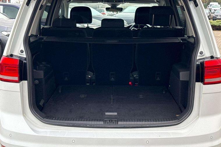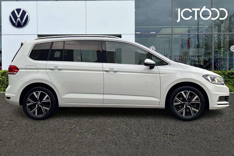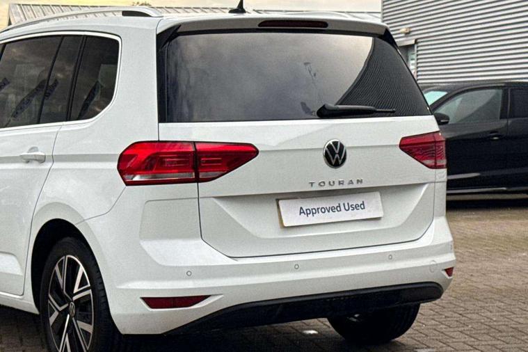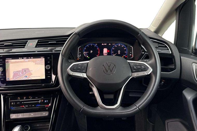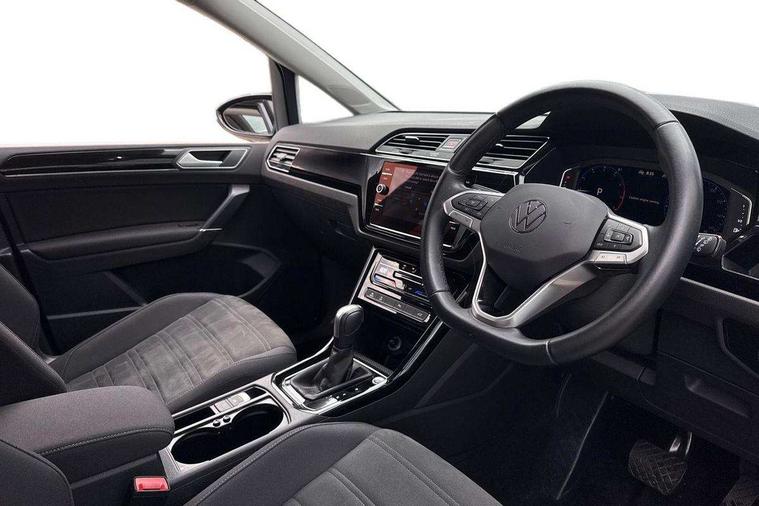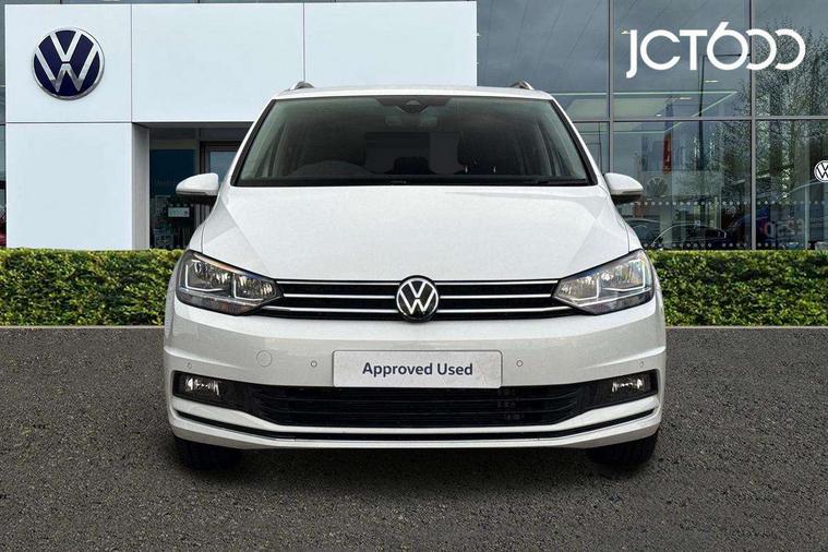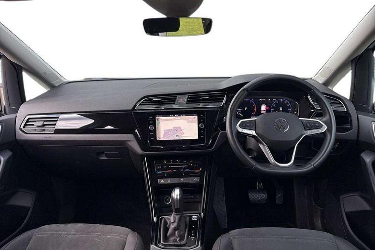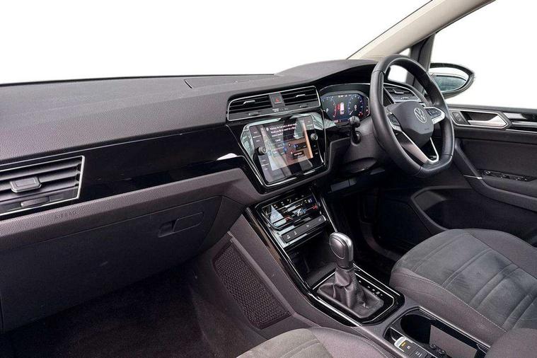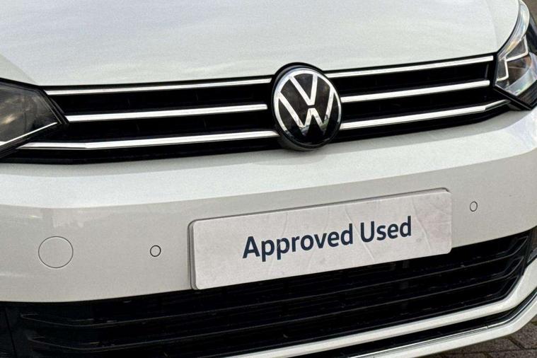 Adaptive cruise control, Audible lights on warning, Bluetooth telephone connectivity, Car information display, Digital cockpit, Discover nav, Euro 2D/3D map view+6.5" colour touchscreen CD + Radio, European map data, Car net guide/inform, Driver alert system, Driver electronic voice amplification function, Driver profile selection, Electronic odometer, Emergency services call system, Extended, crash-active and proactive Pedestrian and cyclist monitoring, External temperature gauge, Lane change system side assist and rear traffic alert, Lane keep assist, Mobile pairing with SMS function, Multifunction colour display, Rev counter with fuel gauge, Speed limiter, Speed sensitive power steering, Stop/start system, Think blue trainer driver tips and journey analysis, Trip and service interval display, Wireless app connect, Petrol Particulate Filter, XDS electronic differential lock, 4x20 watt output, 8 Speakers, Audio Connectivity System, DAB Digital radio, External USB-C data socket with increased charging performance - 2 USB sockets 45W, MP3/WMA compatability, SD card slot, Title and cover art display, USB connection, Aerial integrated into side window, Auto dimming door mirrors, on driver side, surround lighting and front passenger side mirror lowering function, Auto dimming rear view mirror, Automatic coming/leaving home lighting function, Body colour bumpers, Body colour door handles, Body colour door mirrors with integral indicators, Chrome fog light surround, Chrome lower front bumper insert, Chrome trimmed front air intake surrounds, Chrome trimmed radiator grille louvre inserts, Chrome trimmed side windows, Dusk sensor + auto driving lights, Front and rear electric windows, Front fog lights with static cornering function, Fully galvanised body, Gloss black finish B pillar, Green tinted heat insulating glass, High level third brake light, Rain sensor, Rear side wing doors, Rear tinted glass from B-pillar backwards approx 65% tinted, Rear wash/wipe with intermittent wipe setting, Silver roof rails, Tailgate wiper- reverse gear activation, Twin chrome exhaust tailpipes, Volkswagen roundel, Windscreen wipers intermittent wipe, 12V power point for Row 2, 12V socket in luggage compartment, 2 individual fold flat 3rd row seats, 2 three point seatbelts in 3rd row, 2nd row centre armrest, 2nd row centre seat converts into table, 3 single slide/fold/removable 2nd row seats, 3 spoke steering wheel, 3 Zone electronic climate control with automatic air recirculation, 3x3 point seatbelts on 2nd row with height adjust on outer seats, 4 boot load lashing points, 4 way adjustable front head restraints, 5 headrests, Ambient lighting in door trim and foot well, Art velour/Microfibre cloth upholstery, Driver and front passenger under seat drawer, Dust/pollen filters, Foldable front passenger seat backrest, Front + rear carpet mats, Front and rear reading lights, Front centre armrest with storage compartment, Front comfort seats with lumbar support, Front cupholders x 2, Front passenger seat height adjust, Front seat storage pockets, Front seatback folding tables, Height adjustable driver's seat, Height/reach adjust steering wheel, Illuminated glovebox, Illuminated vanity mirrors, Instrument lighting white adjustable panel illumination with red night time illumination, Interior light with delay, Isofix on 2nd row outer seats, Isofix on 3rd row seats, Large storage compartment in roof console, Leatherette on rear of front seats, Low tunnel 2nd row seat, Luggage compartment lighting, Media box in dashboard on passenger side, Multi storage in passenger/luggage areas, Multi-function centre console with storage facilities, Multifunction leather trimmed steering wheel including leather trimmed gear knob with 3.5" screen with multifunction computer, Retractable luggage cover, Split folding rear seat backrests, Storage bins on all doors, Mirror pack - Touran, 3 point height adjustable front seatbelts, Auto hold function, Automatic post collision braking system, Door open warning reflectors, Driver/Front Passenger airbags, Drivers knee airbag, EDL + ASR, Electrically operated child locks on rear doors, Electronic parking brake, Energy recovery system, ESC with ABS, First aid kit, Front and rear (row 2) curtain airbags, Front assist including city emergency braking, Front seat side impact airbags, Front seatbelt pretensioners, Front/rear disc brakes, Hill hold control, Hydraulic Brake Assist (HBA), Loose wheel warning function, Passenger airbag deactivation system, Pre crash preventive occupant protection, Proactive passenger protection system with front and side assist, Rear child proof door locks, Seatbelt warning lamp and buzzer, Traction control, Two tone horn, Warning triangle, Alarm with remote central locking and interior protection, Electronic engine immobiliser, Chrome plated instrument surrounds, Piano black decorative inserts, 17" Alexandria alloy wheels with self sealing tyres and anti-theft wheel bolts, Run flat tyres,