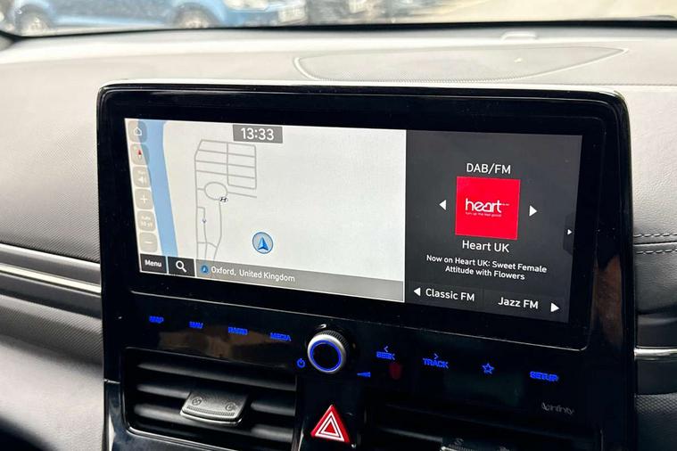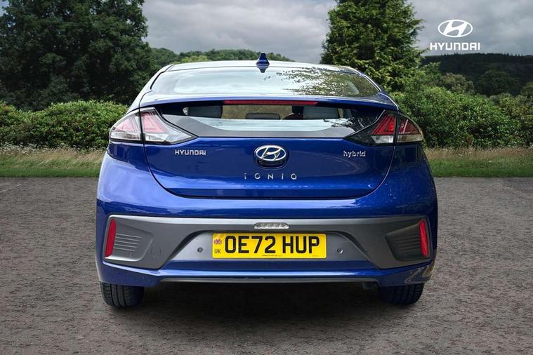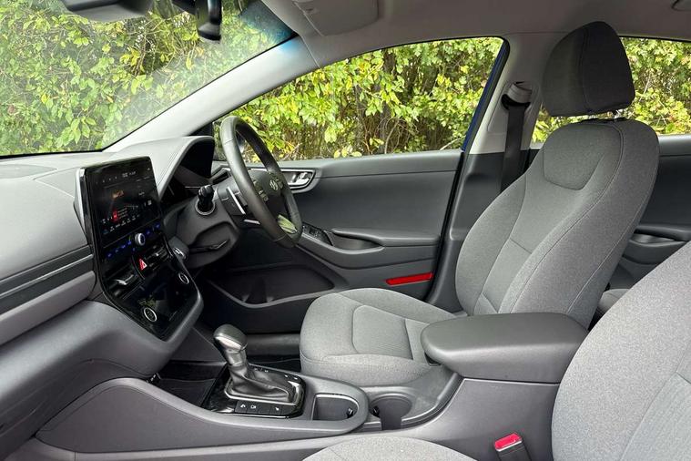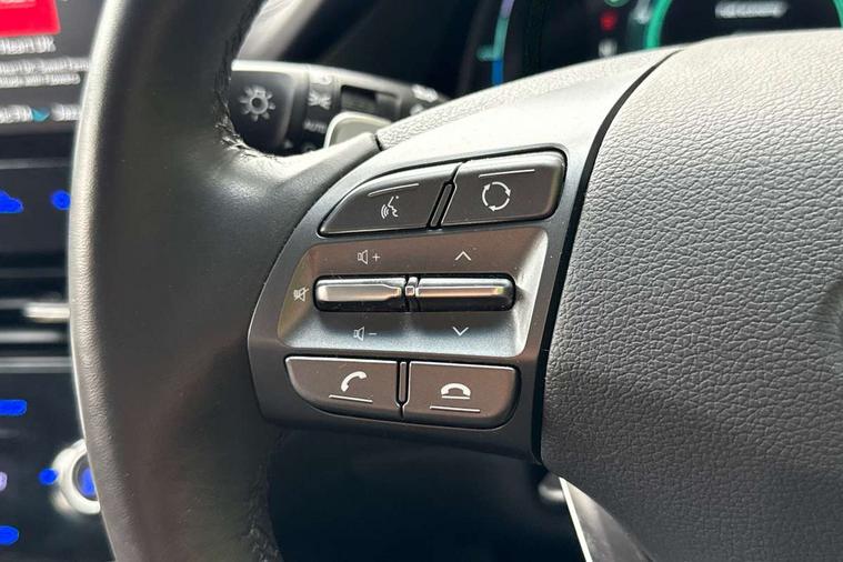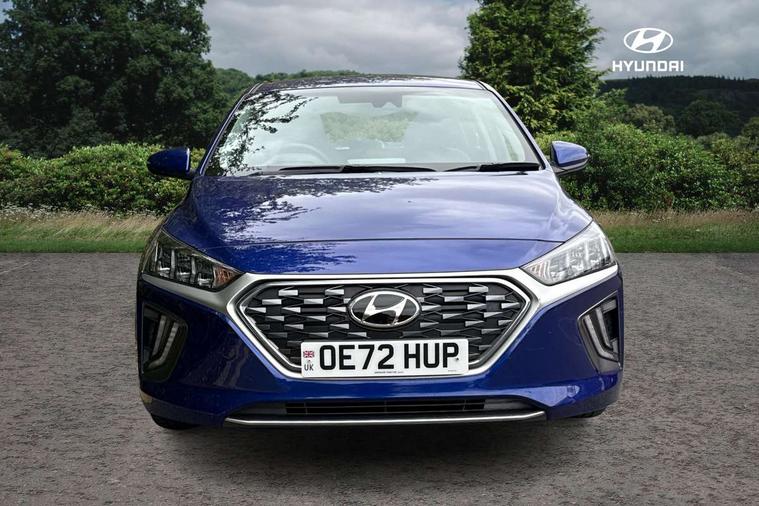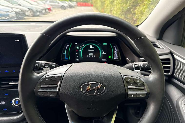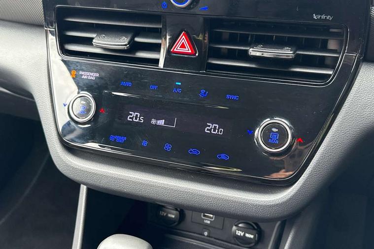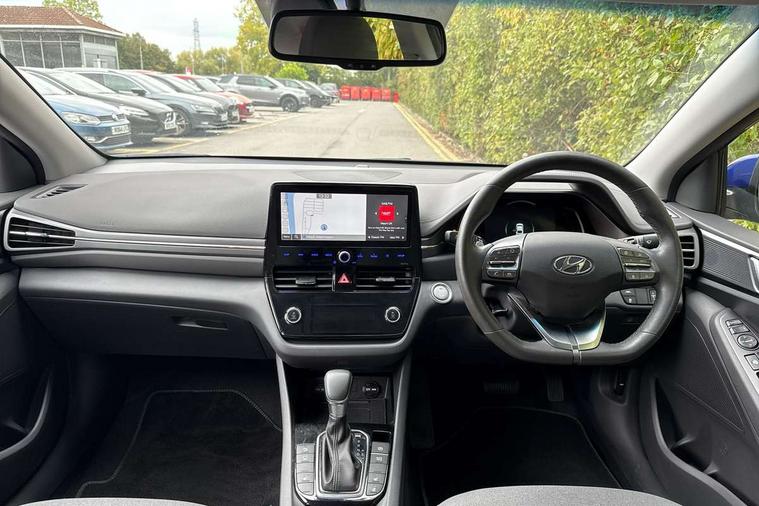 10.25" touchscreen satellite navigation includes traffic messaging channel, mapcare, live services and bluelink, Apple car play/Android Auto, Bluetooth system, Cruise control, Driver attention alert system, E-call, Eco driving assistant system (ECO DAS), Electric power steering with variable drive modes, Gear lever drive mode selector, Lane departure warning system with lane keep assist - LKAS, Parking Brake - Foot Brake, Parking system with rear camera and guidance system, Rear parking sensor, Rear view monitor, Roadside assistance, Supervision cluster with 7" high resolution TFT LCD, Voice recognition, Windscreen washer fluid sensor and warning indicator, Wireless phone charging pad, DAB Digital radio, Infinity sound system includes 1 centre, 2 tweeters, 2 front, 2 rear and 1 ext amp, Radio data system, Steering wheel audio, phone and cruise controls, USB and aux connection in front, Active air flap radiator grille, Auto dimming rear view mirror, Automatic headlights with dusk sensor, Body colour bumpers, Body colour door handles with chrome inserts, Body colour door mirrors, Bodyside mouldings, Chrome door scuff with ioniq logo, Chrome finish window surround, Chrome radiator grille, Door mirror puddle lights, Electric adjustable door mirrors, Electric front windows - anti trap + one touch, Electric heated door mirrors, Heated rear windscreen, High beam assist, LED daytime running lights, LED Headlights, LED indicators in door mirrors, LED rear fog light, Positioning Lights - LED, Power folding door mirrors, Rain sensor, Rear electric windows, Rear LED lights, Rear roof spoiler with integrated LED brake light, Rear side wing doors, Rear wiper, Solar glass with windscreen shade band, Tinted windows, Two tone rear bumper, Variable front intermittent wipers, 12V power outlets, 3 rear seats, 60/40 split folding rear seat, Centre console storage, Centre interior light, Chrome interior door handles, Cloth upholstery, Driver seat height adjust, Driver's electric adjustable lumbar support, Driver/passenger sunvisors with illuminated vanity mirrors, Dual zone climate control, Front centre armrest with storage compartment, Front cupholder, Front head restraints with vertical and horizontal adjustment, Front seat and rear pockets, Heated front seats, Heated steering wheel, Illuminated luggage compartment, Interior mood lighting, Leather wrapped steering wheel, Luggage net, Manual height adjustable front passenger seat, Map and reading lights, Paddle shifter, Rear centre console with air vents, Single front passenger seat, Sunglasses holder, USB - driver arm rest (charging only), Vertical adjustment rear head restraints, 3x3 point rear seatbelts, Airbags - front, front side, curtain and drivers knee airbags, Anti-lock brake system (ABS), Autonomous emergency braking, Electronic stability control, Front passenger airbag deactivation switch, Hill start assist control (HAC), Manual child lock in rear doors, Regenerative braking system, Traction control, Tyre pressure monitoring system with individual tyre pressure display, Deadlocks, Immobiliser, Keyless smart entry with push button start, Remote central locking, 15" Design B alloy wheels, Tyre repair kit,