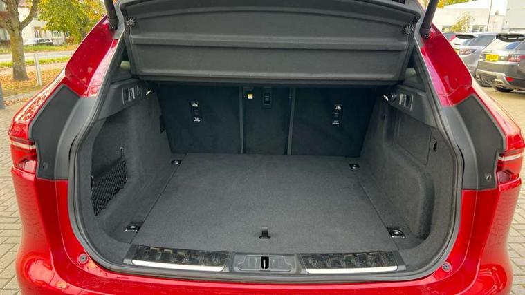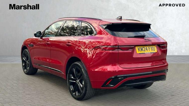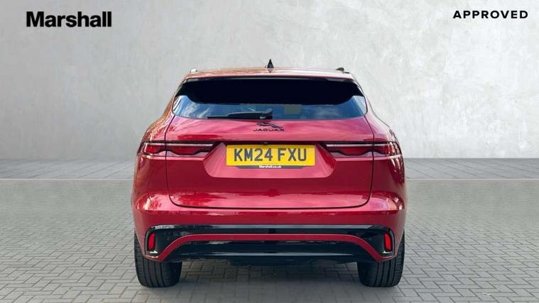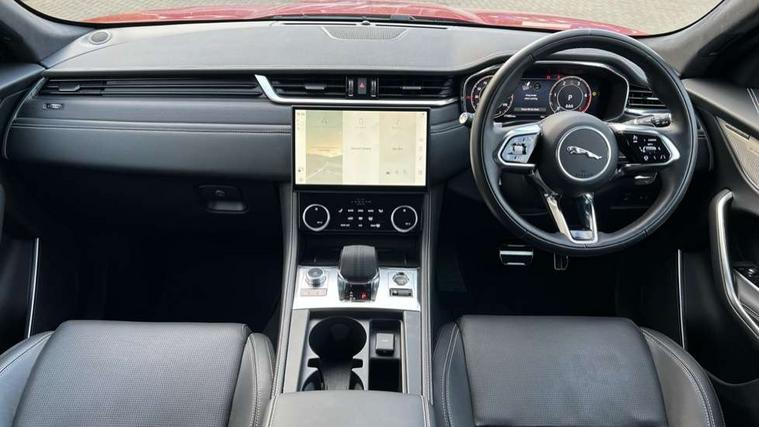 11.4" touchscreen, Adaptive cruise control with steering assist, Android Auto, Apple car play, Blind spot assist, Bluetooth connectivity, Clear exit monitor, Driver alert system, Driver condition monitor, eCall emergency call system, Eco driving style assistant, Electric power assisted steering, InControl remote, Interactive driver display digital with 12" TFT display, Jaguar Toggle shift selector, Lane departure warning system, Lane keep assist, Outside temperature gauge, Personalisation profile management, Pivi pro connected navigation system with app interface and media storage, Pro services and wifi hotspot, Push button starter, Rear collision monitor, Rear traffic monitor, Service interval indicator, Speed proportional steering, Start up sequence with movement in dials and lighting, Traffic sign recognition with adaptive speed limiter, Trip computer, Voice control system, Wireless device charging, 8 speed automatic transmission, Adaptive dynamics, All terrain progress control, All Wheel Drive (AWD), Configurable dynamics, Open differential with torque vectoring by braking, AM/FM radio, Bluetooth streaming, DAB Radio (Digital Audio Broadcasting), Dynamic volume control, InControl apps, InControl protect, iPod integration, 3 flash lane change indicators, AHBA and animated directional indicators, Approach Illumination, Auto dimming rear view mirror, Automatic headlights, Electric heated/power fold memory door mirrors with approach lights and auto dimming driver side, Electric windows with one touch open/close and anti trap, F-Pace and R Dynamic badge, Green tinted glass, Heated front windscreen + heated washer jets, Heated rear window with timer, Illuminated metal tread plates with Jaguar script, Jaguar script and leaper, LED High level third brake light, LED tail lights, Metal load space scuff plates, Non acoustic front windscreen, Privacy glass (rear side windows and rear screen), R Dynamic badge on side door, Rain sensor windscreen wipers, Rear fog lights, Rear metal tread plates, Rear side wing doors, Rear wiper, Trailer stability assist, Variable front intermittent wipers, 12V power point front, 3 rear headrests, 3 seat bench in 2nd row, Additional power sockets - Two additional USB sockets in rear centre console and one 12V socket in trunk, Air distribution speed, Bright metal foot pedals, Centre armrest console, Centre console with side storage, Configurable cabin lighting, Deletion loadspace storage rails, Door sill tread plates, Ebony suede cloth headlining, Electrically adjustable steering column, Fold flat front seats, Front centre armrest with storage compartment, Front door storage space, Glovebox finisher with jaguar script, Heated steering wheel, Hooks in loadspace, Illuminated glovebox, Interior front door handles with separate locking switches, ISOFIX on outer rear seats, Jaguar sense, Leather steering wheel, Luggage tie downs in loadspace, Mist sensing, Multifunction steering wheel, Overhead lighting console, Overhead stowage for sunglasses, Passive front head restraints, Premium carpet mats, Rear air vents, Rear armrest with twin cupholders, Rear centre headrest, Rear door storage space, Reversible boot floor, Satin chrome gearshift paddles, Shopping bag hook, Single front passenger seat, Sunvisors with illuminated vanity mirrors, Twin front cupholders with cover, Online Pack with data plan - F-Pace, 355mm front brakes and 325mm rear brakes, 3x3 point rear seatbelts, ABS, All surface progress control (ASPC), Brake pad warning light, DSC - Dynamic Stability Control, Electric parking brake (EPB), Emergency brake assist, Front airbags with passenger seat occupant detector, Front and rear seatbelt reminder, Front side airbags, Full length side window curtain airbag, Hill launch assist, Power operated child locks, Traction control, Tyre pressure monitoring system, Immobiliser, Keyless entry, Keyless Start, Locking wheel nuts, Perimeter alarm, Remote central locking, Valet mode,