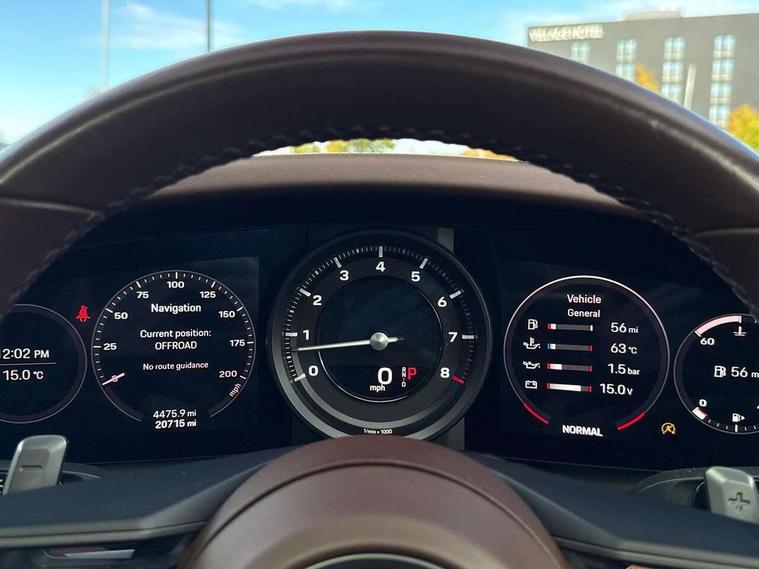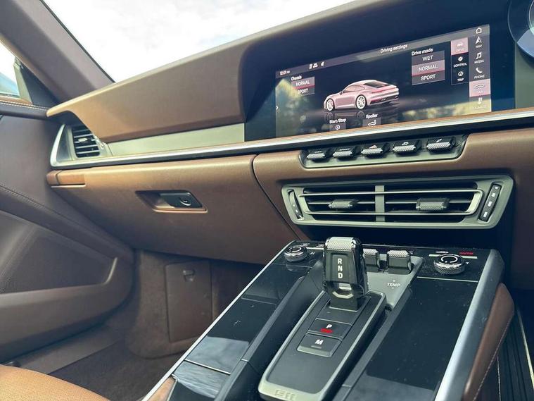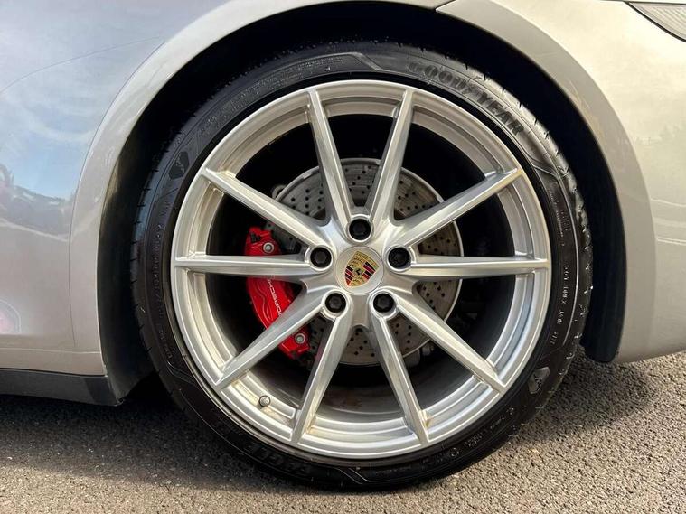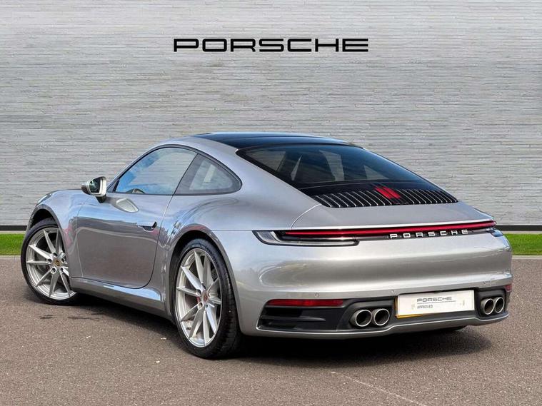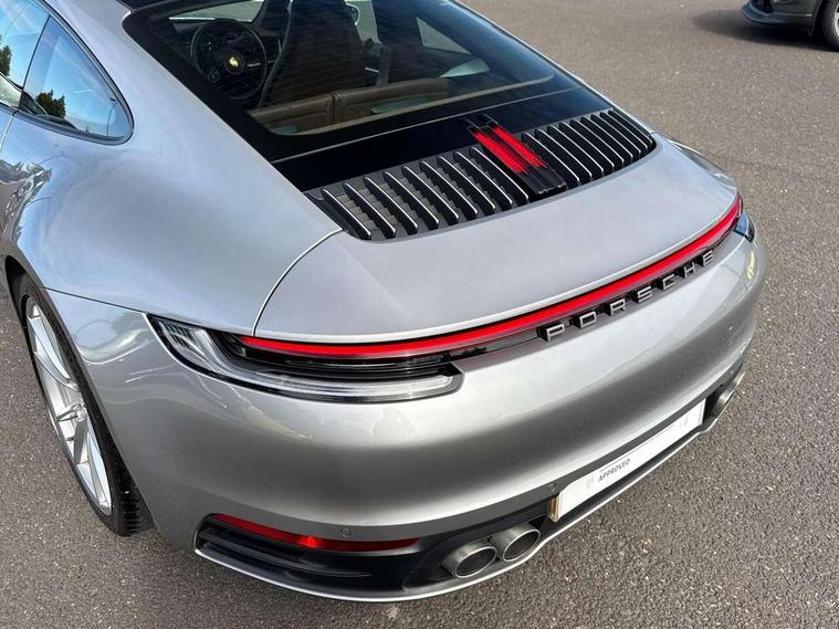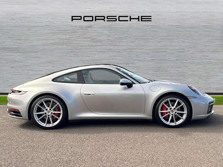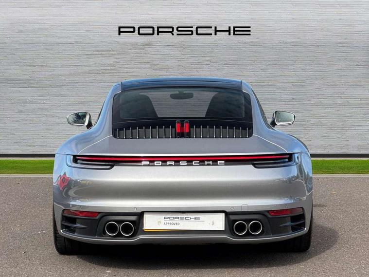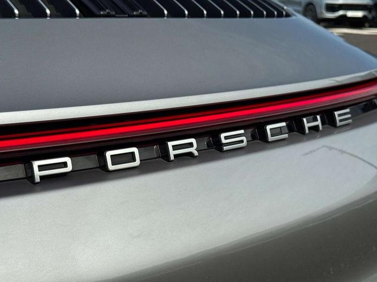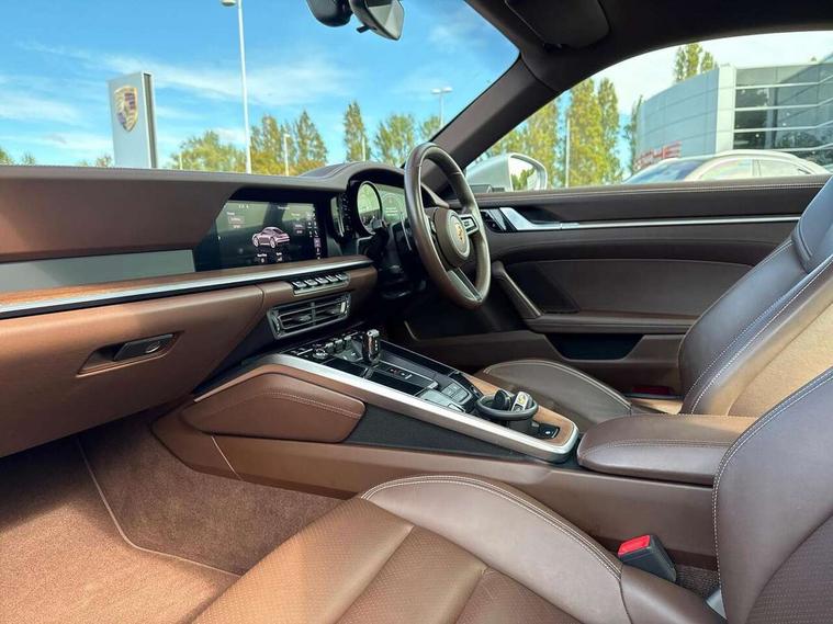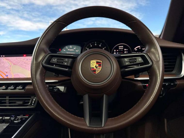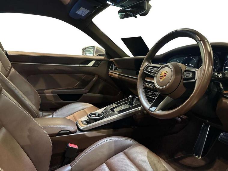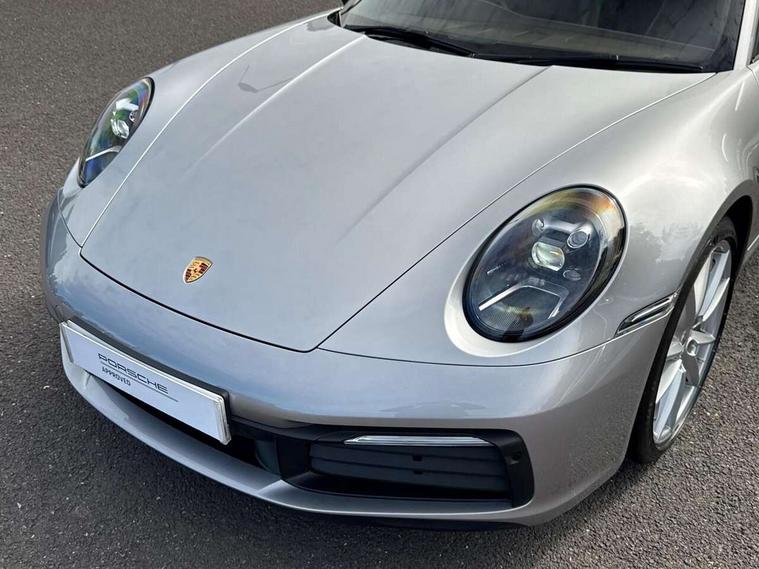 10.9 inch centre display, Automatic start/stop system, Connect Plus, Apple CarPlay, telephone module, wireless internet access, carfinder, remote vehicle status, remote service, vehicle track, Digital display for selected gear in rev counter, Electromechanical power-assisted steering with variable steering ratio and steering pulse generator, Instrument cluster with central analogue rev counter and two 7-inch TFT displays, PAS, Porsche communication management (PCM) including online navigation module, Porsche WET Mode, Service indicator, Stationary management with HOLD function, Trip computer, Warn and Brake Assist, 8 Speed Porsche Doppelkupplung (PDK), Aluminium block and cylinder heads, Direct fuel injection (DFI), Expansion intake manifold, Four valve per cylinder, Front anti roll bar, Gasoline particulate filter, Integrated dry-sump lubrication with an on-demand oil pump, McPherson strut front suspension, Multi-link suspension with anti-roll bar at rear, Porsche Stability Management (PSM), ABS with extended brake functions, Porsche Torque Vectoring Plus (PTV Plus) inc electronically regulated rear differential lock and fully variable torque distribution, Twin turbocharger intercooled, Two three-way catalytic converters and on-board diagnostics for monitoring emission control system, VarioCam Plus variable valve timing and switchable valve lift, Analogue sound system, DAB Digital radio, "PORSCHE" lettering integrated in taillight strip, Automatic headlight activation including welcome home lighting, Automatically operated rear spoiler, Body colour bumpers, Electrically adjustable heated exterior mirrors on door waist rails, aspherical on driver's side, Engine compartment cover grille with vertical slats in silver colour (high-gloss), Four-tract exhaust system with twin dual-tube tailpipes (in stainless steel), Green tinted heat insulating glass, Heated rear windscreen, Intelligent lightweight body in Aluminium/Steel composite construction, LED auxiliary light units in the front end with position lights, direction indicators and side indicators, Model designation on rear trim with highly polished chrome-plated finish, Power windows with one touch operation and door seal protection, Retractable door handles, Side air intakes at front with active cooling flaps and air blades, Taillight strip including integral parking lights and rear driving lights, Three dimensional LED taillights and integral third brake light, Trims on sideskirts in black, Windscreen washer system with aero wiper blades and washer jets, Windscreen with grey top tint, 12V socket in front passenger footwell, Automatic air recirculate, Centre console cupholder, Clothes hooks on seat backrests and on B-pillars, Floor mats, Front and rear head restraints, Heated front seats, Individual driver/passenger temperature controls, Inner door sill guards with model designation, ISOFIX child seat mounting points on passenger seat, Luggage compartment at front, Multifunction steering wheel, Passenger cupholder, Pollen/active carbon filters, Roof lining and A, B & C-pillar trims in fabric, Split folding rear seats, SPORT button to activate dynamic driving settings for engine, transmission (with PDK), Storage compartments in each doors, Two zone automatic climate control, Sound package plus - 911 (992), Brake discs with 350mm diameter at front and 350mm at rear, internally vented and cross-drilled, Dual stage driver/passenger airbags, Electric parking brake, Electromechanical power brake, ESP, Porsche side impact protection doors with thorax airbag in outer backrest side bolster and head airbag for driver/passenger in door panel, POSIP, PTM (Porsche Traction Management) and All-wheel drive with map-controlled multi-plate clutch, Six piston front and four piston rear in closed type aluminium monobloc, TPMS (Tyre pressure monitoring system), Alarm, interior ultrasonic protection, Electronic immobiliser, Keyless Go, Remote central locking, Tyre sealing compound and electric air compressor kit,