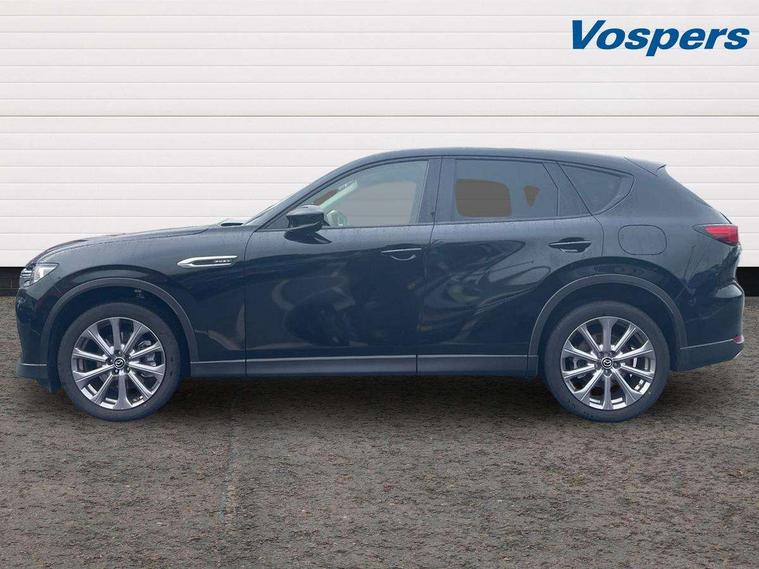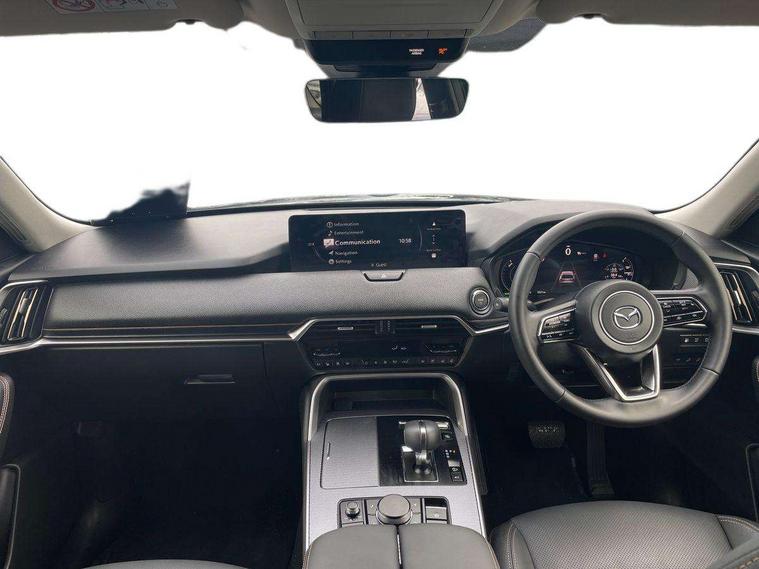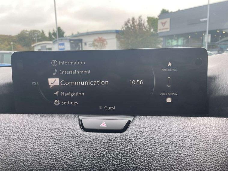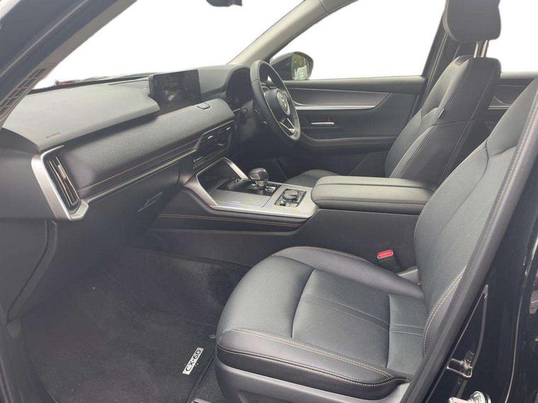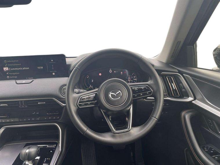 Emergency lane keeping with blind spot assist, Low washer fluid warning light, 12.3" Colour entertainment centre display with mazda connect infotainment, 12.3" TFT Colour display, Adjustable speed limiter, Blind spot assist, Blind spot monitoring with rear cross traffic alert, Cruise control, Distance alert system, Driver attention alert system, E-call with GPS, Emergency stop signalling system, Exit warning function, Front and rear parking sensors, Integrated bluetooth, Intelligent speed assist, Kinematic posture control, Lane keep assist system (LAS) with Lane departure warning system (LDWS), Mazda Navigation System with european mapping, Multimedia Commander, PAS, Power lift gate with handsfree function, Power liftgate, Power start/stop button, Reversing camera with static guide lines, Speed alert, Traffic sign recognition enhanced with mandated excessive speed warning, Trip computer, Windscreen projected colour active driving display, Wireless apple car play/android Auto, Type 2 Mode 2 cable for AC charging via UK 3-pin plug, 7.2 kw On board Charger, Mi-Drive (Normal, Sport, Off-road, Towing and EV mode), Type 2 Mode 3 cable for AC charging via home or public charge points, AM / FM / DAB radio with 8 speakers, Steering wheel mounted audio/bluetooth controls, USB-C inputs (x2 front and x2 rear), Auto dimming driver's door mirror, Automatic headlight levelling, B-pillar and C-pillar garnishes in gloss black finish, Black wheel arch and side mouldings, Body colour roof spoiler, Body coloured bumpers, Body coloured door mirrors, Chrome finish signature wing in front grille, Chrome front side garish, Coming/leaving home lighting function, Dark plated headlight lense, Dusk sensing headlights, Electric front/rear windows with one touch auto up/down, Electrically adjustable, heated auto power folding door mirrors, Frameless auto dimming interior rear view mirror, Front kodo turn signal, Front wiper de-icer, Headlight washers, High beam control, LED 3rd brake light, LED headlamps, LED rear signature combination lamps, Piano black bar type front grille, Piano black window surrounds, Rain sensing front wipers with adjustable sensitivity and speed, Rear side wing doors, Rear wiper, Roof pillars and roof lining finished in lighter colour to soften the overall look, Signature LED daytime running lights, Silver decoration panel, 12v power outlet - front, 12V socket in boot, 3 height adjustable rear headrests, 3 seat bench in 2nd row, 40/20/40 split folding rear seats with quick levers in the boot, Cargo net, Chrome interior trim accents with steering wheel centre bezel, surround of engine start / stop button and glove box handle, Door panel trim vinyl leather with armrest, Driver and front passenger two rear grab handles with rear coat hooks, Driver and front passenger visors with covered vanity mirror and driver ticket holder, Driver seat manual slide, recline, height and seat tilt adjust, Driver, front passenger and two rear door pockets, Driver/passenger front seatback pockets, Dual zone climate control air conditioning with rear air vents, Featuring black vinyl leather dashboard trim with titanium coloured accents, Folding rear centre armrest with two cup holders, Front and rear signature illumination, Front centre storage with two cupholders, Front down lamp with front and rear foot lamps, Front headrests, Front passengers seat manual slide, recline and height adjustment, Glovebox illumination, Heated front seats with 3 stage setting, Heated leather wrapped steering wheel, ISOFIX child seat anchorage points attached on outer rear seats, Karakuri tonneau cover, Leather upholstery, Leather wrapped gear shift knob, LED illumination luggage compartment, Manual telescopic and tilt adjustment steering wheel, Paddle shift, Practical and spacious front centre armrest storage, Rear seat recline function for rear passenger comfort, Remote fold down rear seats, Roof mounted sunglasses holder, Single front passenger seat, 3 point ELR front seat belts x2 with pretensioners, 3 point ELR rear seat belts, Active bonnet, Anti-lock braking system (ABS), Drivers knee airbag, DSC - Dynamic Stability Control, Electronic parking brake with auto disengage function and auto hold function, Front and rear curtain airbags, Front dual stage driver and single stage front passenger airbags, Front passenger airbag cut-off switch, Front side airbags, Front smart city brake support, Hill decent control, Hill launch assist, Manual rear child locks, Seatbelt reminder for driver/front passenger and rear seats, Traction control, Tyre pressure monitoring system (TPMS), Remote central locking with deadlocking and automatic door lock when driving, Smart keyless entry, Thatcham accredited alarm and immobiliser, Mesh metal film centre console panel, 18" Grey metallic alloy wheels, Emergency tyre repair kit,