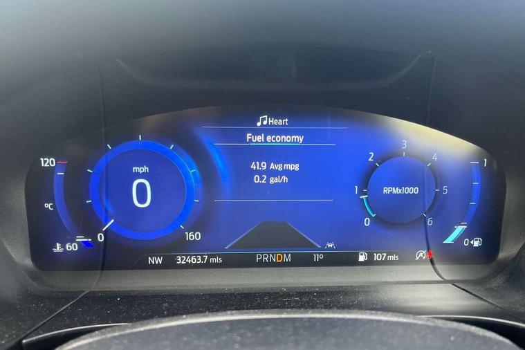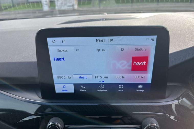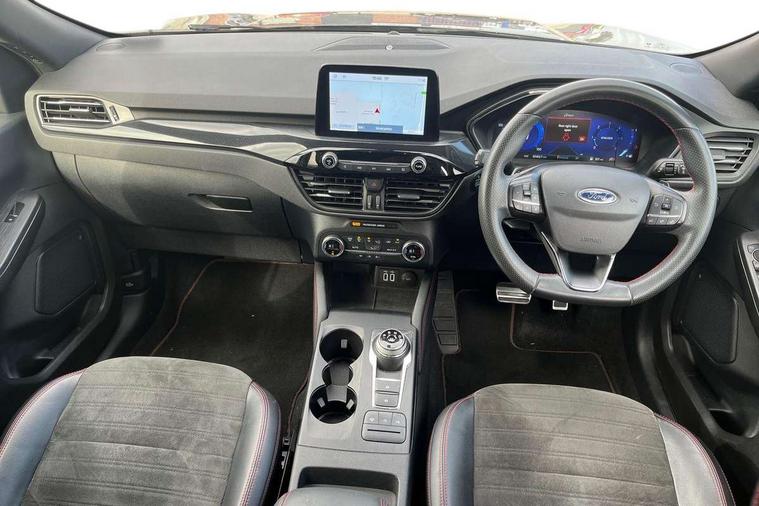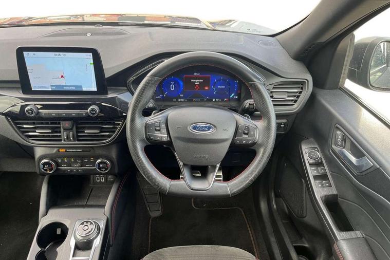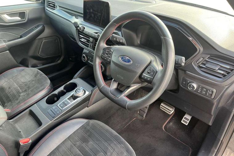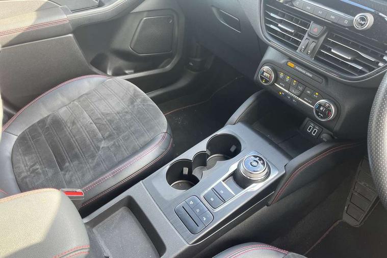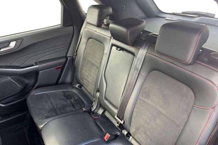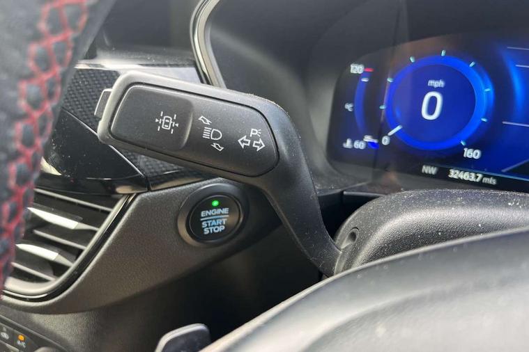 12.3" digital colour instrument cluster, Ford easy fuel, Ford SYNC 3 with 8" TFT LCD touchscreen, App Link, andriod auto/apple carPlay, emergency assistance and navigation with Ford pass connect, Front and rear parking sensors, Hands free power tailgate, Lane keeping aid with lane departure warning, Power assist steering, Rear view camera, Selectable drive modes, Service interval indicator, Sports suspension, Twist beam rear suspension, B&O premium audio system with 10 speakers and subwoofer, 2 USB ports, DAB radio/CD, Auto headlamps with high and low beam, Black roof rails, Day/night rear view mirror, Front LED fog lamps, Large rear spoiler, LED daytime running lights, LED rear lights, Power folding heated door mirrors with puddle lights, Power front/rear windows with global close, Privacy glass, Quickclear heated windscreen, ST Line body styling kit with unique front and rear fascia and bumper, rear painted diffuser, front painted skid plates, dark mesh upper grille, ST Line front scuff plates, Third brake light, Twin exhausts, 10 way power adjustable drivers seat, 2nd row sliding seats with 60:40 split, 8 way manual passenger seat including lumbar support and height adjust, Alloy pedals, Centre console with electronic parking brake, Dark headlining and pillars, Dual electronic automatic temperature control, Flat bottomed leather steering wheel in sensico with red stitching, Front and rear head restraints, Partial premium touch sensico leather upholstery with black cloth inserts and red stitching, Rear charging point, Sports seats, ST Line front and rear floor mats, Steering wheel mounted paddle shift, 3x3 point rear seatbelts, Airbags - front driver/passenger, front and rear curtain, Drivers knee airbag, Electronic stability control (ESC) and ABS, Ford MyKey Gen 2 safety system, Manual child proof rear door locks, Post collision braking, Pre collision assist with autonomous emergency braking, Rear seat Occupancy alert, Red brake calipers, Tyre pressure monitoring system, Engine immobiliser, Keyless entry and Ford power start button (Keyless start), Locking wheel nuts, Remote powered central double locking doors, Thatcham category 1 alarm,
