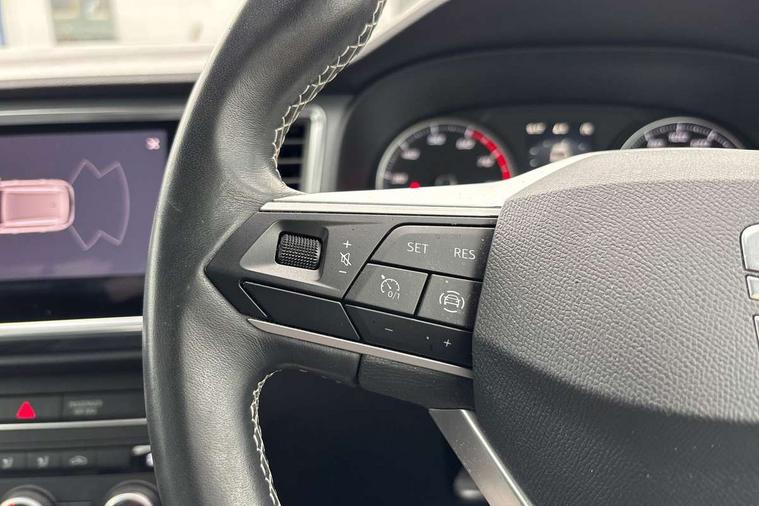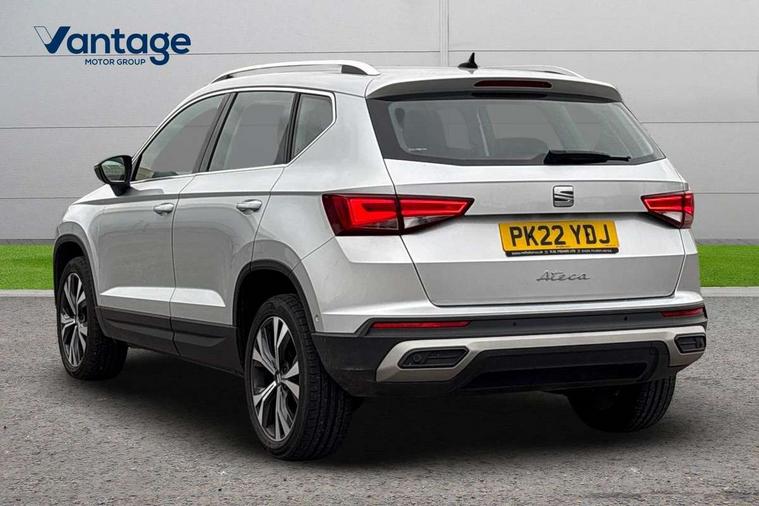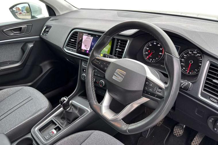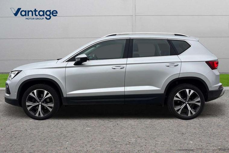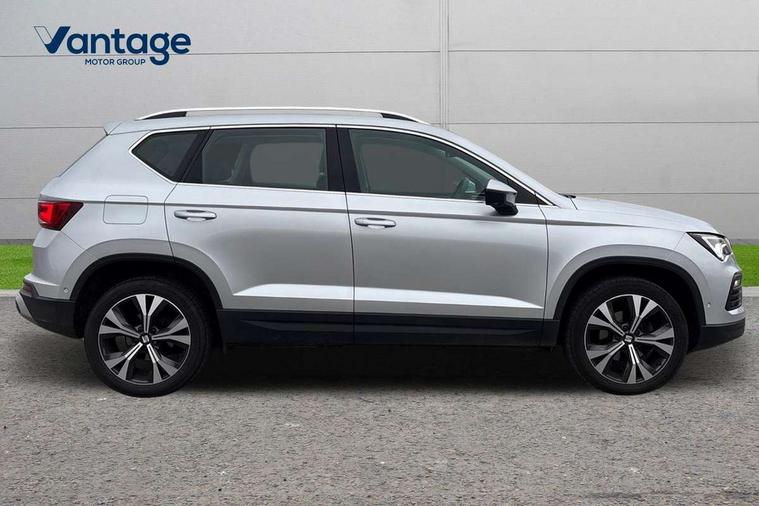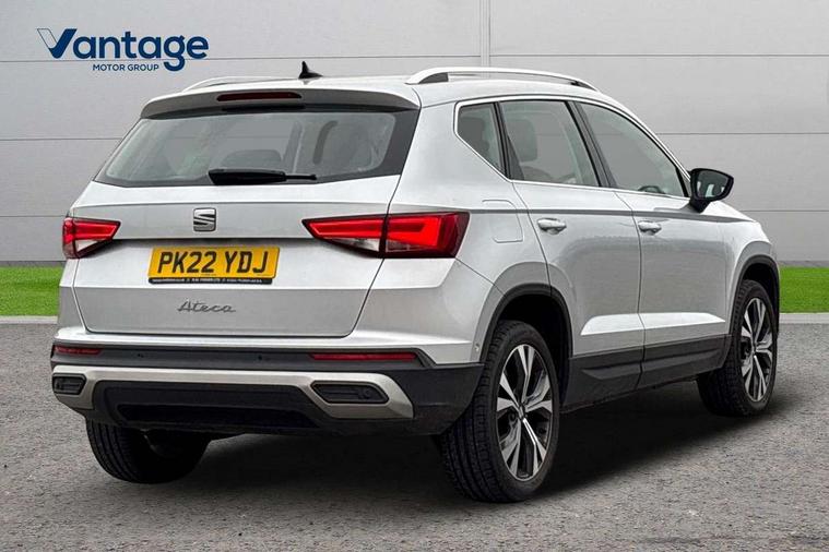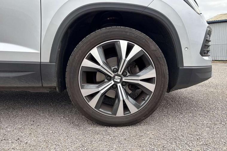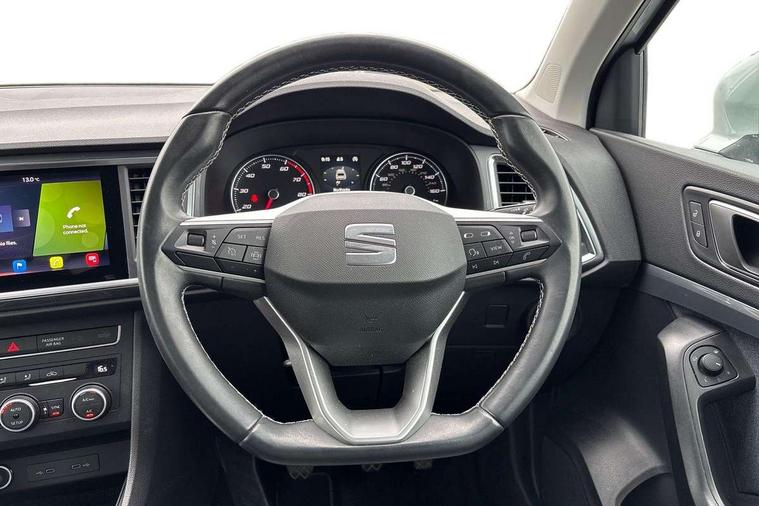 Colour multi-function on board computer display, Cruise control system with speed limiter, E-call, Outside temperature gauge, PAS, SEAT drive profile with driving experience button - Normal, Sport, Eco and Individual mode, steering and throttle response, Self parking functionality (includes front and rear parking sensors), Trip computer, Wireless full link smartphone integration, Wireless phone charger, Steering wheel mounted audio/phone controls, Black wheel arch surrounds, Body colour bumpers, Chrome front grille frame, Chrome roof rails, Chrome side window trim, Daytime running lights, Door mirrors with welcome light silhouette, Dynamic headlight range control with self adjusting whilst driving, Electric adjustable/heated/folding door mirrors, Front and rear electric windows, Full LED headlamps with lens and LED front fog lamps with cornering function, LED rear tail lights with dynamic indicators, Rear fog lights, Rear side wing doors, Rear wash/wipe, Simulated exhaust pipes, 12v socket in front, 3 seat bench in 2nd row, 60/40 split folding rear seat, Cloth upholstery with front comfort seats, Dual zone climate control, Front and rear head restraints, Front centre armrest, Front seat back storage pockets, Height adjustable driver and passenger seat with lumbar adjustment, ISOFIX points in outer rear seats with top tether anchorage points, Leather steering wheel and gear knob, Rear armrest and easy back seat release mechanism from boot, Single front passenger seat, Storage compartment under driver's seat, Interior lighting pack - Ateca, Navigation system pack with DAB - Ateca, 3x3 point rear seatbelts, ABS, Traction control system (TCS), Electronic stability control (ESC) and Electronic differential lock system (XDS), Airbags - Driver and front passenger airbag with deactivation, front side, two curtain and driver's knee airbags, Electric parking brake with auto hold function, Front and rear seatbelt reminder, Front assist with autonomous emergency braking, Hill hold control, Manual rear child locks, Tiredness recognition system, Traction control, Tyre pressure monitoring system, Alarm, Keyless entry, Locking wheel bolts, Chrome interior detailing, 18" Performance machined alloy wheels 36/2 in nuclear grey,