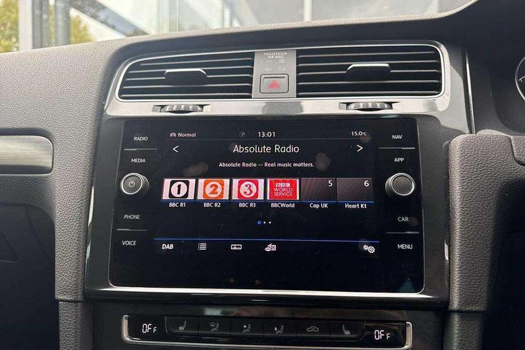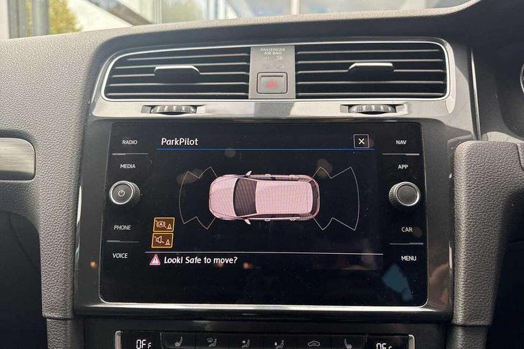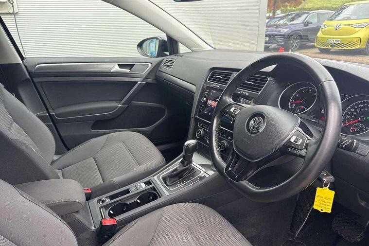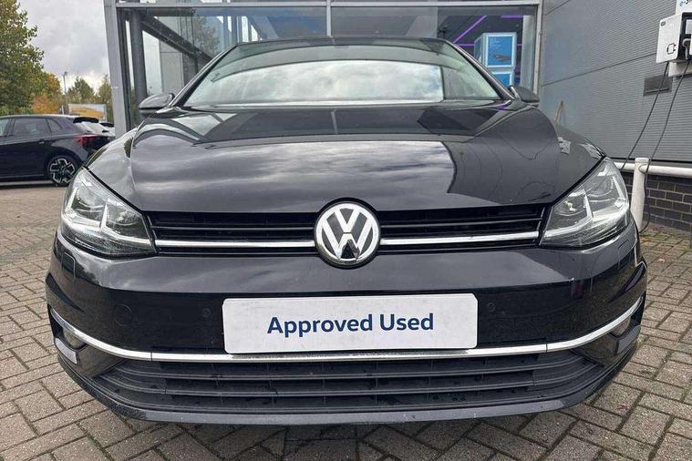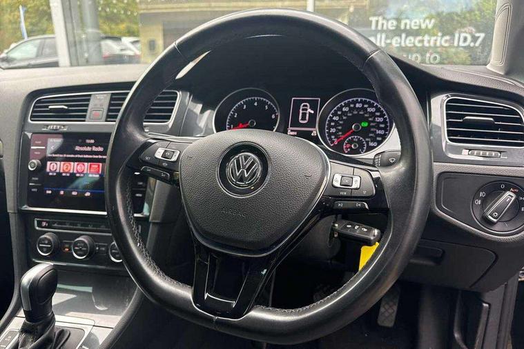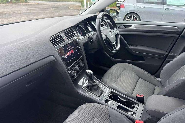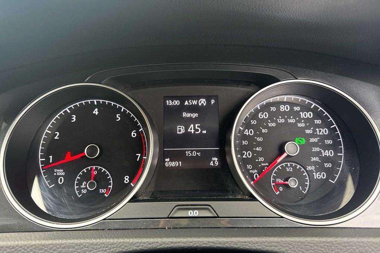 Brushed dark silver decorative inserts in dash and door panels, Chrome plated air vent surround, Chrome-plated light switch surround, Polar night black decorative inserts in centre console, Convenience Pack - Golf, Mirror pack - Golf, Winter pack - Golf, Steel space saver spare wheel, Alarm with interior protection and deactivation via infotainment system, Electronic engine immobiliser, Composition media system, DAB Digital radio receiver, Driver Personalisation profile selection, MP3/WMA compatability, Multi device interface (MDI) via USB connection, Premium USB cable in choice of either Apple or Android smartphone compatibility, SMS Functionality, Title and cover art display, USB and SD card connectivity, Volkswagen media control, 3 rear three point seatbelts, Airbags - Driver's and front passenger's, curtain airbag, Driver's knee, front side impact and passenger's airbag deactivation switch, Anti-lock Braking System (ABS) with Hydraulic Brake Assist (HBA), Automatic post collision braking system, Child locks on rear doors, Driver/Passenger optimised head restraints, Electronic parking brake with auto hold, Electronic stability control (ESC) including Electronic differential lock (EDL) and ASR (Traction control) with deactivation via infotainment system, Front ventilated disc brakes and rear disc brakes, Pre crash preventive occupant protection, Three point height adjustable front seatbelts with tensioners, Tyre pressure loss indicator, Black front air intake and radiator grille with chrome insert, Black rear diffuser, Body colour bumpers, Body colour door handles, Body colour door mirrors with integrated indicators, Dusk sensor + automatic driving lights, Electric front windows, Electric rear windows, Electrically adjustable and heated door mirrors, Fully galvanised body, Heated rear windscreen, High level 3rd brake light incorporating LED Technology, LED front fog lights with static cornering light function, Range adjustable headlights via infotainment system with LED daytime running lights, Rear fog lamp, Rear number plate lights incorporating LED technology, Rear tinted glass 65% light absorbing from B pillar backwards, Rear window aerial, Rear window wash/wipe with intermittent wipe, Reflectors in all doors, Tailgate with integrated rear roof spoiler, Windscreen wipers/ intermittent wipe + 4 position delay, 12V socket in luggage compartment, 3 rear headrests, 4 load lashing points in luggage compartment, 60/40 split folding rear seat backrest, Bag hook in luggage compartment x 2, Climate control - 2 zone electronic air conditioning with automatic air recirculation and allergy filter, Cooled glovebox, Cover for storage compartment in centre, Dust/pollen filter, Front and rear reading lights X 2, Front centre armrest with storage compartment and two rear air vents, Front seat back storage pockets, Grab handles front x 2, rear x 2 with integrated coat hooks, Height and reach adjustable steering wheel, Illuminated vanity mirrors, Instrument lighting white adjustable panel illumination, Interior light delay, Isofix preparation for 2 rear child seats, Load through provision with rear centre armrest and cupholders x2, Luggage compartment lighting, Overhead storage box, Pearl grey headlining, Storage box in luggage compartment, Storage compartment in roof console with cover, Storage compartments in centre console, Storage compartments in front doors, Storage compartments in rear doors, Stowable luggage compartment cover, Sun visors, Variable boot floor, height adjustable and removable, 'Lights On' Reminder warning buzzer, ACC - Adaptive cruise control with front assist, forward collision warning, distance monitoring, city emergency brake and speed limiter, Bluetooth telephone and audio connection for compatible devices, Brake pad wear indicator warning light, Driver alert system, Driving Mode Selection with four preset modes - Eco, normal, sport or individual modes, Multifunction computer with visual gear change recommendation for fuel consumption, Power assisted speed sensitive electro-mechanical steering, Push tank flap, Speed limit display, Speedo, rev counter, electronic odometer, trip, service interval display, exterior temperature and fuel gauge, Stop/start system, Think blue trainer driver tips and journey analysis, Warning buzzer and light for front seatbelts unfastened, Battery regeneration during braking, XDS electronic differential lock,