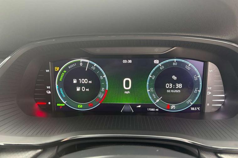 1x USB Type C port in rear view mirror (charging only), 2x USB Type C ports in rear of front centre armrest (charging only), Bluetooth system, Boot lid release from inside vehicle (electrically), Columbus satellite navigation with 10" touchscreen display, Driver fatigue sensor, E mode button for electric/hybrid drive, eCall emergency system, Electro-mechanical power steering, Front and rear parking sensors with manoeuvre assist, Front assist system, Smartlink (includes android auto and mirrorlink), Speed limiter, Turn Assist, Unique iV instrument panel, Virtual Cockpit - 10.25" digital display, Voice control system, Wireless SmartLink for Apple Car Play, 10 amp mains UK 3 pin charge cable mode 2, 16 amp AC charge cable for wallbox/charge points mode 3, E-noise generator for electric drive with noise emitted upto speed of 50km/h, 2x USB Type C ports (for charging and data transfer), 8 Speakers, DAB Digital radio, Aero front windscreen wipers with intermittent function, Black window surrounds, Body colour door mirrors and handles, Chrome grille surround, Dimming rear view mirror, Electric front and rear windows, Electrically adjustable and heated door mirrors, Heated rear windscreen, High level third brake light, Ice scraper in fuel cap, Rain and light sensors, Rear fog light on one side, Rear side wing doors, Unique iV badge on tailgate, 3 rear headrests, 3 seat bench in 2nd row, 4 foldable roof handles, Charging socket cover on front left fender, Chrome inner door handles, Climatronic dual-zone electronic air conditioning, Cloth upholstery, Front centre armrest, Front head restraints, Grey headlining, Height adjustable driver and front passenger seat with lumbar support, Illuminated glovebox, Leather trimmed gearshift lever, Luggage compartment lighting x1 light, Parcel shelf - folding, Satin black textured with artificial stiching in dash board pads, Single front passenger seat, Sport button for hybrid drive delivering maximum system performance, Storage compartment for charging cables under the luggage compartment mat, Sunglasses storage, Textile floor mat set, Ticket holder, Two-spoke leather multi function steering wheel with paddles, Umbrella in door panel, Unsplit rear bench seat and split folding backrest, 3 point front/outer rear seatbelts+pre-tensioners, Alarm with interior monitoring, tilt sensor and back up horn, Automatic door unlocking in case of crash, Automatic fuel cut off in case of crash, Automatic warning lights in case of emergency braking, Curtain airbags and front side airbags, Driver and front passenger airbags, Drivers knee airbag, Electronic parking brake, Emergency call and proactive services, ESC including ABS, EBV, MSR, ASR, EDS, HBA, DSR, Front central airbag, Hill hold control, Hill start assist, ISOFIX on front passenger seat and outer rear seats, Manual rear child locks, Passenger airbag deactivate switch, Rear disc brakes, Two tone horn, Tyre pressure monitor, Visual and acoustic seat belt reminder, Warning reflectors in front door, Door locks with immobiliser, Keyless start/stop, Remote central locking, Aluminium decorative inserts, Unique decorative door sills front and rear, Tyre repair kit,