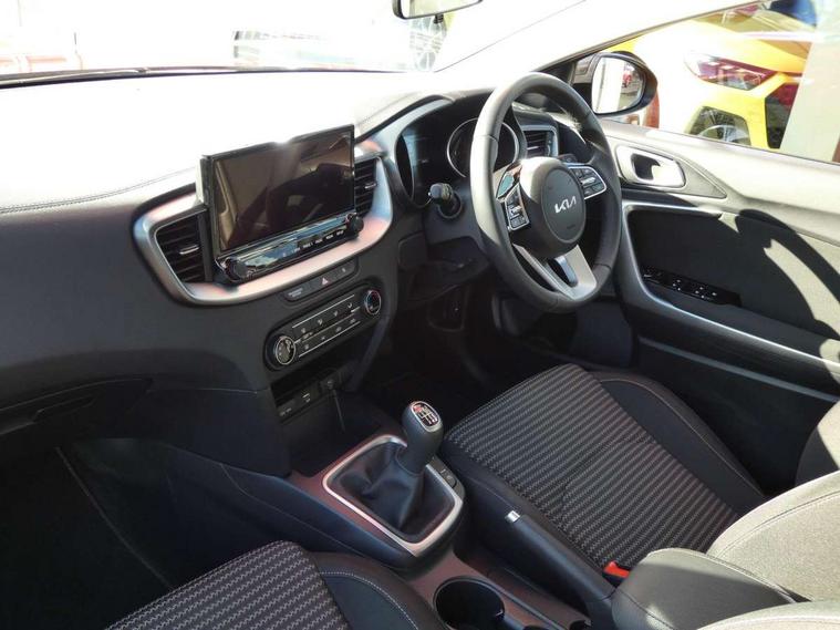 10.25" touchscreen satellite navigation, 4.2" supervision colour cluster display, Apple CarPlay and Android Auto, Bluetooth with Voice Recognition & Music Streaming, Cruise control, Driver attention warning, Emergency call service, Forward Collision-Avoidance Assist (FCA) 1.0 - City/Pedestrian/Cyclist, Intelligent speed limit assist, Lane Follow Assist 1.0, Lane keep assist, Motor driven power steering, Rear parking sensor, Reversing camera with dynamic guide lines, Speed limiter, Tailgate, Trip computer, Intelligent Stop and Go, 7 speakers, DAB Radio with MP3, Front USB port for media connection, Steering wheel mounted controls, All-round Electric Windows with Front Auto Up & Down Function, Automatic headlights, Black side sill mouldings with chrome inserts, Black wheel arch trim, Body colour bumpers, Body colour exterior door handles, Body colour rear roof spoiler, Body coloured door mirrors, Body coloured shark fin antenna, Electrically adjustable and heated door mirrors, Front and rear silver skid plates, Heated rear window, High beam assist, LED daytime running lights, LED Headlights, LED High-mounted Brake Light, LED rear fog light, LED rear lights, Matt black and satin chrome radiator grille, Rear side wing doors, Rear wiper, Silver roof rails, Silver window surround, Smaller XCeed badge on rear left hand tailgate, Tinted glass, Variable front intermittent wipers, Windscreen Washer Level Warning, 3 seat bench in 2nd row, 60/40 split folding rear seat, All-round height adjustable headrests, Centre console with storage box, Chrome interior door handles, Cloth door trim, Cupholders in centre console, Driver and passenger front seat pockets, Driver's seat height adjuster, Front and luggage area 12V power sockets, Front and rear cabin lights, Front and rear door storage, Front passenger 1 x USB-C charging port, Glovebox, Illuminated driver and front passenger sunvisors with vanity mirror, ISOFIX Child seat top tethers and anchor fixings outer rear seats, Leather steering wheel, Luggage area parcel shelf, Luggage compartment light, Luggage hooks, Manual air conditioning, Manual steering wheel adjustment, Premium cloth upholstery, Rear centre armrest with cupholders, Rear passenger 1 x USB-C charging port, Single front passenger seat, All round 3-point seatbelts, Anti-Lock braking system with emergency stop signalling, Dual horn, EBD + Brake Assist, Electronic stability control (ESC) and vehicle stability management (VSM), Front passenger airbag cut off switch, Front, side and curtain airbags, Height adjustable front seatbelts, Hill start assist control (HAC), Impact sensing auto door unlocking, Manual handbrake, Rear door child safety locks, Seatbelt reminder warning, Traction control, Tyre pressure warning system, Customisable automatic door locking, Customisable automatic door unlocking, Locking wheel nuts, Remote central door locking with fold away key, Smart key with motion sensor, Thatcham category 2 security alarm and immobiliser, Visible vehicle identification number, 16" alloy wheels, Tyre mobility kit,