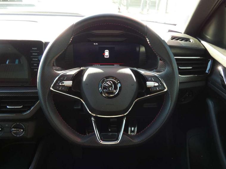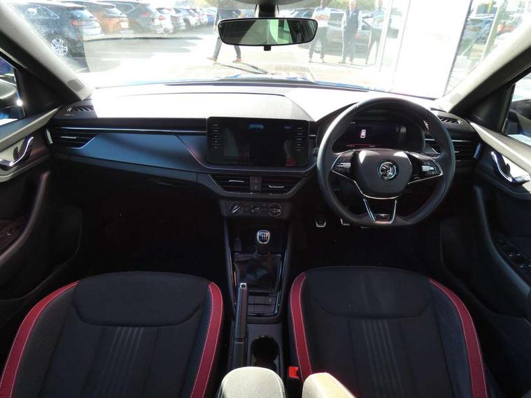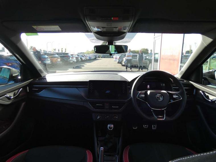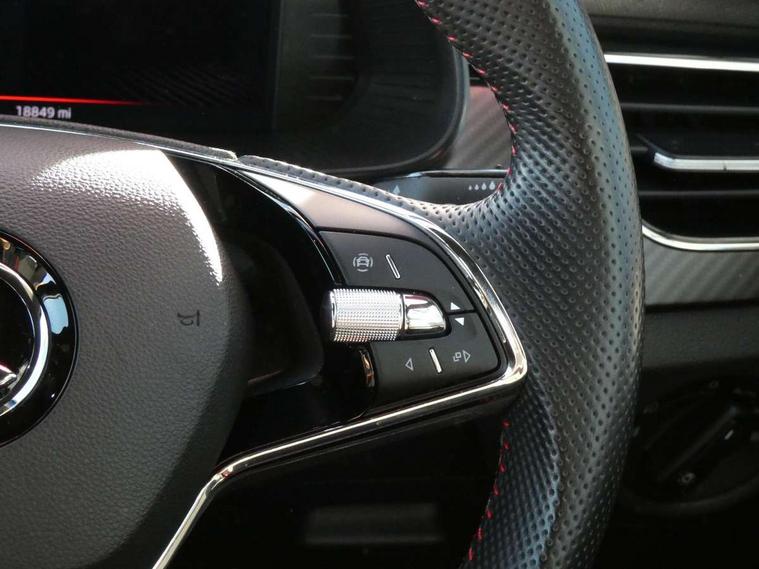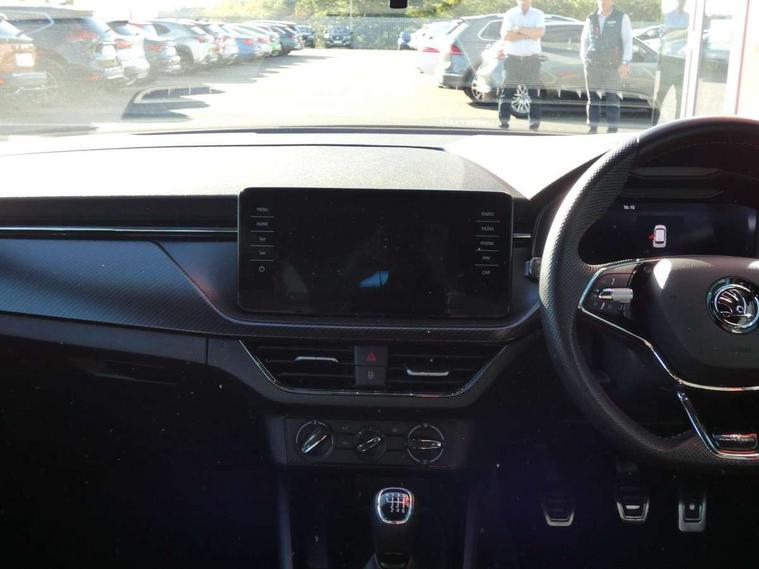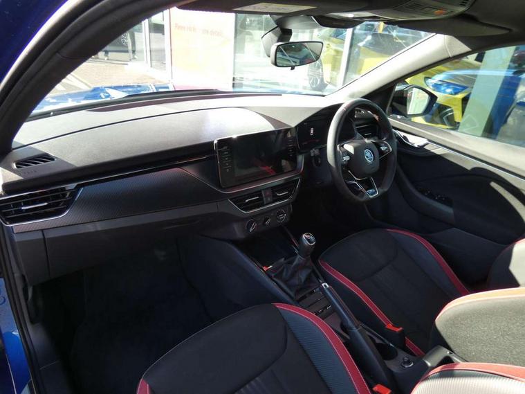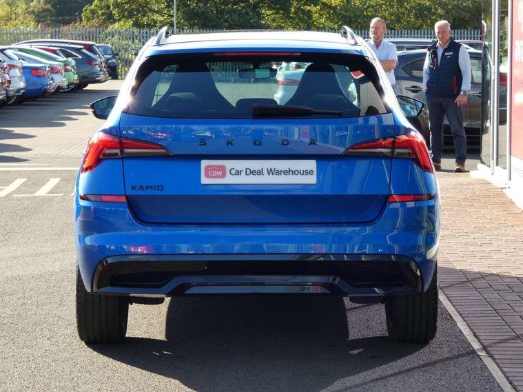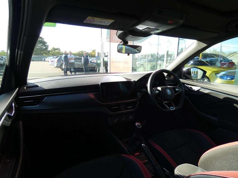 Amundsen satellite navigation with 9.2" touchscreen display, voice control, virtual cockpit and web radio, Bluetooth system, E-call, Front assist system, Gesture control, PAS, Service indicator, Speed limiter, Virtual cockpit with 10.25" display, Wireless SmartLink for apple car play, android auto and mirrorlink, 8 Speakers, Auxiliary input socket, DAB Digital radio, Black door mirrors, Black radiator grille, Black rear diffuser, Body colour bumpers, Body colour door handles, Body colour roof spoiler, Boot lettering in black, Chrome grille surround, Dimming rear view mirror with black surround, Electrically adjustable and heated door mirrors, Front and rear electric windows, Front sport bumper, Full LED headlights with adaptive front light system, dynamic indicators, cornering function and fog lights, Headlight range control, Heated rear window, High functionality rear led lights with dynamic indicators, KAMIQ Door sills, Light sensors, Monte carlo plaque, Panoramic sunroof with black roof rails, Privacy glass, Rear fog lights, Rear side wing doors, Rear wiper, 12V Accessory socket in centre console, 3 seat bench in 2nd row, Aluminium pedals, Black ceiling for black/beige interior, Chrome inner door handles, Cloth upholstery, Front head restraints, Glove compartment with illumination, Ice scraper, Isofix child seat fittings on outer rear seats, ISOFIX on front passenger seat, Leather gear lever, Manual lumbar support for front seats, Rake/reach adjustable steering wheel, Reading lights, Single front passenger seat, Sports seats, Sun visors with illumination on front passenger, Textile floor mats, Third rear headrest, Top tether for front passenger seat, Umbrella in driver's door, 3x3 point rear seatbelts, Airbags - driver and front passenger, ESP, Front passenger airbag deactivation switch, Front side airbags with curtain airbags, Hill hold control, Manual parking brake, Manual rear child locks, One tone horn, Rear disc brakes, Seatbelt reminder for driver an co-driver, Traction control, Tyre pressure monitor, Anti-theft alarm system with interior monitoring, backup horn, towing protection and remote central locking with SAFE system, Anti-theft wheel bolts, Electronic engine immobilizer, Chrome air vent surrounds, 18" Vega alloy wheels in black,