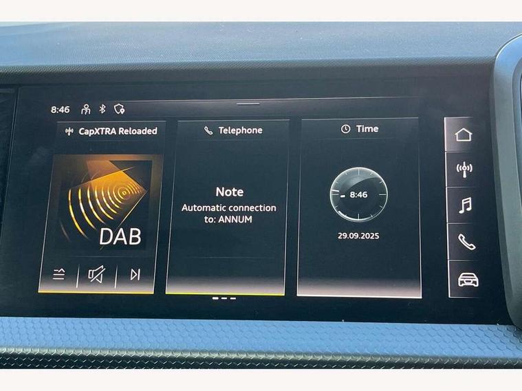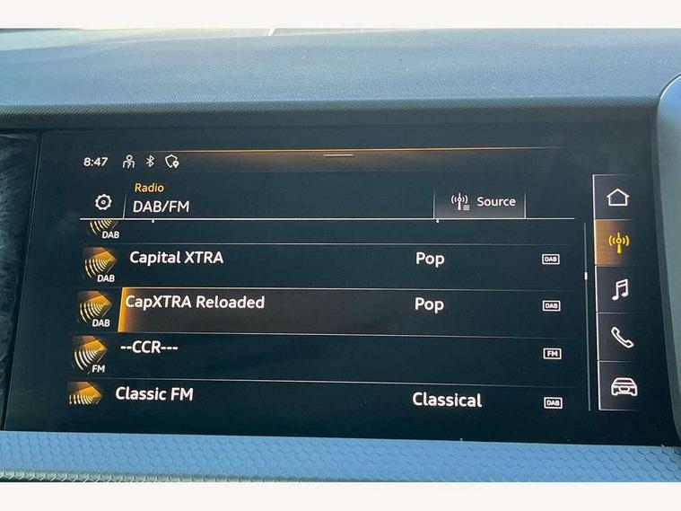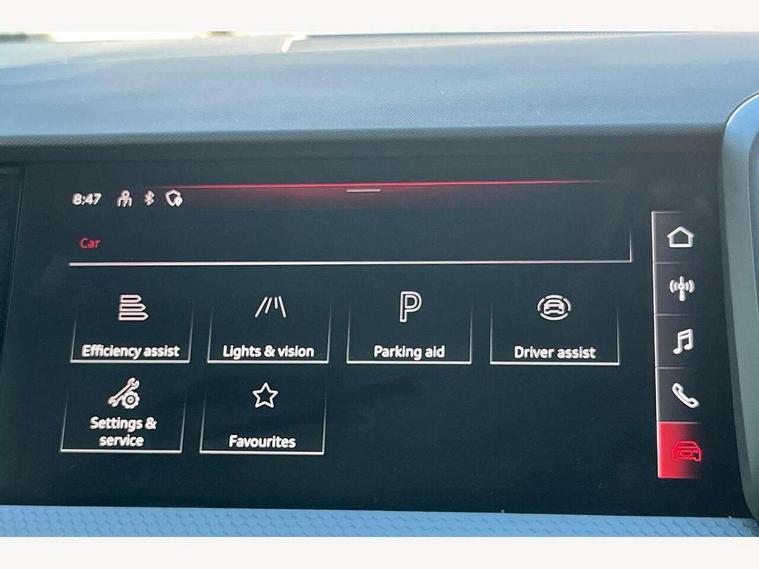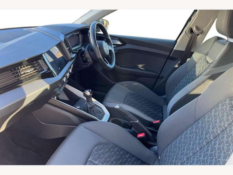 10.25" Digital instrument cluster display classis style instrument dials + speed, odometer, time, outside temperature, telephone menu + fuel level warning, Audi smartphone interface with connect compatible smartphone via USB directly MMI display + Nav, music, third party apps controlled via MMI controller, Automatic start/stop system, Bluetooth interface, Cruise control, Driver's information system, Electromechanical power steering, Emergency e-call, Lane departure warning system, Rear parking sensor, Service interval indicator, Speed limiter, Voice control system, Washer fluid level indicator, Dynamic suspension, 2 x USB type C connection points, 6 passive loudspeakers, DAB Digital radio, MMI radio plus with 10.1" colour MMI display screen and MMI touch, Auto dimming rear view mirror, Body coloured bumpers, Body coloured door mirrors, Electric front and rear windows, Electrically adjustable, heated, folding door mirrors with integrated LED side indicator, Front side air inlets in grained matt black and C frame in anthracite black, Heat insulating glass windscreen and side windows, Heated rear windscreen, High level LED brake light, LED headlights with LED rear lights + dynamic rear indicators + headlight adjustment and high beam, turning light + LED daytime running lights, Radiator grille and rear diffuser in matt anthracite black, Radiator protective grille frame in matt aluminium silver, Rain and light sensors, Rear fog lights, Rear side wing doors, Rear wiper, Side front spoiler lips in grained matt black, 12V socket in centre console with two cup holders, 3 rear seats with headrests, 3 seat bench in 2nd row, 3 spoke leather multifunction plus steering wheel, 40:60 Split folding rear seat or folded fully, Black front and rear floor mats, Door sill trims with aluminium inlay, Driver and passenger seat with manual height adjust with forward and backwards adjustment, Front head restraints, Front passenger seat, Grey cloth headlining, Height and reach adjustable steering wheel, ISOFIX child seat mounting for front passenger and outer rear seats including top tether attachment point of outer rear seats, Leather gear knob with aluminium trim, Leather handbrake grip, Luggage compartment light with front and rear reading lights, Manual air conditioning, Manually adjustable lumbar support in front seats, Novum cloth upholstery with front sport seats, Luggage compartment pack - A1, 3x3 point rear seatbelts, Audi pre-sense front with pedestrain and cyclist recognition, Brake assist function, Driver and front passenger airbag with front side and head airbags, Electronic Stability Control including ABS, EBD, ASR and EDL, Front passenger airbag deactivation switch, Hill hold assist, Manual rear child locks, Seatbelt height adjustment for front seats, Seatbelt monitoring, Tyre pressure warning light, Warning triangle and first aid kit, Anti theft alarm, Anti theft wheel bolts and loose wheel warning, Immobiliser, Remote central locking with 2 foldaway keys, Aluminium trim for control switches, air vents and digital instrument cluster, Black dashboard, Silver grey accent areas including air vents, door handle recesses and centre console in diamond paint finish, Slate grey inlays polygon structure in fine paint finish,