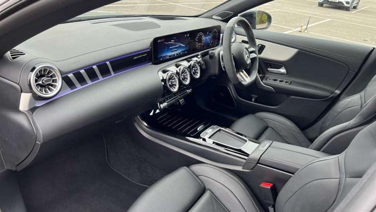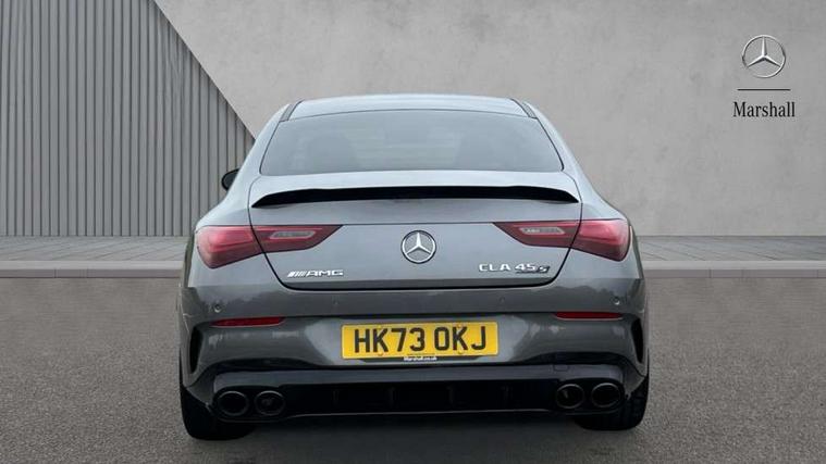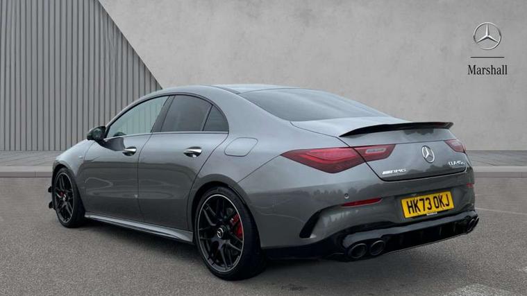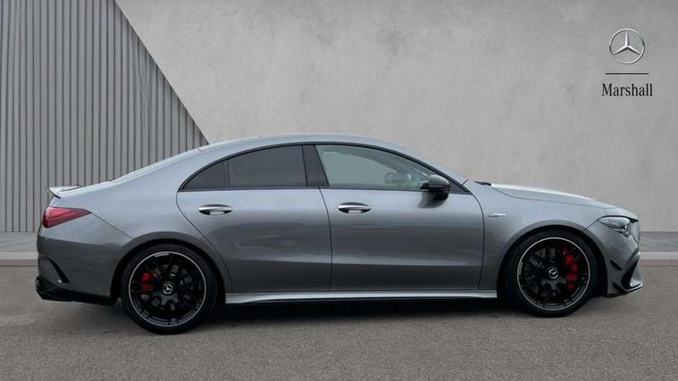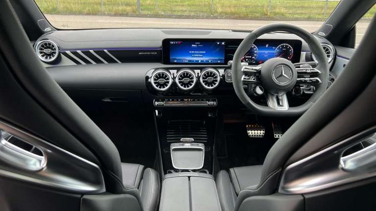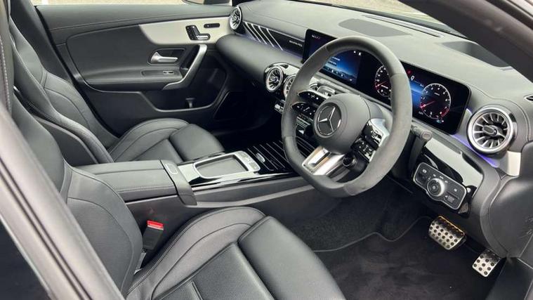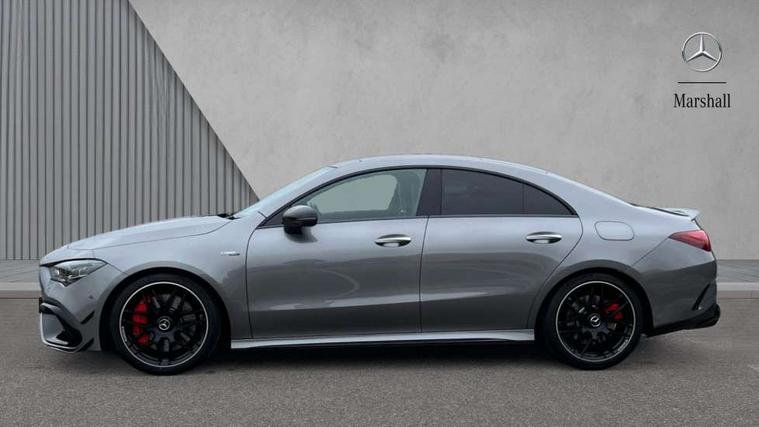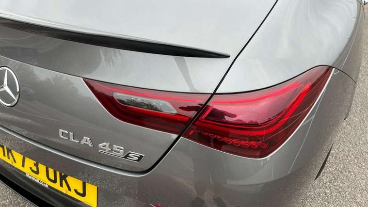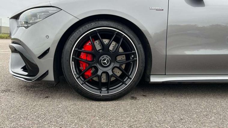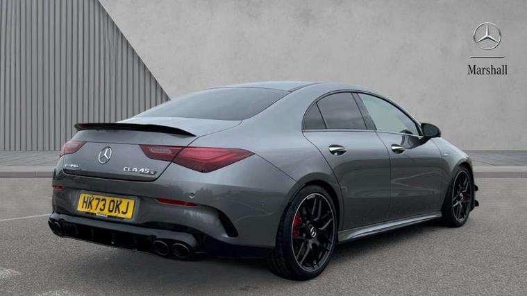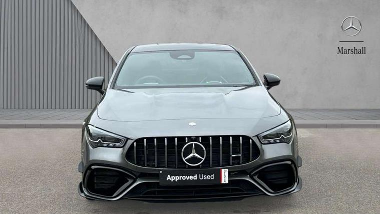 10.25 inch Instrument display with digital cockpit, 10.25 inch touchscreen central media display with AMG specific, AMG start up logo, visualisation of the AMG drive programs, vehicle and engine data, 360 degree parking camera, Active lane keeping assist, AMG DYNAMIC SELECT with drive modes(Slippery, Comfort, Sport, Sport+, Individual and Race) incl drift mode via steering wheel shift paddles+Race Start, AMG menu with sporty additional information - Gear indicator with yellow M symbol manual mode, Warm Up menu and Set Up menu, AMG speed sensitive power steering with two sets of steering characteristics, AMG track pace, Attention assist - Monitors steering behaviour and long journey fatigue, Bluetooth connection, Car wash mode, Cruise control with limiter, Direct steer system, ECO start/stop function, Fluid level warning indicator for fuel, oil, coolant and washer fluid, Hard-disk navigation, Head up Display, Hey Mercedes Voice activation, Lamp failure indicator, MBUX augmented reality for navigation, MBUX Interior assistant, Mercedes me connect including emergency call system, accident recovery, breakdown and maintenance management, Mercedes me remote services, Outside temperature gauge, Owners manual in English, Pre-installation of private car share, Radio aerial integrated into front and rear windshields, Service indicator (ASSYST), Smartphone integration with Apple CarPlay and Android auto, Traffic sign assist, Trip computer in multifunction display with current consumption indicator, Wireless charging in the front centre console, 4MATIC permanent four wheel drive, AMG performance 4MATIC+ with torque control distribution, AMG Ride Control suspension, Rear axle multi-link, Burmester lettering on the speakers, Burmester surround sound system (710W) with dolby atmos, speakers - 1 central, 1 woofer, 1 tweeter, 1 subwoofer with 60W, 2 in C pillar, DAB digital radio tuner, MBUX multimedia system, Pre installation for Mercedes Benz Link, USB (type C) ports (2) in stowage compartment and 1 in front of centre console, Adaptive brake lights, AMG body styling specific front apron, AMG side sill panels, AMG rear apron, AMG roof spoiler lip, Specific S labelling boot lid + front apron CLA 45, AMG emblem on the front instead of the "Mercedes-Benz" laurel wreath badge, AMG Front apron with flics as air deflector elements on the outer air intakes, AMG fuel filler cap in silver chrome with AMG lettering, AMG illuminated door sills with AMG lettering and with exchangeable cover, AMG specific radiator grille with vertical struts in high gloss chrome and AMG logo, AMG Sports exhaust system with two round tailpipes measuring 90 mm in diameter attached in rear apron, AMG lettering plus ribbing on the inside of the, Body colour bumpers, Body colour door handles, Electric panoramic sunroof with automatic tilt and convenience closing fuinctions, rain sensor auto closing and electronic roller sunblind, Electric windows, Electrically adjustable and heated door mirrors with integrated LED indicators, Exhaust system with AMG Real Performance Sound (Balanced or Powerful settings), Front splitter and trim elements on the louvres in the outer air inlets in silver chrome, Front wings with TURBO 4MATIC lettering, Headlamp assist automatic headlamp activation, Heated glass rear windscreen + timer control, High level LED third brake light, Integrated LED daytime running lights, Interior mirror with black reading lamps and frameless, LED tail lamp, Multibeam LED headlamps with adaptive highbeam assist plus, Privacy glass with dark tinting on rear side windows and rear window, Rain sensing windscreen wipers with two sensitivity settings, Rear boot, Rear fog lamp, Rear side wing doors, Surround lighting with projection of brand logo, Two round twin tailpipe trim elements each measuring 90 mm in diameter and AMG lettering plus ribbing on the inside of the pipe, Valve control dependent on drive program, Variable front intermittent wipers, 3 seat bench in 2nd row, 40:20:40 split folding rear seat backrests, Air conditioning - Two zone thermotronic luxury automatic climate control with display, Air vents with surround in silver chrome, AMG brushed stainless steel sports pedals with rubber studs, AMG centre console finished with trim in silver chrome, AMG Performance sportily shaped seats with power adjustable front seats, special seat cushions + AMG badge backrests, AMG Performance steering wheel in nappa leather/microcut microfibre, AMG steering wheel buttons, Automatic child seat recognition sensor, Black roof lining, Floor mats with stitched AMG lettering, Front centre armrest with stowage, Front head restraints, Heated front seats, Interior lighting - 64 colour Ambient lighting, Manually height and reach adjustable steering column, Rear armrest with two integral cup holders for drinks, Rear head restraints, Silver coloured aluminium gear shift paddles on steering wheel, Single front passenger seat, Stowage compartment in centre console with retractable cover, Sunvisors with illuminated vanity mirrors, Twin front cupholders, Two outer rear seat isofix and top tether child seat fixing points, Aerodynamics pack - CLA, AMG driver's package - CLA, AMG Multi contour seat pack - CLA, AMG Night package - CLA 35/45, AMG performance seat pack (High End) - CLA 45 S 4Matic+ Plus, Keyless go comfort pack - CLA, Light and sight pack - CLA, Mirror pack with Self dimming rear view mirror - CLA, Seat comfort pack - CLA, Active bonnet pedestrain safety measure which detects an impact and raises bonnet by 65mm, Adaptive brake assist with hold function and hill start assist, AMG high performance brake system with red painted brake callipers and black AMG lettering at the front, ventilated and perforated brake discs, Anti lock braking system (ABS) with brake assist, Black seat belts, Brake pad wear warning indicator, Childproof locks manually operated for rear doors and electrically operated for rear power windows, Crash responsive emergency l