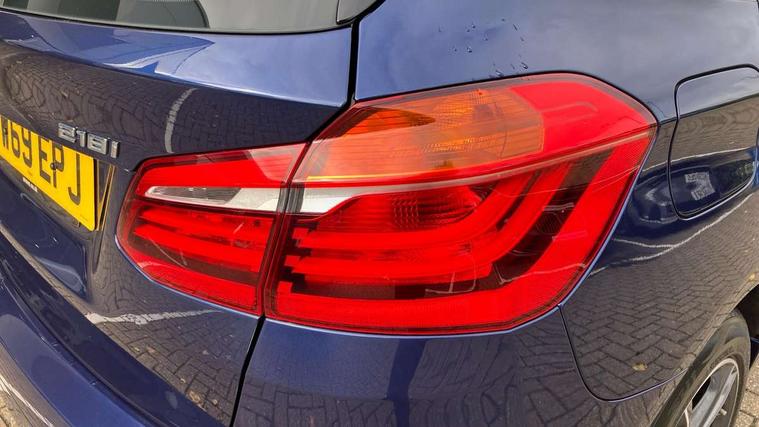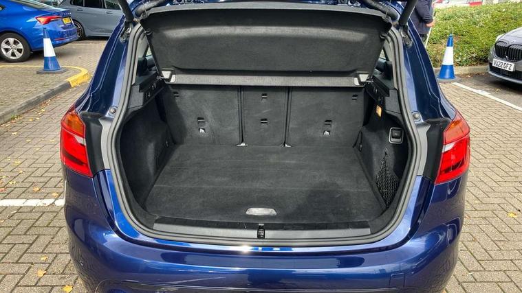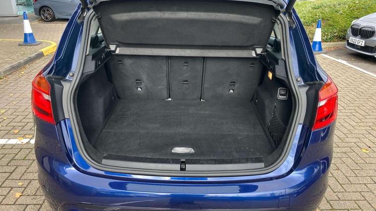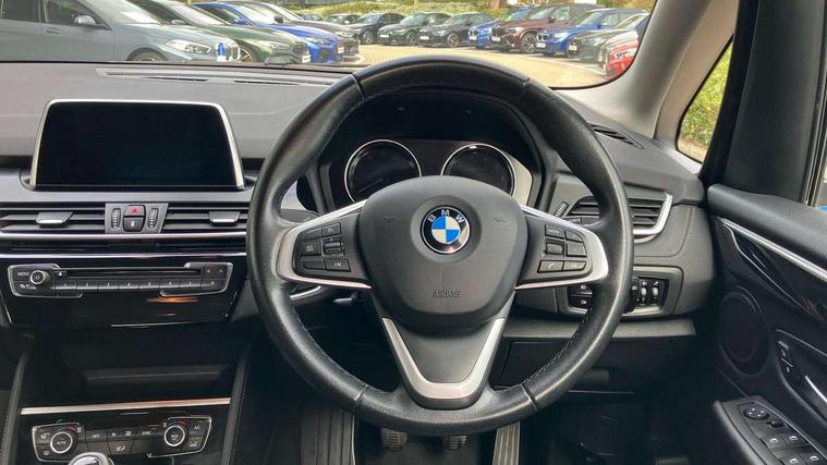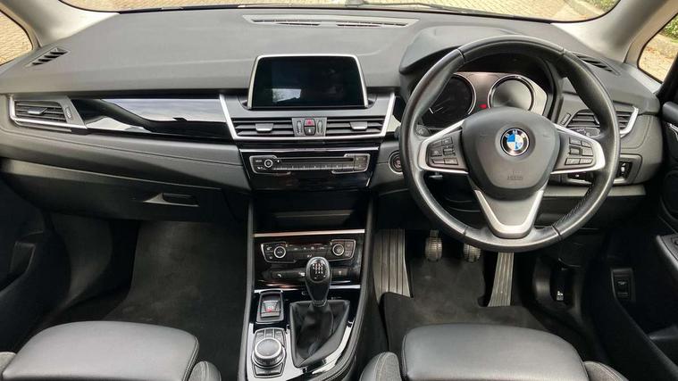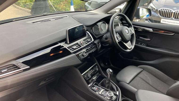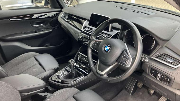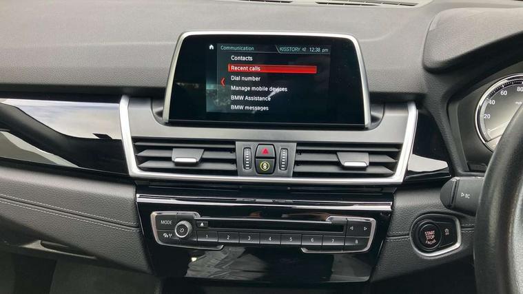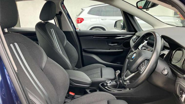 Active Guard incl speed limiting and lane departure functions with auto steering, and front collision warning with brake intervention, Attentiveness assist, Automatic tailgate operation, BMW Online services, BMW remote services, BMW Teleservices, Brake pad wear indicator in front and rear, Check Control warning system for monitoring of lights and door/luggage compartment open warning, Cruise control with brake assist, Instrument cluster with speedometer with miles per hour read out, tachometer and fuel gauge, Lights on warning by audio warning signal when ignition is switched off, On board computer - average speed+fuel consumption, service interval, clock/date, odometer/trip meter, outside temperature display and ice warning, Optimum shift indicator, Personal Profile - automatic lock when driving away selectable, Real time traffic information, Service interval indicator, Speed limiter, Drive performance control with ECO PRO comfort + sport mode, Electronic differential lock, Intervention on the front axle when DSC deactivated, 2 USB sockets in rear, BMW professional radio/CD/MP3, DAB Digital radio, Body colour - front and rear bumpers, door handles, mirror caps, roof mouldings, Clear lenses direction indicator lights, Direction indicator side lights integrated exterior mirrors, Dynamic brake lights, Electric windows - front and rear, with open/close fingertip control, anti-trap facility and comfort closing, Electrically adjustable door mirrors with aspheric on driver side, convex on passenger side with integrated indicators, Exclusive front door sill finishers with BMW designation, Follow me home headlights, Front air inlet with high gloss black finish, Green tinted heat protection glazing, Halogen headlights, Headlight beam throw control, Heated windscreen washer jets, High level third brake light, Kidney grille with 10 extra wide high gloss black fronted vertical slats, LED daytime running lights, LED front fog lights, Lightweight engineering, Rain sensor including auto headlights activation, Rear bumper with high gloss black finish, Rear fog lights, Rear window aerial, Rear window wiper integrated under roof spoiler, Reversing light in rear light cluster, Shark fin antenna, Single chrome exhaust tailpipe, Visible VIN plate, Welcome lighting, 12V power socket in centre console + front with blanking plug, Automatic two zone climate control air conditioning, Central locking switches for door, fuel filler cap and luggage compartment, Child seat ISOFIX attachment for two outer rear seats and front passenger seat with anchorage points, Four grab handles integrated in roof lining, Front and rear side armrest integrated into door trim, Front armrest, Front head restraints, Front sports seats with electric side bolster adjustment, Glovebox with light, Interior lighting, front centre over interior mirror and rear centre automatic interior light activation when door is opened, LED ambient lighting in door trim, Luggage compartment access via BMW roundel, Luggage compartment lighting, Manual 40:20:40 split folding rear seat with removal of 60:40 sliding bench, Multi-function controls for steering wheel, Rear centre armrest, Sliding rear seat bench, Steering wheel column manual adjustment, Sunvisors with vanity mirrors and ticket pocket, Three rear headrests, Three spoke sport leather steering wheel, Two cupholders, Velour floor mats, Extended storage pack - 2 Series Active/Gran Tourer, 3 point seatbelts on all seats, front pyrotechnic belt tensioners, stopper and belt force limiters, rear coded belt buckles, Airbag - Front driver and passenger, front and rear head, front side, curtain head protection, manual deactivation of front passenger airbag possible, Anti lock braking system (ABS) with brake assist, Battery safety cut-off, BMW emergency call, Brake drying, Brake energy regeneration, Braking lock, Braking readiness, Child proof locking system in rear door, Crash Sensor - activates hazard/interior lighting + unlocks doors, Dynamic stability control + (DSC+), Dynamic Traction Control - DTC, Electrically operated hand brake, Front ventilated disc brakes, Hill start assist, Rear disc brakes, Seat belt security check for driver and front passenger, Seatbelt warning, Side impact protection, Twin horns, Tyre pressure monitoring system, Warning triangle and first aid kit, Locking wheel bolts, Remote control with integrated key with silver highlight, Thatcham 1 alarm system with remote control and engine immobiliser, Contrast stitching on instrument panel, Reduced rolling resistance tyres,