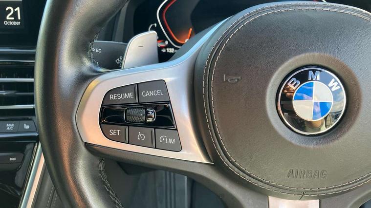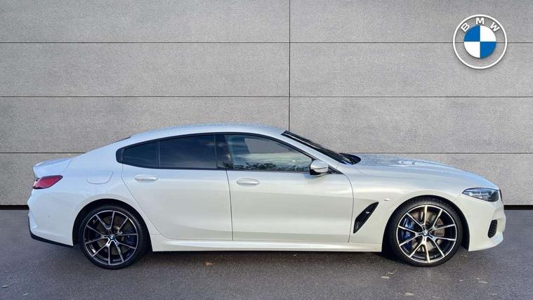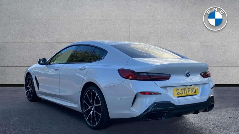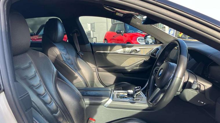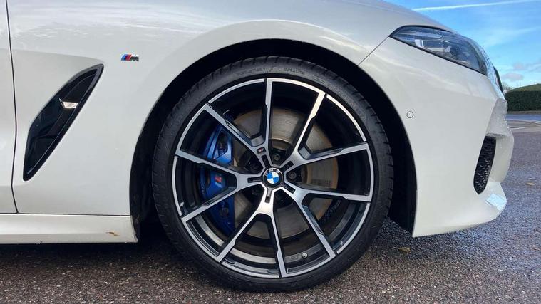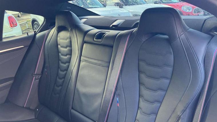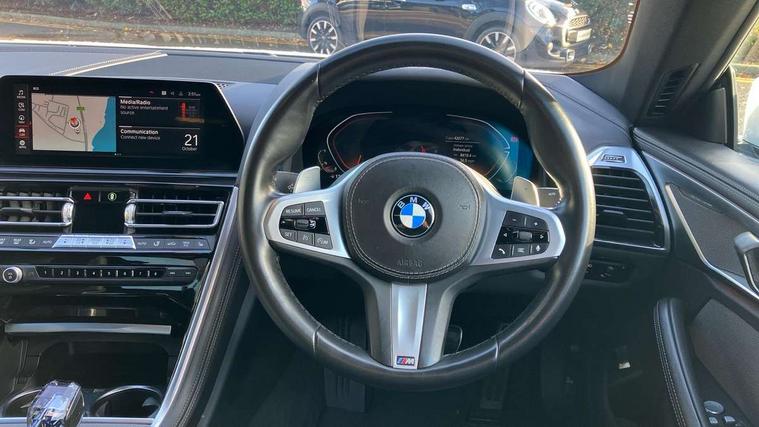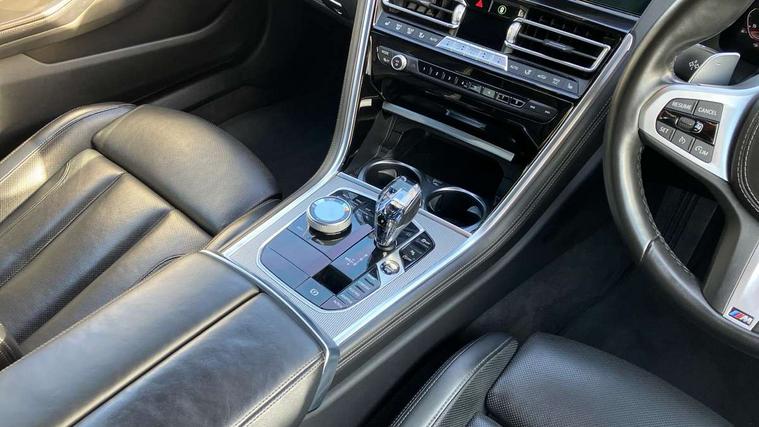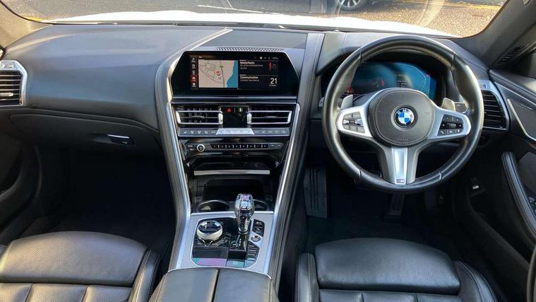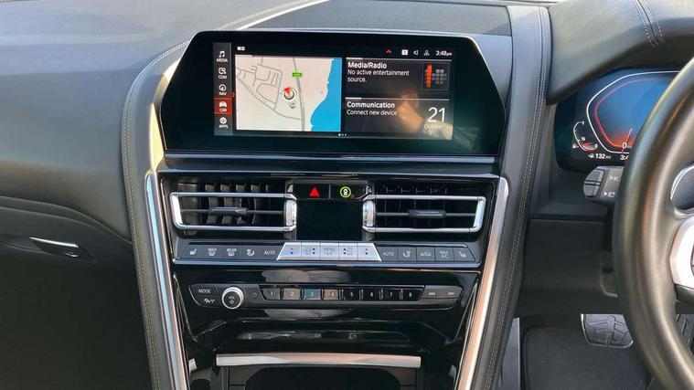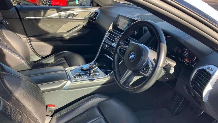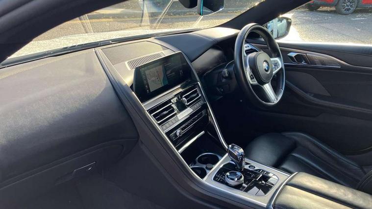 BMW ConnectedDrive online services, BMW legal emergency call, BMW Teleservices, Brake pad wear indicator, Check control system, Condition based service, Drive experience control with Sport, Comfort, Eco Pro and Adaptive modes, Electric bootlid, Head up Display, iDrive touch controller with shortcut buttons, Instrument and upper door panel in walknappa leather, Integrated owners handbook, Oil sensor for level and grade, On board computer, Outside temperature display, Run flat indicator, Service interval indicator, Double wishbone front axle, Dynamic Damper Control, Eight speed sport automatic transmission with gearshift paddle switches, M Sport differential, Petrol Particulate Filter, DAB Digital radio, Favourite buttons, Automatic windscreen wipers and automatic headlight, Bright chrome kidney grille, Carbon core, Chrome M designation on front side panel, left and right, Climate comfort windscreen, Dynamic brake lights, Electrically adjustable, heated, folding exterior mirrors, Follow me home headlight function, Frameless interior mirror, Front and rear bumper system with replaceable deformation elements, Front electric windows, Heated windscreen washer jets, High beam assistant, Illuminated door handles, LED rear lights, Model logo on right tailgate, Satinised aluminium kidney struts, Thermally insulated windscreen, Third brake light featuring LED technology, Welcome lights in interior and door handle area, xDrive designation on left tailgate, 2 cup holders in front, 2 rear head restraints, 2 X front 12v power sockets, 4 zone control automatic air conditioning, 50/50 split folding rear seat, Dynamic ambient interior lighting, Front and rear seat heating, Front entry lights doors, Front reading lights, Front sun visors with ticket holder and illuminated mirror, Illuminated M door sill finishers, Lockable glove compartment with light, M Pedals, M sport leather steering wheel including multifunction controls, Microfilter and active carbon filter, Steering column with adjustable height and length and activation via control on the steering column, Velour floormats, BMW Live cockpit professional pack - 8 Series, Connected professional pack - 8 Series, M sport exterior styling aerodynamics pack - 8 Series, 3x3 point rear seatbelts, ABS/EBD, Active protection, Airbags - Driver and front passenger airbag with seat occupancy detection, knee, side and front passenger seat airbag deactivation, Child seat ISOFIX attachment rear outer seats, Cornering brake control (CBC), Crash sensor activating central locking release, hazard warning lights, fuel cut off, interior lighting, safety battery terminal clamp and airbags, DSC - Dynamic Stability Control, Dynamic brake control, Dynamic Traction Control - DTC, Electromechanical parking brake with automatic drive away release and auto hold function, Front and rear brake discs with interior ventilation, Front three point with pyrotechnical belt latch tensioner seat belts, belt force limiter and belt stopper, Hill start assist, Rear three point with pyrotechnical belt latch tensioner seat belts and belt force limiter, Side impact protection, Two tone horn, Tyre pressure monitoring system (TPMS), Warning triangle and first aid kit, Alarm system (Thatcham 1) with electronic engine immobiliser, Centre lock switch, Closing system with central locking, Comfort access system, Keyless engine start, Locking wheel bolts, Vehicle key with exclusive M designation,