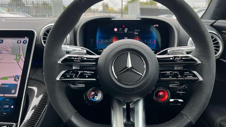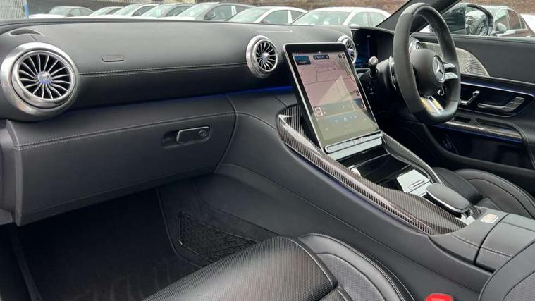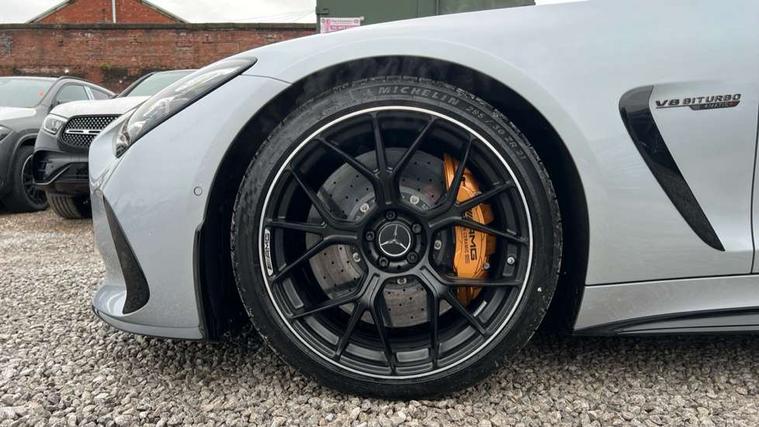 11.9" central display with touchscreen, 12.3" driver display with AMG specific content, Active parking assist, AMG track pace, Child presence detection, Head up Display, MBUX augmented reality for navigation, MBUX Interior assistant, MBUX navigation premium, Mercedes-Benz emergency call system, PAS, Rear axle steering, Remote Services Premium, Smartphone integration with Apple CarPlay/Android Auto, Traffic sign assist, Wireless charging system for mobile devices, Active roll stabilisation, AMG electronic rear axle limited slip differential lock, AMG performance 4MATIC+, AMG RIDE CONTROL + Suspension, AMG SPEEDSHIFT MCT 9 speed automatic sports transmission, Front axle lift system, Petrol Particulate Filter, Burmester surround sound system, 3rd brake light, Adaptive brake lights, AMG illuminated door sills with AMG lettering and with exchangeable cover, AMG Light display, AMG real performance exhaust sound system, Auto headlights, Body colour bumpers, Digital light headlamps, Electric windows with pre-safe closing function, Fixed panoramic glass sunroof, LED daytime running lights, Magic vision control, Privacy glass, Radiator fins in black, Rain sensor windscreen wipers, Rear boot, 2 cup holders in front, 2 individual rear seats, Ambient lighting with choice of 64 colour settings, AMG performance seats, AMG Performance steering wheel in nappa leather/microcut microfibre, AMG steering wheel buttons, ENERGIZING air control, Front and rear headrests, Heated steering wheel, Rear seats with folding backrests upto 1.5m tall, Single front passenger seat, THERMOTRONIC automatic climate control, AMG aerodynamics package - AMG GT 63, AMG Dynamic plus package - AMG GT 55/63, AMG night pack - AMG GT 43/55/63, AMG night pack II - AMG GT 43/55/63, Energizing plus package - AMG GT 63, Load compartment package - AMG GT 43/55/63, Memory pack - AMG GT 43/55/63, Mirror package - AMG GT 43/55/63, Multicontour seat package - AMG GT 63, Parking package - AMG GT 43/55/63, USB package plus - AMG GT 43/55/63, Active braking assist with intersecion start-off function, Airbags - driver and front passenger, Airbags - kneebag for driver, Airbags - windowbags, AMG ceramic high performance composite brake system, Anti lock braking system (ABS) with brake assist, Automatic front passenger airbag deactivation, Ceramic brake calipers, Electric parking brake, Predictive pedestrian protection, Tyre pressure monitoring system, Alarm system with immobiliser and interior protection -Thatcham category 1, Guard 360 degree vehicle protection plus, Keyless Go starting function, Keyless Go with seamless door handles, Remote central locking, Summer tyres, Tirefit tyre sealant kit,