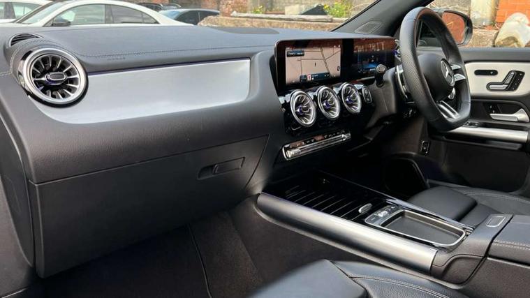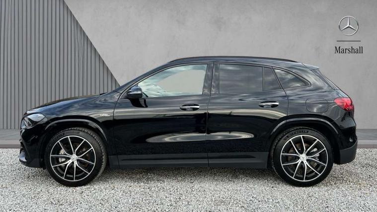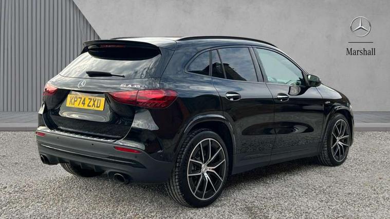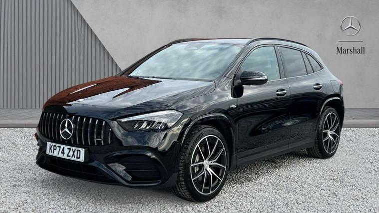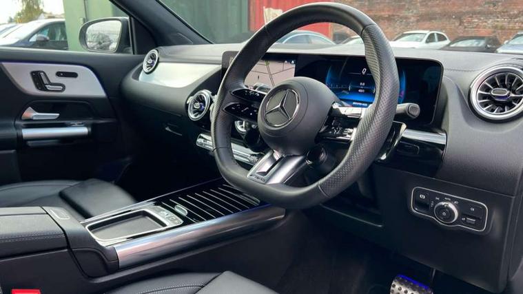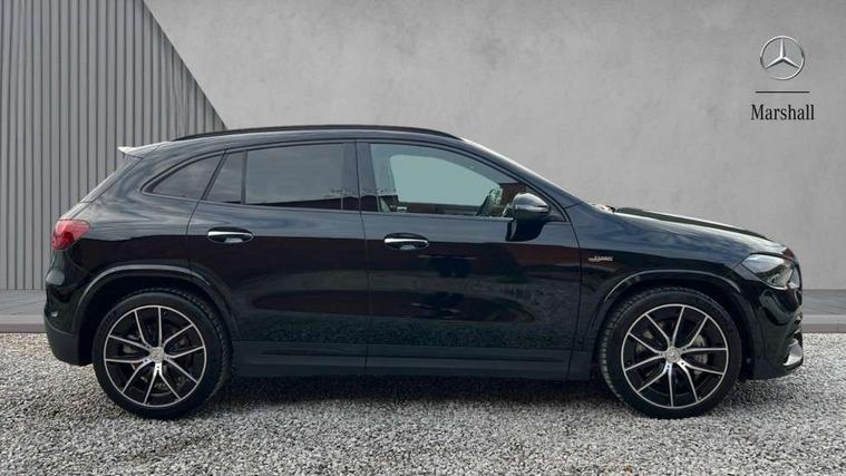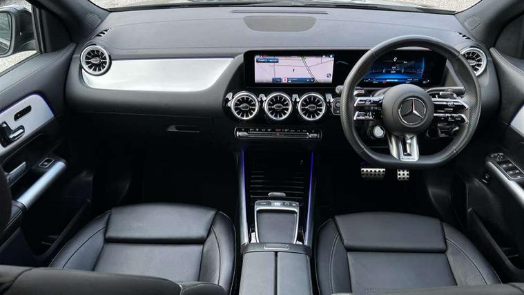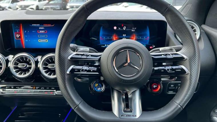 10.25 inch touchscreen central media display, 10.25" Digital instrument cluster display screen, AMG DYNAMIC SELECT with driving programs (Slippery, Comfort, Sport, Sport+, Individual and Race) including drift mode via steering wheel shift paddles, AMG speed sensitive steering with two sets of steering characteristics, Attention assist, Blind spot assist, Cruise control + speed limiter, Direct steering, Easy-pack tailgate, ECO start/stop function, Fingerprint scanner, Fluid level warning indicator for fuel, oil, coolant and washer fluid, Hard-disk navigation, Hey Mercedes Voice activation, Lamp failure indicator, Lane keeping assist (LKA), MBUX augmented reality for navigation, Mercedes me connect including emergency call system, accident recovery, breakdown and maintenance management, Mercedes me remote services, Multi function trip computer, Outside temperature gauge, Owners manual and service booklet in English, Pre-installation of private car share, Radio aerial integrated into front and rear windshields, Service indicator (ASSYST), Smartphone integration with Apple CarPlay and Android auto, Speed limit assist, Wireless charging, AMG performance 4MATIC+ with torque control, Rear axle multi-link, Suspension with adaptive damping system, Bluetooth connectivity including audio streaming, DAB Digital radio, MBUX multimedia system, Mercedes-Benz (225w) sound system with 10 speakers, Adaptive brake lights, Adaptive highbeam assist, AMG body styling - Front apron with air deflectors on the outer air intakes, AMG emblem on the front instead of the "Mercedes-Benz" laurel wreath badge, AMG Rear apron with specific diffuser look with four vertical fins and two round chrome plated tailpipe trim elements with a diameter of 90 mm, AMG sports exhaust system with two round tailpipes attached to the rear apron, Automatic headlamp activation, Beltline strips in High gloss Black, Body colour bumpers, Body coloured door handles with chrome insert for keyless entry, Car wash function, Dark privacy glass from B-pillar backwards, Electric front windows, Electric rear windows, Electrically adjustable and heated door mirrors with integrated LED indicators, Front wings with TURBO 4MATIC lettering, Heated glass rear windscreen + timer control, Interior mirror with black reading lamps and frameless, LED high performance headlamps with integrated LED daytime running lights, LED tail lights, LED third brake light, Rain sensor windscreen wipers, Rear fog lights, Rear side wing doors, Rear wiper, Roof spoiler, Window line in high gloss black, 3 seat bench in 2nd row, 40:20:40 split folding rear seat backrests, Adjustable head restraints, Air conditioning - air vents with silver chrome surround, Air conditioning - Two zone thermotronic luxury automatic climate control with display, Aluminium geashift paddles in silver colour, AMG floor mats with AMG lettering in front, AMG illuminated door sills with changeable cover, AMG Performance steering wheel in nappa leather, Auto Mercedes-Benz child seat recognition sensor, Black roof lining, Courtesy light in boot, Electrically adjustable front memory seats with four way lumbar support, Front centre armrest with stowage, Heated front seats, Illuminated glovebox, Interior lighting - 64 colour Ambient lighting, Luggage net on driver/front passenger seat backrest, Manually height and reach adjustable steering column, Rear armrest with two integral cup holders for drinks, Single front passenger seat, Sport seats with fixed head restraints, Sports pedals in brushed stainless steel with black rubber studs, Stowage compartment in centre console, Stowage compartment with retractable cover, Sunvisors with illuminated vanity mirrors, Topstitching on the dashboard and beltline significantly enhance the high quality impression, Twin front cup holders, Two outer rear seat isofix and top tether child seat fixing points, AMG Night package - GLA, Comfort seat pack - GLA Class, Interior lighting with light and sight pack - GLA, Keyless go comfort package - GLA, Mirror pack - GLA Class, Parking package with reversing camera - GLA, USB package plus - GLA, 3 rear 3 point seatbelts, ABS with Brake Assist, Active bonnet pedestrain safety measure which detects an impact and raises bonnet by 65mm, Active brake assist includes forward collision warning system with autonomous braking, Adaptive brake assist with hold function and hill start assist, AMG high performance brake system with red painted brake callipers and black AMG lettering at the front, ventilated and perforated brake discs, Black seatbelts, Brake pad wear warning indicator, Childproof locks manually operated for rear doors and electrically operated for rear power windows, Crash responsive emergency lighting, Driver and passenger head and side airbags, Drivers knee airbag, Dual stage driver/passenger airbags, Electronic parking brake, ESP curve dynamic assist, ESP with ASR, Front and rear seatbelt reminder, Front passenger seat occupancy sensor, Tyre pressure monitoring system, Warning triangle and first aid kit, Window airbags, Alarm system with immobiliser and interior protection -Thatcham category 1, Guard 360 degree vehicle protection, Keyless Go starting function, Remote central locking and crash sensor with emergency opening function, Light longitudinal grain aluminium trim, 20" AMG 5 twin spoke light alloy wheels aerodynamically optimised and painted in matt black with high-sheen finish RTX, Summer tyres, Tirefit tyre sealant kit, Wheel arches wider for AMG wheels,