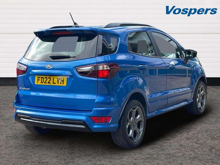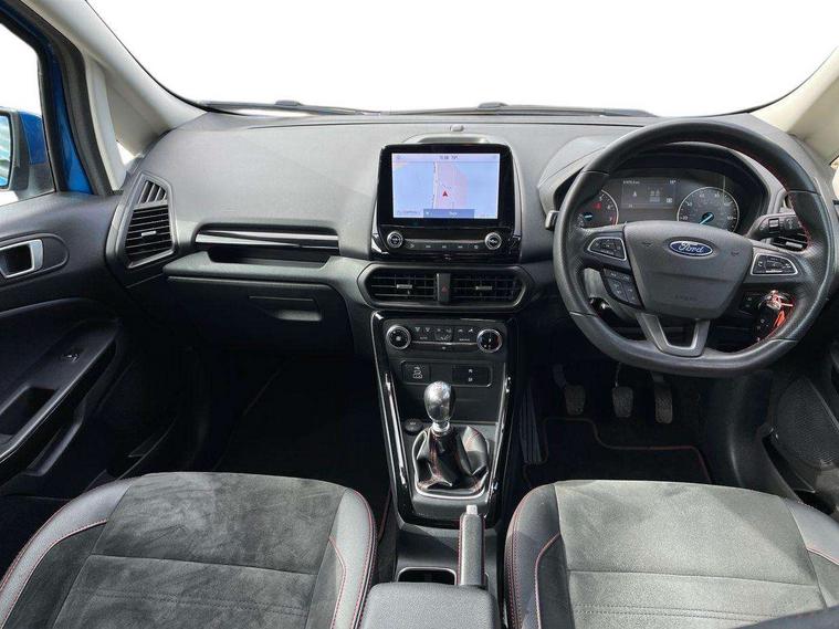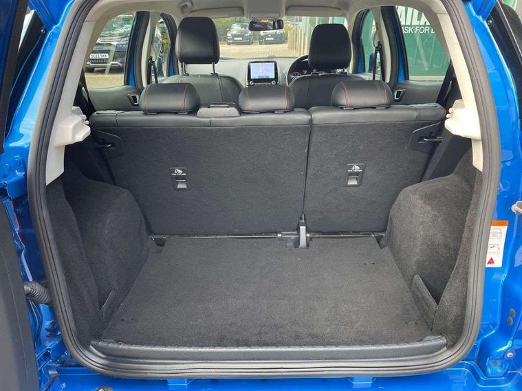 Cruise control, e-Call (emergency call), Easy fuel capless refuelling system, Ford SYNC 3 nav system with DAB radio, 8" screen, emergency assistance, Apple car play/Android auto, 2x USB, 6 speakers, Ford pass connect, Intelligent speed limiter, PAS, Rear parking sensors, Rear view camera, Traffic sign recognition, Trip computer, Sports suspension, Steering wheel mounted audio controls, Auto dimming rear view mirror, Automatic front wipers, Automatic headlights, Black roof rails, Body colour door handles, Body coloured bumpers, Chrome lower window surround, Electrically adjustable and heated door mirrors, Front fog lights, Front grille bars and surround in black, Headlight levelling control, Large rear roof spoiler, LED day running lights, LED third brake light, Power front and rear windows, Puddle lights, Quick-clear heated windscreen, Rear side wing doors, Rear wiper, ST Line body styling kit - Black headlamp bezel, front and rear sport bumpers, body colour lower door claddings, 12V socket in front and rear, 3 seat bench in 2nd row, 60/40 split rear seats, Ambient lighting, Centre console with sliding front armrest, Cooled glovebox, Courtesy lights with map reading light, Driver seat height/lumbar adjust, Driver's side glovebox, Driver/passenger sunvisors and lidded vanity mirrors, EATC - Electronic Auto Temperature control, Folding grab handles, Front head restraints, Front seat back map pockets, Illuminated glovebox, Illuminated luggage compartment, Isofix system on outer rear seats, Luggage compartment carpet, Neosuede/Partial sensico leather upholstery, Overhead console with sunglasses holder, Rake adjustable rear seats, Reach + rake adjustable steering column, Rear headrests, Sensico trimmed steering wheel, handbrake and gearshift gaiter with red stitching, Single front passenger seat, ST-Line Front floor mats with red stitching, Stainless steel sports pedals, Storage drawers under front seats, Tie down hooks, Variable boot floor, 3x3 point rear seatbelts, ABS, Autonomous emergency braking, Child locks on rear doors, Curtain airbags, Driver airbag, Drivers knee airbag, Electronic Stability Programme with hill launch assist, Front passenger airbag deactivation, Front side airbags, Passenger airbag, Pre collision assist system with AEB, Seatbelt reminder for driver and front passenger, Traction control, Tyre pressure monitoring system, Immobiliser, MyKey system, Remote central locking, Thatcham 1 volume sensing alarm, Low rolling resistance tyres, Tyre inflation kit,