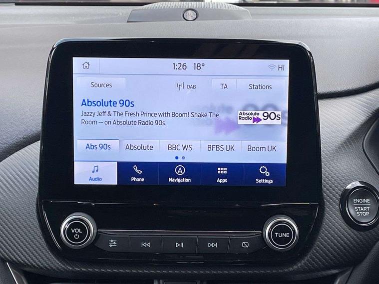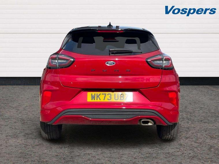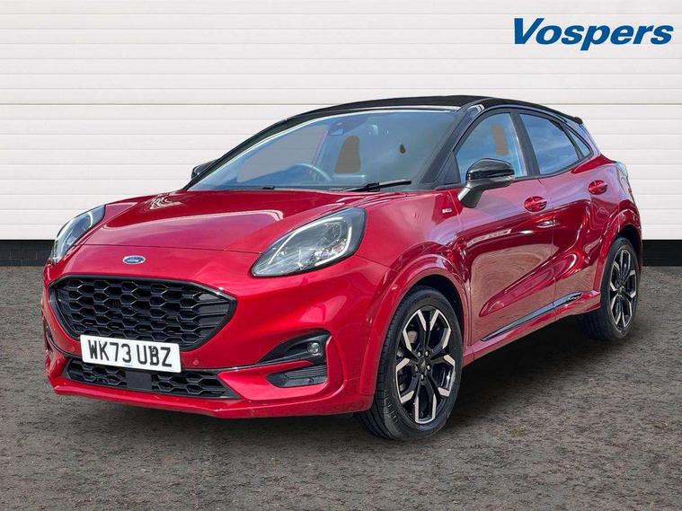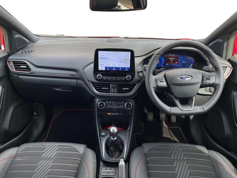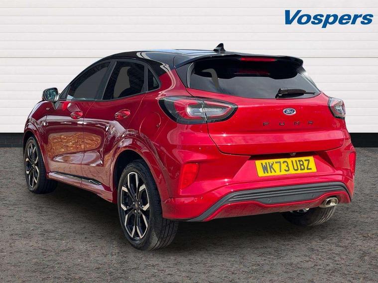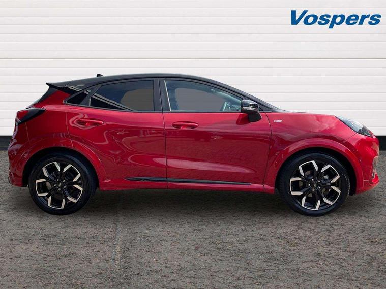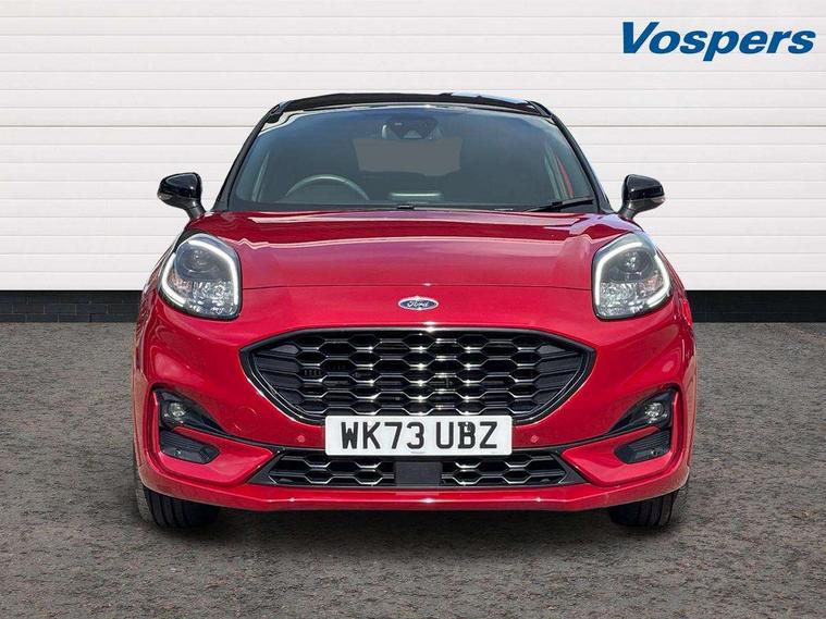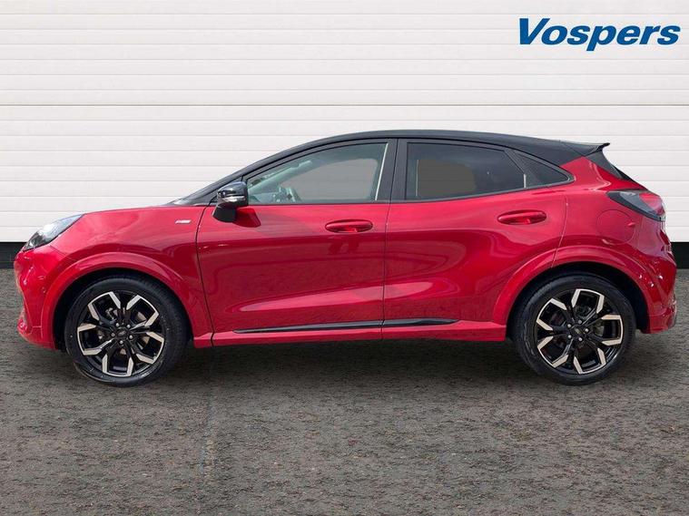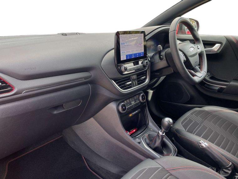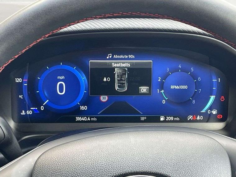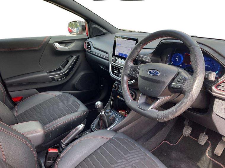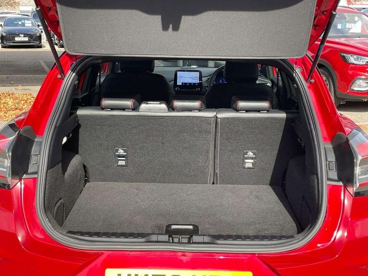 Driver impairment monitor, Emergency call service, Ford easy fuel, Full digital 12.3" instrument cluster, Lane keeping aid with lane departure warning, Power assist steering, Power start button, Rear parking sensor, Selectable drive modes(Normal, sport, Eco, trail, slippery), Speed sign recognition, Sport suspension, Automatic headlights with auto high beam, Automatic rain sensing wipers, Front fog lamps, LED daytime running lights, LED rear lamps, Power foldable heated door mirrors with puddle lamps, Privacy glass to side rear windows and tailgate glass, Quickclear heated windscreen, Rear side wing doors, Rear wiper, ST-Line body styling kit with unique grille and large body colour rear spoiler, Third brake light, 3 seat bench in 2nd row, Centre console with armrest and stowage, Ford megabox extended bootspace, Front and rear head restraints, Front floor mats, Manual 4 way driver seat adjust with lumbar adjustment, Manual 4 way passenger seat with lumbar seat adjustment, Sensico partial premium upholstery, Single front passenger seat, ST-Line flat bottomed sensico leather steering wheel with leather handbrake and aluminium gear knob, Wireless charging pad with electronic air temperature control (EATC), B&O Premium Audio system + Ford SYNC 3 navigation pack - Puma, 3 rear seatbelts, Child safety lock, Electronic stability control (ESC) and hill start assist, Pedestrian/cyclist detection & post-collision braking, Pre collision assist system, Tyre pressure monitoring system (TPMS), Thatcham alarm, Carbon look interior deco spears,