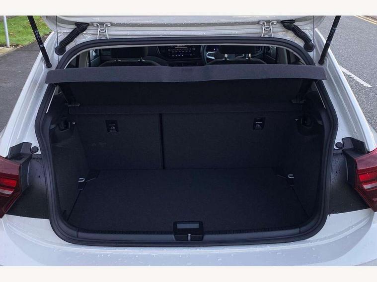 Advanced driver attention and drowsiness monitor, Bluetooth mobile phone interface, Dynamic road sign display, Emergency call service, Multifunction front facing camera for distance control, Park distance control, Power assisted speed sensitive steering, Predictive adaptive cruise control without follow-to-stop and speed limiter, Preparation for navigation system with media and internet package, Preparation for We connect and We connect plus, Rear view camera, Speedo and rev counter, electronic odometer, trip, service interval display and exterior temperature gauge, Standard rear axle, Travel Assist - Lane keeping system and traffic jam assist, Travel assist including emergency assist, Trip computer, Warning signal and warning light for front and rear seatbelts not fastened, Washer fluid level indicator, Wireless app connect, Front wheel drive, Rear shock absorpion, Start-stop system with battery regeneration (recuperation - energy recovery during braking), DAB Digital radio, Diversity antenna for FM reception, Front and rear 6 speakers, Automatic dimming interior rear view mirror, Automatic headlight control with LED separate daytime running lights with coming/leaving home function, Body colour bumpers with chrome inserts, Body colour door handles, Body colour door mirrors, Electric front windows, Engine badge deletion, Headlight range adjustment, Heat insulating and laminated safety glass windshield, LED Headlights, LED rear combination lamps, Power folding adjustable/heated exterior mirrors and front passenger exterior mirror lowering function, Rain sensor, Rear electric windows, Rear fog light, Rear side wing doors, Rear tinted glass from B-pillar backwards approx 65% tinted, Rear windscreen washer and wiper with interval delay, Third brake light, 12V power socket in centre console, 2 front and 2 rear reading lights with switch off delay and dimmer, 2 USB-C ports in the front, 2 USB-C charging sockets on the center console in the rear, 3 rear head restraints, 60/40 split folding rear seat and rear seat bench not split, Ceramique roof lining, Chrome plated radiator grille inserts, air vent surrounds and light switch surrounds, Door and side trim panel, Driver and front passenger seat height adjustment, Driver/passenger sunvisors with illuminated vanity mirrors, Front centre armrest, Front seat backrest storage pockets, Front standard seats, Handbrake lever handle in leather, Hartley/Thomas cloth upholstery, Headliner in recycled material, Isofix child seat preparation easy-fit (for two outer rear seats, and front passenger seat) compatible with I-size, Leather trimmed gear knob, Luggage compartment cover, Luggage compartment lighting, Removable luggage compartment floor, Single front passenger seat, Standard climatic zones, Standard pedal cluster, Three spoke leather wrapped multifunction steering wheel with shifting paddles, Light and vision pack - Polo, 3 point height adj front seatbelts + pretensioners, 3 point seat belt for centre rear seat, 3 point seatbelts, outer rear with ECE lable, ABS, Driver and front passenger airbag with front passenger airbag deactivation, Drivers and front passengers safety optimised head restraints, ESC (Electronic stability control) + EDL (Electronic Differntial lock) and ASR (Traction control), Extended and predictive pedestrian/ cyclist protection, Front assist with autonomous emergency braking (for Adaptive Cruise Control ACC up to 130 mph), Front curtain and side airbags with center airbag, Front disc brakes, Hill hold control, Manual child lock in rear doors, Rear drum brakes, Single tone horn, Tyre pressure loss indicator, Alarm with interior protection, Anti-theft alarm system with interior monitoring, backup horn, and towing protection, Anti-theft wheel bolts, Electronic engine immobiliser, Lava stone black gloss/matt decorative inserts in dash and front door panels, 16" Torsby alloy wheels, Low rolling resistance tyres,