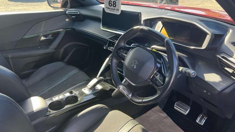 Blind spot monitoring, Bluetooth telephone facility, Connected 3D navigation, Driver attention warning, Exterior temperature indicator with ice warning, Front and rear parking sensors, Lane keep assist, Mirror screen with mirror link, apple carplay and android auto, Multi function trip computer, Peugeot connect SOS and assistance, PEUGEOT i-Cockpit with 10" capacitive colour touchscreen, PEUGEOT i-Cockpit with compact steering wheel, PEUGEOT i-Cockpit with configurable 3D headup instrument panel, Smart phone docking station, Smartphone charging plate, Speed limit recognition and recommendation, Visio Park 1 with 180 degree Colour reversing camera, 2 front USB socket with USB-C, 2 USB sockets in rear, DAB Radio (Digital Audio Broadcasting), Voice recognition for radio, navigation and telephony features, 2 X Rear number plate lights, Automatic front windscreen wipers, Black diamond roof, Black front wing trim with gloss black detail and GT badging, Body coloured exterior door handles, Dark tinted Rear side and tailgate windows, Diamond black mirror shells, Diamond black rear spoiler, Electric heated and power folding door mirrors, Frameless electrochrome interior rear view mirror, Front bumper - Silver lower trim, Full LED headlights with smartbeam assist, Gloss black finish on B pillar, Gloss black longitudinal roof rails, Gloss black rear cluster connecting strip, Gloss black roof bars, Gloss black window surround, GT model designation badging on tailgate, Headlights left on audible warning, LED daytime running lights with 3 claw headlight with distinctive tooth design, LED front fog lamps with remote cornering function, LED side indicator lights integrated into door mirrors, Model designation badges front and rear, One touch electric front/rear windows with pinch protection, Radiator grille - Dark chrome chequered and gloss black edge trim, Radiator grille - gloss black top edge trim, Rear full LED 3D peugeot signature claw effect lights with daylight function, Rear reversing lights, Rear windscreen wiper triggered automatically in reverse gear, Stainless steel door sill scuff plates, Tailgate with heated rear windscreen and wiper blade, Twin chromed exhaust pipes, Wheel arch extensions, 1/3 to 2/3 split folding rear seats, 12V socket, 8 Colour personalisable ambient lighting, Aluminium pedals, Automatic air conditioning with pollen and active carbon filter, Central front armrest with storage compartment, Driver and front passenger sport seats, Electric power steering with reach and rake adjustable steering column, Front and rear carpet mats in black with lime green stitch detail, Front LED interior light with 2 reading spotlights and rear interior light with timer, Front passenger seat manual adjustment - height, longitudinal and back rest angle, Heated front seats, High centre console, ISOFIX child seat mounting points on passenger seat, Lime green contrast stitching to front centre console, door panels and dashboard facia, Mistral full-grain perforated leather steering wheel with Lime Green stitch detail and satin chrome 'GT' emblem, Modular boot floor, Piano keys: Gloss black and chrome toggle switches to access main functions of the vehicle and touchscreen functions, Roof lining - Mistral black, Seatbelt unfastened on the move audible and visual alert for front and rear seats, Visibility pack - 2008, 2x 2nd row ISOFIX child seat mountings, ABS (Anti-lock Braking System) with EBD (Electronic Braking Distribution) and EBA (Emergency Braking Assistance), Acoustic vehicle alerting system, Active safety brake with night function/cyclists/pedestrians, Adaptive driver and front passenger airbags with passenger airbag deactivation function, Child locking functionality on rear doors, Driver/front passenger side airbags, Electric parking brake, ESP (Electronic Stability Program) + Hill Start Assist, Front and rear curtain airbags, Front and rear disc brakes, Front and rear three-point retractable seatbelts, with force limiters, Front optimised safety headrests and rear retractable headrests (x3), height adjustable, Tyre pressure sensor, Automatic door locking when moving off, Automatic hazard light activation upon heavy brake application, Deadlocks, Electronic code immobiliser, Thatcham Cat.1 alarm, Carbon effect Dashboard, front and rear door panel finish, 17" Salamanca diamond cut alloy wheels,