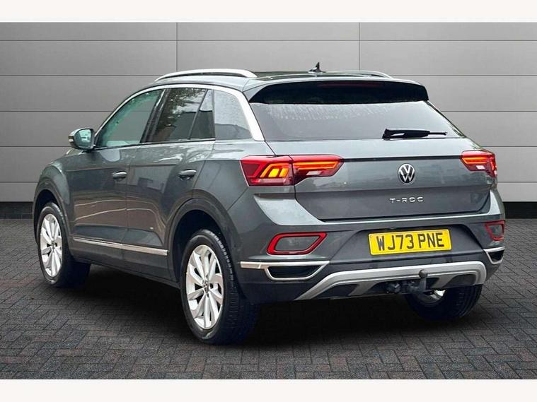 10.25" Digital cockpit pro, Bluetooth mobile phone interface, Driver alert system with fatigue detection, Driver tips and journey analysis, Emergency call service, Lane keeping system Lane Assist, Modified key software - reduce switch off time for key status change to Long no motion, Online services, Park assist including front and rear parking sensors, Service interval indicator, Tailgate/trunk lid release from outside, Think blue trainer driver tips and journey analysis, Warning sound and light for front seatbelts unfastened, Wireless app connect, Battery regeneration during braking, Start/stop function with battery regeneration, Diversity antenna for FM reception, Music playback - MP3, WMA and AAC files, Premium USB cable in choice of either Apple or Android smartphone compatibility, SD card slot, Simultaneous pairing of 2 compatible mobile devices, Title and cover art display, We Connect and We Connect Plus functionality, 3rd brake light, Auto dimming interior rear view mirror, Automatic hazard lights activation under emergency braking, Automatic headlight control with LED separate daytime running lights with coming/leaving home function, Body colour sports bumpers with silver metallic underbody fascia, Dynamic headlight range control with self adjusting whilst driving, Extended roof spoiler, Exterior mirrors aspherical on driver side, convex on front passenger side, External USB type C socket and charging sockets, Front windscreen wiper with intermittent wipe and 4 position delay, Heated rear window, LED rear combination lamps, LED rear number plate lights, LED tail lamp rear comination lamps, Light mode for poor weather, rain, fog or snow, Power windows with comfort operation and circuit breaker, Rain sensor, Rear exhaust tailpipe, Rear fog light on one side and reversing lights on both sides, Rear side wing doors, Rear wash/wipe with intermittent wipe setting, Remote electrically foldable door mirrors, puddle lights and reverse activated passenger's door mirror, 12V power socket in centre console, 3 rear head restraints, 3 seat bench in 2nd row, 4 load lashing points in luggage compartment, Air care climatronic air conditoning system with active combination filter and 2-zone temperature control, Chrome plated radiator grille inserts, air vent surrounds and light switch surrounds, Door and side trim panel with leatherette insert, Drawer under drivers seat, Front + rear carpet mats, Front centre armrest, Front comfort sports seats, Front cupholders x 2, Front footwell illumination, Instrument lighting, white adjustable panel illumination, Interior ambient lighting and surround lighting, Interior light delay, Isofix child seat preparation, Leather gearshift handle, LED interior light with switch off delay/dimmer and 2 front/rear LED reading lights, Load-through provision with cup holder when folded down ('Unsplit rear seat bench, split folding backrest, with centre armrest), Luggage compartment lighting, Non-folding front passenger seat backrest, Single front passenger seat, Storage compartment in left and right luggage area, Storage compartment in rear doors, Storage compartments in driver and front passenger doors, Sunvisors with illuminated vanity mirrors, Variable boot floor, height adjustable and removable, Driver assistance pack without proactive passenger protection - T-Roc, 3 point height adj front seatbelts + pretensioners, 3 point seatbelts in outer rear with ECE label, ABS, Child locks on rear doors, Driver and front passenger airbag with front passenger airbag deactivation, Driver and front passenger safety-optimised head restraints, Drivers seatbelt reminder, Electronic parking brake, Electronic Stability Control (ESC) inc EDL (Electronic Differential Lock) and ASR (Traction Control), Front and rear passengers curtain airbag system including front side airbags, Front assist with city emergency braking and pedestrian monitoring, Front seat side impact airbags, Predictive pedestrian protection, Rear disc brakes, Single tone horn, Tyre pressure loss indicator, Volkswagen roadside assistance, Anti-theft alarm system with interior monitoring, backup horn, and towing protection, Remote central locking with SAFELOCK, radio remote control with 2 remote control folding keys, Trims for alloy wheels,