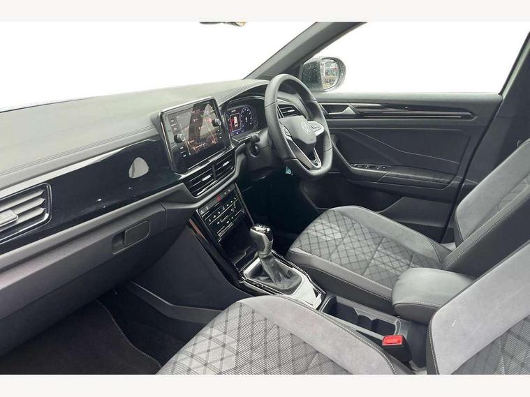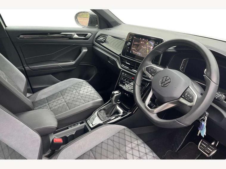 10.25" Digital cockpit pro, Advanced driver attention and drowsiness monitor, Emergency call service, Lane keeping system Lane Assist, Mobile phone interface, Modified key software - reduce switch off time for key status change to Long no motion, Online services, Park assist including front and rear parking sensors, Power assisted speed sensitive steering, Service interval indicator, Tailgate/trunk lid release from outside, Think blue trainer driver tips and journey analysis, Warning sound and light for front seatbelts unfastened, Wireless app connect, Battery regeneration during braking, Rear shock absorption chassis with increased ride height, Start/stop function with battery regeneration, DAB Digital radio, Diversity antenna for FM reception, Front and rear 6 speakers, Music playback - MP3, WMA and AAC files, Premium USB cable in choice of either Apple or Android smartphone compatibility, SD card slot, Simultaneous pairing of 2 compatible mobile devices, Title and cover art display, We Connect and We Connect Plus functionality, Auto dimming interior rear view mirror, Automatic hazard lights activation under emergency braking, Automatic headlight control with LED separate daytime running lights with coming/leaving home function, Dynamic cornering light, Electrically adjustable and heated door mirrors, Extended roof spoiler, Exterior mirrors aspherical on driver side, convex on front passenger side, External USB type C socket and charging sockets, Front windscreen wiper with intermittent wipe and 4 position delay, Heated rear window, Illuminated front grille, IQ LED matrix headlights, LED 3rd brake light, LED rear number plate lights, LED rear tail lights with dynamic turn signal, Light mode for poor weather, rain, fog or snow, Power windows with comfort operation and circuit breaker, R-Line design body coloured bumpers, Rain sensor, Rear exhaust tailpipe, Rear fog light on one side and reversing lights on both sides, Rear side wing doors, Rear wash/wipe with intermittent wipe setting, Remote electrically foldable door mirrors, puddle lights and reverse activated passenger's door mirror, 12V power socket in centre console, 3 rear head restraints, 3 seat bench in 2nd row, 4 load lashing points in luggage compartment, Air care climatronic air conditoning system with active combination filter and 2-zone temperature control, Artvelours cloth upholstery, Black roof lining, Chrome plated radiator grille inserts, air vent surrounds and light switch surrounds, Door and side trim panel with leatherette insert, Drawer under drivers seat, Driver seat height adjust, Driver's seat lumbar support, Front + rear carpet mats, Front centre armrest, Front comfort sports seats, Front cupholders x 2, Front footwell illumination, Front reading light, Front scuff plates with R Line logo, Front seat back storage pockets, Glove compartment door with light, Instrument lighting, white adjustable panel illumination, Interior ambient lighting and surround lighting, Interior light delay, Isofix child seat preparation, Leather gearshift handle, Leather wrapped multifunction steering wheel with paddle shift, Load-through provision with cup holder when folded down ('Unsplit rear seat bench, split folding backrest, with centre armrest), Luggage compartment lighting, Non-folding front passenger seat backrest, Passenger seat height adjuster, Passenger seat lumbar support, Single front passenger seat, Stainless steel pedals, Storage compartment in left and right luggage area, Storage compartment in rear doors, Storage compartments in driver and front passenger doors, Sunvisors with illuminated vanity mirrors, Variable boot floor, height adjustable and removable, Winter pack without heated windscreen washer jets - T-Roc, 3 point height adj front seatbelts + pretensioners, 3 point seatbelts in outer rear with ECE label, ABS, Child locks on rear doors, City emergency braking and pedestrian monitoring, Driver and front passenger airbag with front passenger airbag deactivation, Driver and front passenger safety-optimised head restraints, Drivers seatbelt reminder, Electronic parking brake, Electronic Stability Control (ESC) inc EDL (Electronic Differential Lock) and ASR (Traction Control), Front and rear passengers curtain airbag system including front side airbags, Front disc brakes, Hill start assist, Predictive pedestrian protection, Rear disc brakes, Two tone horn, Tyre pressure loss indicator, Volkswagen roadside assistance, Tool kit, Trims for alloy wheels, Tyre mobility kit including compressor and sealing foam,