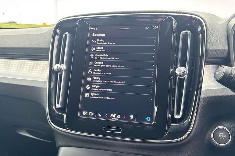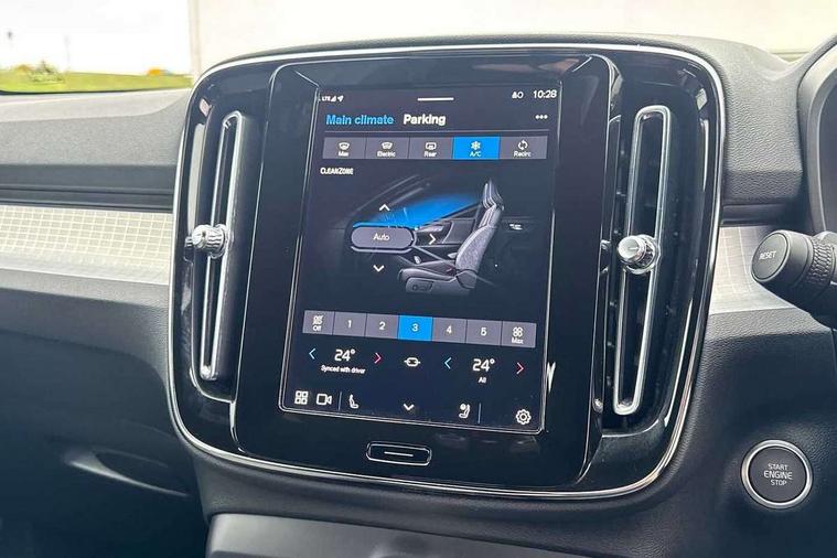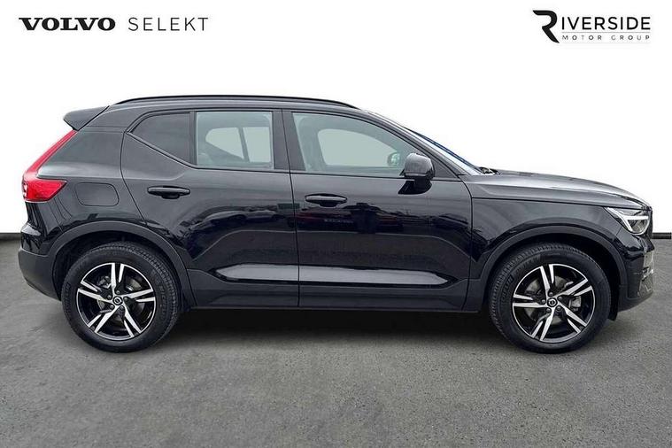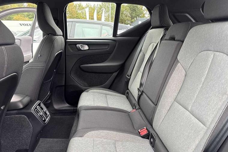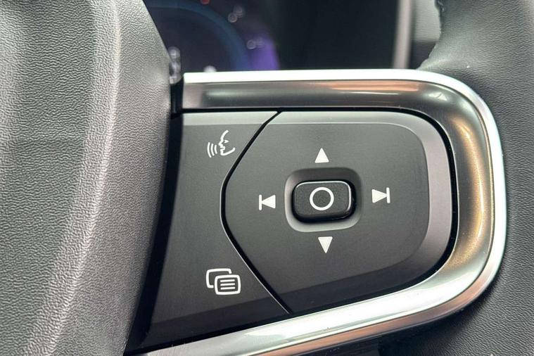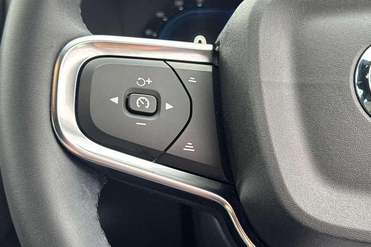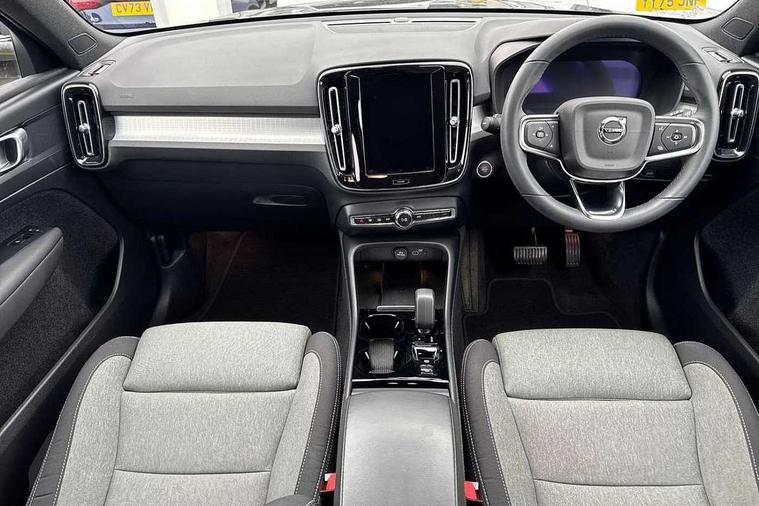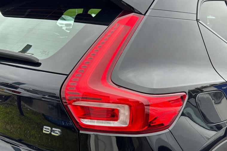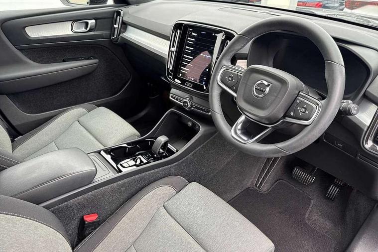 12.3" Progressive Driver Display, 9" centre console portrait touch screen, Adjustable steering wheel force, Bluetooth hands free telephone kit, Cruise control, Driver awareness - blind spot information system with steer assist, cross traffic alert with autobrake, rear collision warning and migitation, E-call, Front park assist, Google automatic services - Nav with google maps, apple carplay/android auto, voice recognition with google assistant, Hands free power tailgate, Lane keep assist with driver alert control, Oncoming Lane Mitigation, Rear park assist, Rear park assist camera, Speed limiter, Speed sensitive steering, Wireless/Inductive Mobile Phone Charging, Dynamic chassis, DAB Digital radio, High performance sound, 8 speakers/250W, front USB and 2 rear type C USB, Steering wheel mounted remote controls, Adaptive brake lights with high level LED brake lights, Auto dimming feature for exterior door mirrors, Auto dimming interior mirror, Automatic headlamp levelling, Automatic LED Headlights + Active high beam incorporating daytime running lights, Front aluminium tread plates, Front and rear electric windows, High gloss black front and rear skid plate, High gloss black mesh front grille with high gloss black surround, High gloss black window trim, Home safe and approach lighting, Integrated roof rails in high gloss black, LED front fog lights, Puddle lights, Rain sensor with automatic windscreen wiper activation, Rear side wing doors, Rear wiper, Roof antenna, Roof spoiler, Visible VIN plate, 12V socket in front tunnel console and luggage compartment, 2-Zone electronic climate control with CleanZone air quality system and pollen filter, 3 seat bench in 2nd row, 3 Spoke tailored steering wheel with chrome trim, 60/40 versatile split folding rear seat, A-pillar parking ticket holder, Ambient front door and instrumental panel lighting, Centre console cupholders and storage, Flexible load floor and grocery bag holder, Floor mats, Front door pocket and front cupholder illumination, Front footwell illumination, Front headrests, Front reading light and theatre lighting, Front seat cushion extensions, Front tunnel pocket, Glovebox bag hook, Heated front seats, Height adjustable passenger seat, Height/reach adjustable steering column, High gloss centre tunnel deco, Illuminated glovebox, Illuminated luggage compartment, Illuminated tailgate, Illuminated vanity mirrors, Integrated waste bin, Isofix attachments on outer rear seats, Load protection net, Multi directional lumbar support, Power driver seat with memory + exterior mirrors memory, Rear armrest / integral cup holders / storage tray, Rear headrests, Rear reading and courtesy lights, Single front passenger seat, Underfloor cargo storage, Climate pack without heated front seats - XC40, 3x3 point rear seatbelts, City safety with steering support with Pedestrian + cyclist + front collision warning with full auto brake and rear auto brake, Drivers knee airbag, Dual stage driver/passenger airbags, Electronic parking brake with auto hold, First aid kit, Front and outer rear seatbelt reminder and pretensioners, Front seats SIPS airbags, Hill descent control, Hill start assist, Inflatable curtain, Passenger airbag cut-off device, Power child locks on rear doors, Road sign information display, Run off Road Mitigation, Run off Road Protection, SIPS (Side Impact Protection System), Slippery road and hazard light alert, Stability and Traction Control with Spin control, Engine Drag Control and Corner Traction Control, Tyre pressure monitoring system, Vehicle deceleration control with Anti-lock Brake System, Electronic Brake Distribution and Emergency Brake Assist, Warning triangle, WHIPS whiplash protection system - front, Anti-theft alarm including immobiliser/volume sensor + level sensor, Key integrated remote control central locking + fuel flap with deadlocking system and auto open/close power windows, Keyless drive includes keyless entry and keyless start, Locking wheel nuts,