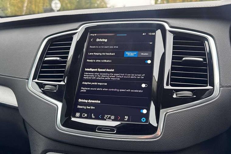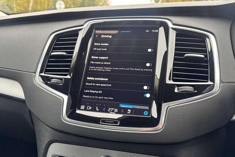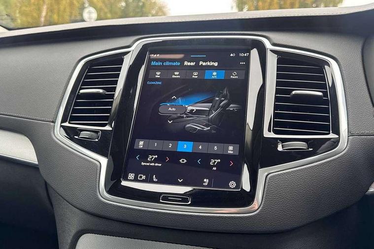 12.3" Progressive Driver Display, 360 degree surround view parking camera with side proximity sensors, 9" centre console portrait touch screen, Adjustable steering wheel force, Bluetooth hands free telephone connection, Driver alert control with lane keeping aid, Driver assistance (pilot assist and adaptive cruise control), Driver awareness - Blind spot information system with steer assist, cross traffic alert with autobrake and rear collision warning and mitigation, Emergency call service, Front and rear park assist, Google Automotive Services - Navigation with Voice recoginition and google assistant, Handsfree power tailgate opening and closing, Oncoming Lane Mitigation, Power operated tailgate, Service interval indicator, Speed limiter, Speed sensitive steering, Trip computer, Volvo on call, Wireless Mobile Phone Charger, 8 speed automatic transmission with start/stop + manual change functions, Touring chassis, DAB Radio (Digital Audio Broadcasting), Premium Sound by Harman Kardon, dirac unison, dolby pro logic II surround sound, 13 speakers/600W output and fresh air subwoofer, Steering wheel remote infotainment controls, Active bending headlights with adaptive shadow technology, Adaptive brake lights with high level LED brake lights, Auto dimming interior + exterior mirrors, Auto folding and heated power door mirrors, Automatic headlight levelling system, Automatic LED Headlights + Active high beam incorporating daytime running lights, Body colour bumpers, Front and rear power windows, Headlight cleaning system, Heated front windscreen, High gloss black door mirrors and window surround, High gloss black front and rear bumper deco, High gloss black mesh front grille with surround, Home safe and approach lighting, Integrated roof rails in high gloss black, LED front fog lights with cornering light function, Power glass tilt and slide panoramic sunroof with sun curtain, Puddle lights, Rain sensor with automatic windscreen wiper activation, Rear side wing doors, Rear wash/wipe with intermittent wipe setting, Roof antenna, Roof spoiler, Visible VIN plate, 12V socket front tunnel console, rear passenger compartment and cargo area, 2 seat bench in 3rd row, 2nd Row centre armrest with and cupholders, 3 seat bench in 2nd row, 4 zone electronic climate control with Clean zone air quality system + pollen filter, A-pillar parking ticket holder, Advanced interior air cleaner PM2.5, Air conditioning for 3rd row of seats, Ambient door and instrument panel lighting, B Pillar ventilation, Bright metal luggage threshold, Centre console cupholders and storage, Floor mats, Front and rear door pocket and front cupholder illumination, Front and rear reading lights, Theatre lighting and centre armrest storage illumination, Front footwell and side step illumination, Front headrests, Front seat cushion extensions, Heated front seats, Heated rear seats, Heated steering wheel, Height/reach adjustable steering column, Illuminated front and rear tread plates, Illuminated luggage compartment, Illuminated tailgate, Illuminated vanity mirrors + ticket holder, Illumination lockable glovebox compartment, Integrated sun curtains in rear doors, Isofix outer rear child seat preparation in 2nd row, Load protection net, Luggage compartment divider with grocery bag holder, Outboard armrest with cupholder and storage for third row passengers, Power driver seat with multi directional lumbar support and memory for seat and exterior mirrors, Power folding 2nd row headrests, Power passenger seat with multi directional lumbar support and memory, Rear footwell and side step illumination, Rear headrests, Semi automatic load cover, Single front passenger seat, Underfloor luggage compartment storage, 7 three point seatbelts, City safety with steering support includes pedestrian, cyclist and large animal detection and front collision warning with full auto brake, Drivers knee airbag, Dual stage driver/passenger airbags, First aid kit, Front seats SIPS airbags, Hill descent control - off drive mode, Hill start assist, IC (Inflatable Curtains) - Full Length, Passenger airbag cut-off switch, Power child locks on rear doors, Power parking brake with auto hold function, Road sign information display, Run off Road Mitigation, Run off Road Protection, Seatbelt reminder and pretensioners for all seats, SIPS (Side Impact Protection System), Slippery road and hazard light alert, Stability and Traction Control with Spin control, Engine Drag Control and Corner Traction Control, Tyre pressure monitoring system, Vehicle deceleration control with Anti-lock Brake System, Electronic Brake Distribution and Emergency Brake Assist, Warning triangle, WHIPS whiplash protection system - front, Anti-theft alarm including immobiliser/volume sensor + level sensor, Care key with user defined top speed, Key integrated remote control central locking + fuel flap with deadlocking system and auto open/close power windows, Keyless drive includes keyless entry and keyless start, Locking wheel nuts, Private locking for glovebox and tailgate, Tailored Instrument Panel and Door Tops with Contrast Stitching, Tempa spare wheel and jack,