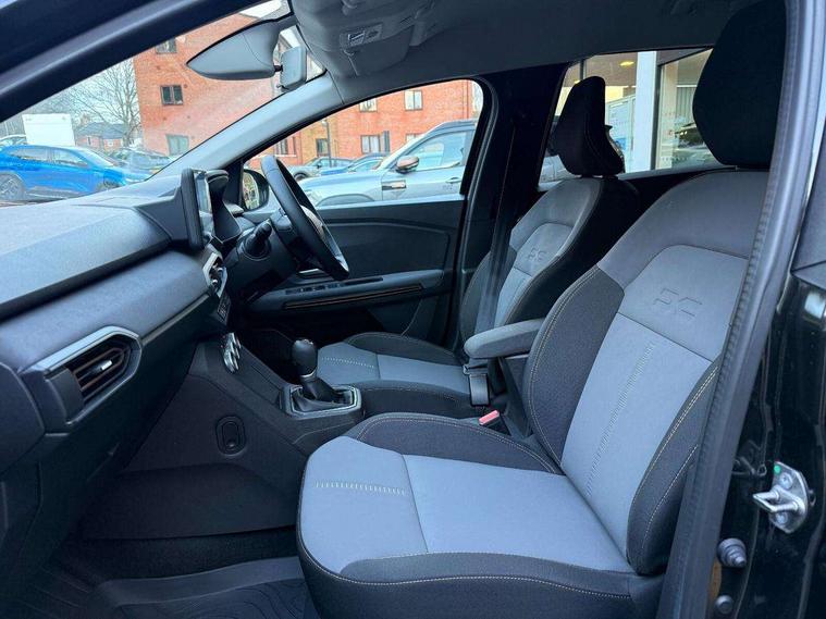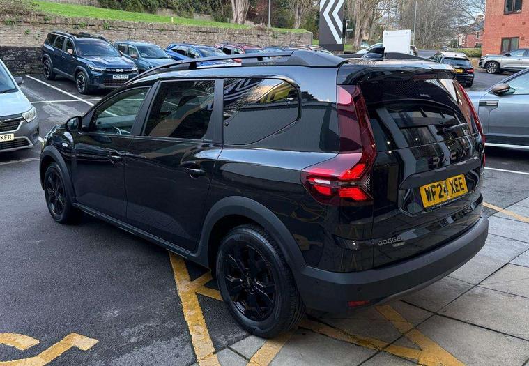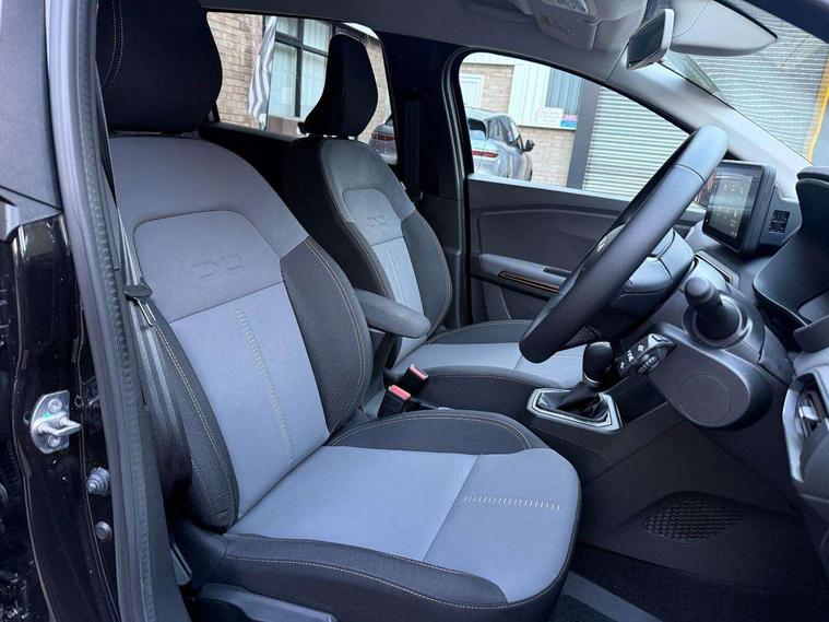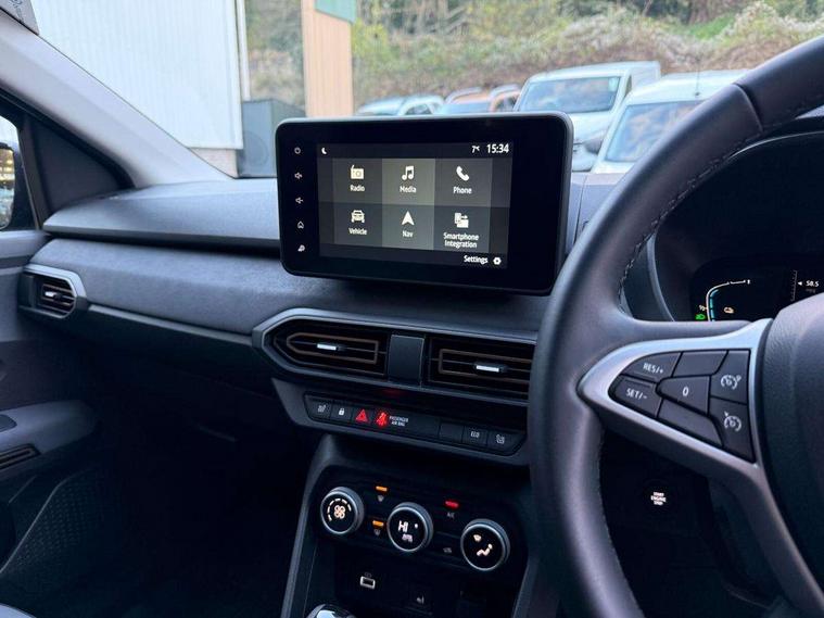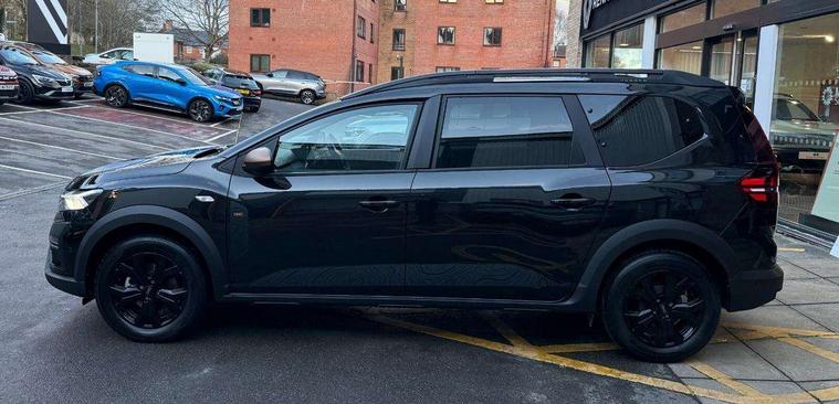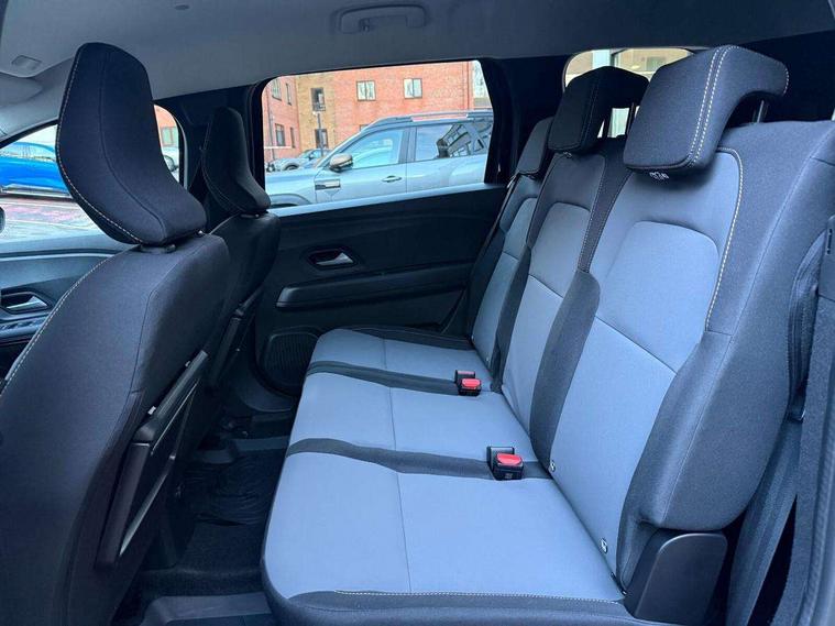 3.5" TFT instrument panel with on-board computer, 7" Color dedicated cluster, Blind spot warning, Check control system, Cruise control and speed limiter, e-Call (emergency call), Eco mode, Electric power assisted steering, Extended grip switch, Exterior temperature display, Front parking sensors, One touch indicators, Rear parking sensors, Rev counter, Reversing camera, Service interval indicator, Stop/start system, Voice control for telephone and radio, Exhaust particle filter, 8" MediaNav with DAB Radio, WIFI Smartphone replication, Bluetooth, 6 speakers with Apple Carplay/Android Auto and Extra map, USB connection for data transfer and charging, USB socket, 3 speed windscreen wipers, Auto lighting, Automatic wipers, Black longitudinal roof bars, Body coloured door handles, Body coloured front and rear bumpers, Chrome radiator grille, Copper brown "Stepway" marking on roof bar, Copper brown deco part on fog lamp area, Copper brown door mirrors, Dark glass, Door sills in topographic pattern, Drivers one touch electric windows, Electric headlight adjustment, Electrically adjustable door mirrors, Front fog lights, Front LED Indicator lights, Headlights with LED low beam illumination, Heated door mirrors, Heated rear window, High level third rear brake light, Initial anti-corrosion treatment, Lateral sticker with topographic pattern, LED automatic daytime running lights, Modular roof bars, Rear electric windows, Rear side wing doors, Rear wash/wipe, Shiny black shark antenna, Snorkel sticker with topographic pattern, Towbar preparation, Transversal emblem and white highlights on front air vent grid, Y-shaped LED lighting signature, 1/3 to 2/3 split folding 2nd row seats, 12v socket in front, 12V socket in rear of vehicle, 2 independently folding and removable 3rd row seats, 2x Rear coat hooks, 3 height adjustable rear headrests, 3 load hooks, 3 seat bench in 2nd row, 4 lashing rings, Automatic air conditioning, Boot light, Copper Brown animation on air vents, Copper brown doors deco parts, Driver and passenger vanity mirror with cover, Elastic straps, Fabric upholstery, Fixed smartphone holder on dashboard, Front and rear rubber mats with topographic pattern, Glovebox, Heated front seats, Height adjustable drivers seat with armrest, Height adjustable front headrests, Height and depth manually adjustable steering wheel, High central armrest with console storage, Isofix points for child seats in both outer rear seats, Lidded storage bin within the centre console, Micro-cloud grey fabric on dashboard, Multifunction steering wheel, Rear ceiling light, Rear door pockets, Satin chrome air vents, Satin chrome interior door handles, Single front passenger seat, Sliding tray tables, Soft feel steering wheel, Steering wheel controls, Timed interior light, Under floor storage in luggage area, 3x3 point rear seatbelts, Anti-lock braking system (ABS), Automatic Emergency Braking System (AEBS), Child locks on rear doors, Door open visual and audible warning, Driver and front passenger airbags, Driver and passenger seatbelt not fastened warning, Driver and passenger side airbags, Electronic parking brake, Electronic Stability Control (ESC), Electronic Stability Programme (ESP), Emergency Brake Assist (EBA), Front passenger airbag deactivation, Front seatbelt pretensioners, Height adjustable front seatbelts, Hill Start Assist (HSA), Side airbags (thorax and curtains - front/rear), Tyre pressure monitor, Alarm, Automatic central locking, Engine immobiliser, Keyless entry, Remote central locking, Decopart on instrument panel and door with textile, 16" Black alloy wheels with copper brown dacia logo, Tyre inflation kit,