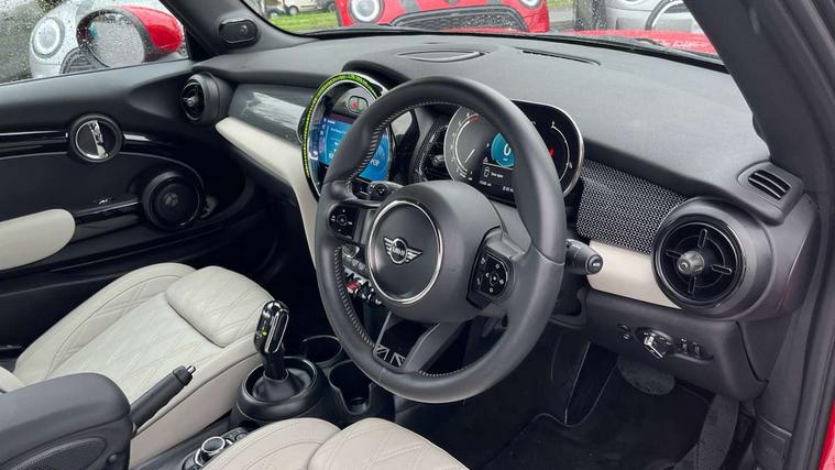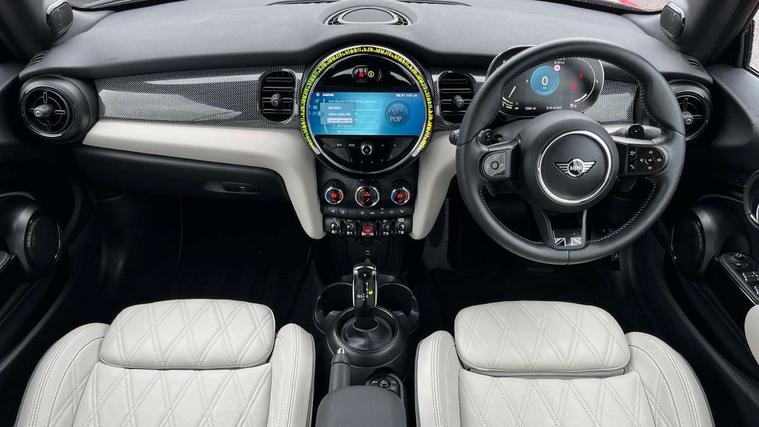 Automatic start/stop function with brake energy recuperation, Compatible mobile phone bluetooth with audio streaming, Electro-mechanical speed dependant steering assistance, Instrument cluster, MINI Driving Modes - centre toggle switch to control driving setting (sport, mid and green), Mini E-call, MINI TeleServices, On board computer, Rear park distance control, Service interval indicator, Double Vanos system, Fully variable valve control, High precision injection, Performance Control, Steptronic sport transmission with double clutch and steering wheel paddles, FM tuner and DAB digital radio, Automatic headlight activation switch, Bonnet scoop, Chrome plated fuel cap, Dynamic brake lights, Electric windows, Fully electric black softtop with integrated sunroof functionality, Heated rear window, Heated windscreen washer jets, Metal door sill strips with Cooper S imprint, Model logo Cooper S on right of tailgate, Radiator grille bars, tailgate handle, lower front grille grating, rear central fog light in chrome, Rain sensor window wipers, Rear fog lights, Rear LED lights with union jack design, Side scuttle panel with integrated indicator, Sun/heat protection glass, Two central exhaust tailpipes with chrome finisher, White indicator lenses, 12V Accessory socket in centre console, 4 lashing eyes in luggage compartment, 50/50 split folding rear seats, Air vents, gear lever base, speakers in doors, door handles in chrome, Chrome interior highlights, Cupholders, Easy Load boot handles, Front and rear head restraints, Front and rear isofix with front passenger airbag deactivation, Front seatback storage pockets, Glove compartment, Height and length steering column adjustment, Interior lighting with 12 basic colours selectable via toggle switch in roof, Leather gearshift lever and handbrake gaiters, LED reading lights, vanity mirror lights, front foot well light and spotlight on front seats, Mechanical seat adjustment, driver seat height adjust, forward/back and front seats backrest, Mini logo projection on floor from drivers exterior mirror, MINI Yours fine walk nappa leather steering wheel with contrast stitching in silver and MINI Yours badge, Multifunction steering wheel, Storage compartments in doors, Sunvisors with vanity mirrors, Convertible pack with comfort access - Mini Convertible, 3 point seatbelts on all four seats, 6 Airbags - front, side and seat belt tensioners, Active rollover protection, Anti-lock braking system (ABS), DSC - Dynamic Stability Control, Front and rear disc brakes, Hill start assist, Two tone horn, Tyre pressure monitoring system, Alarm system with tilt sensor, monitoring doors, bonnet interior and tailgate, Electronic vehicle immobiliser, Keyless Go, Chrome line interior, Tool kit,