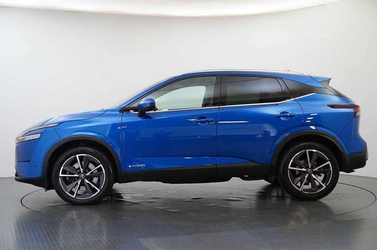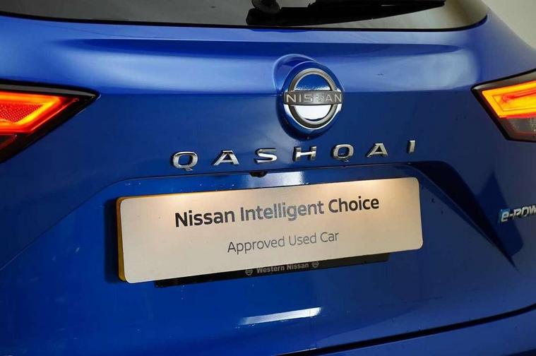 Advanced windscreen head up display, Android auto/Apple CarPlay (Wired), Blind spot warning, Drive modes (sport, normal, eco), Electric speed sensitive power steering, Emergency and breakdown call, Front and rear parking sensors, Full Digital 12.3" TFT Digital Combimeter, Google maps services - search, weather, 3D maps and Google street view, Hands free power tailgate, Idle stop/start system, Intelligent around view monitor, Intelligent Cruise control (ICC), Intelligent driver alert system, Intelligent forward collision warning, Intelligent lane intervention, Lane departure prevention, Lane departure warning system, Lane keep assist, Moving object detection, Nissan connect 12.3 inch touchscreen infotainment system, Nissan connect navigation, ProPILOT with Navi-Link, Push button starter, Rear cross traffic alert, Rear view camera, Remote control services - door locks, lights, horn and car locator, Telematics - notifications and connectivity services, TomTom live traffic services, Traffic sign recognition with legal speed adjustment, Trip computer, Virtual personal assistant and firmware over the air capability, Wireless apple carplay, Wireless charging pad, 6 speakers, AM/FM audio system with DAB, Bluetooth audio streaming, Front USB connections (Type-A and Type-C), Rear USB charging only ports (Type-A and Type-C), Auto dimming rear view mirror, Auto rear wiper when reversing, Automatic hazard signal with emergency stop signal, Body colour mirror caps, Body coloured door handles, Bodyside mouldings, Chrome side window finisher, Door handle with button, e-POWER badging, Electric auto folding door mirrors, Electrically adjustable and heated door mirrors with LED turn indicator, Follow me home headlights, Front and rear LED turning signals, Headlights auto levelling system, Intelligent auto headlights, LED daytime running lights, LED headlights with adaptive driving beam, LED rear lights, One touch front and rear electric windows with remote opening and closing, Partially body coloured bumpers, Privacy glass, Rear bumper with graphite insert, Rear reversing light (bulb lighting), Rear roof spoiler, Rear side wing doors, Rear styling plate, Shark fin antenna, Splash free rain sensing wipers, Super UV and infrared cut glass, Thermaclear heated windscreen, Three blink turn signal, 12v power socket in dashboard and luggage, 2x Rear coat hooks, 3 bench rear seats in 2nd row, 3 rear headrests, 4 folding assist grip, 6 Luggage hooks - 4 on floor, 2 on side, 60/40 split folding rear seat bench, Ambient lighting around centre console, Ambient lighting in front doors, Centre console storage tray, Chrome interior door handles, Cloth/syntech leather monoform upholstery, Dark black/blueish PVC wrapping, Dark headlining, Driver and front passenger sunvisors with illuminated vanity mirrors, Driver seat back pocket, Dual zone automatic climate control with pollen filter, e-POWER shifter, Electrically adjustable driver seat, Electrically adjustable lumbar support for driver, Front and rear door storage, Front centre console and armrest, Front cupholders x 2, Front door with bottle holders, Glovebox with light, Hard trunk cover, Heated front seats, Heated steering wheel, Height adjustable driver's seat, Height adjustable front headrests, Height adjustable passenger seat, Leather steering wheel, Luggage board system, Luggage space lighting, Manual lumbar support on passenger seat, Manually adjustable passenger (slide recline + lifter), Multifunction steering wheel, Passenger seat back pocket, Rear armrest with 2 cupholders, Rear door bottle holders, Single front passenger seat, Soft PVC kneepad, Steering wheel switches, Tilt/telescopic adjustable steering wheel, Two rear isofix child seat anchorage points with top tether, Welcome light and doors with console tray ambient lighting, Glass roof pack with roof rails - Qashqai, 3x3 point rear seatbelt pretensioners + load limiters, ABS with EBD and brake assist, Active brake limited slip, Auto hold function, Child locks on rear doors, Curtain and front side, far side airbags, Driver and passenger airbags, Driver, passenger and 2nd row rear seat belt reminder, Electronic parking brake, Front seatbelt pretensioners + load limiters, Height adjustable front seatbelts, Hill start assist, Intelligent blind spot intervention, Intelligent front emergency braking with pedestrian, cyclist recognition and junction assist, Intelligent rear automatic braking, Tyre pressure monitoring system, Vehicle dynamic control, Capless fuel filler, Engine immobiliser, Intelligent Key, Remote central door locking with deadlocking, Thatcham Cat.1 alarm, Interior instrumental panel C finisher, 19" Diamond cut alloy wheels, Tyre puncture repair kit,