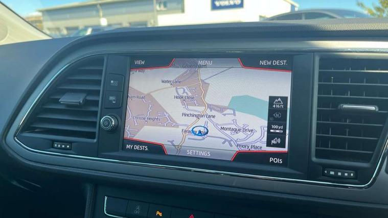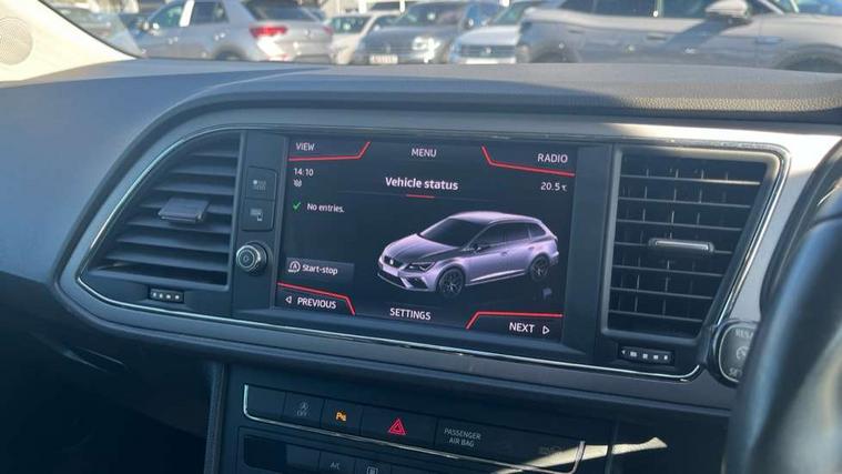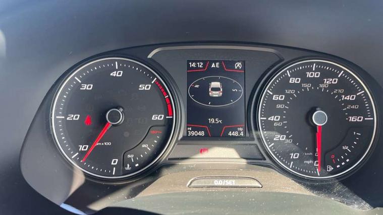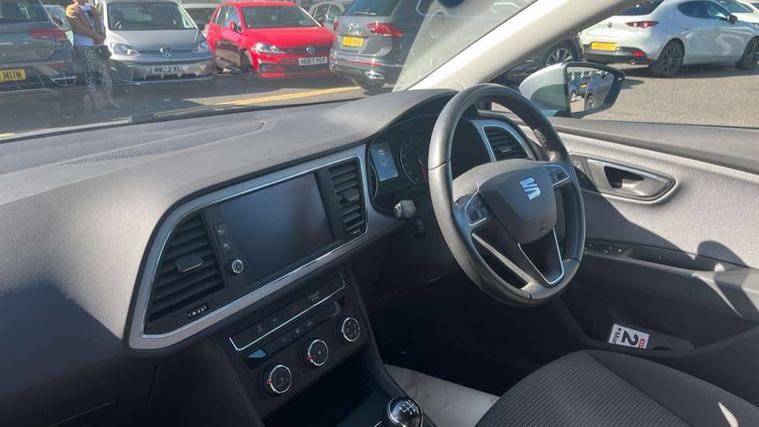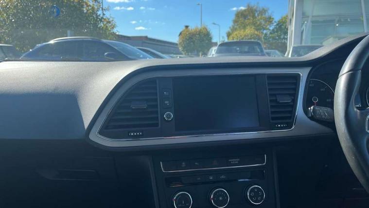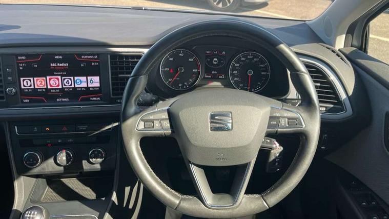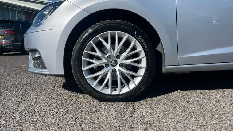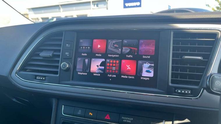 'Lights On' Reminder warning buzzer, 3D map display, 8" touch screen, Bluetooth Handsfree Phone Connection, Electro-mechanical power steering, Front and rear parking sensors, Front assist with pedestrian protection, Full Link Smartphone Integration with Mirror Link, Apple Car Play, Google Android Auto, Low fuel warning light, Navigation system (incl. media system plus), Outside temperature gauge, RPM counter, SEAT logo boot release, Service interval indicator, Trip computer, Voice recognition, Comfort suspension, XDS electronic differential lock, 2x SD card slot, 4 USB, 8 Speakers, Auxiliary input socket, Bluetooth audio streaming, CD player, DAB Digital radio, High resolution colour driver display, Media system plus (incl. media system colour), SEAT USB media cable, Steering wheel mounted audio/phone controls, Black radiator grille, Body colour door handles, Body coloured bumpers, Body coloured exterior mirrors with integrated LED indicators, Chrome roof rails, Chrome-plated radiator grille surround, Dark tinted rear windows, Electric front/rear windows, Electrically adjustable door mirrors, Front fog lights with cornering function, Halogen headlights with small LED daytime running lights, Heated door mirrors, Hidden exhaust pipe, High gloss black finish B and C pillars, Rear wash/wipe, 12v power point in centre console, 60/40 split folding rear seat with armrest, Active front headrests and 3 rear headrests, Additional heating and ventilation outlet in rear of centre console, Air conditioning, Boot storage net, Cargo rings in boot, Double boot floor, Driver and passenger seat height adjust, Driver seat lumbar adjustment, Dust/pollen filter, Front adjustable head restraints, Front armrest with storage box, Front comfort seats in Tresil cloth, Front cupholders x 2, Front seatback storage pockets, Front/rear floor mats, Gear shift indicator, Height/reach adjust steering wheel, High centre console with integrated box & cup holder, rear air outlet, with armrest in front seats, Instrument lighting with brightness control, Leather steering wheel and gear knob, Luggage compartment cover, Luggage tie-down hooks, Rear top tether child seat ISOFIX attachment, Storage box under drivers seat, 3 point seatbelts on all rear seats, 7 airbags - 2 front, 2 front side, 2 curtain, 1 knee, ABS + TCS, Child proof door locks, Electric handbrake, Electronic parking brake with auto hold, ESC with tyre pressure warning indicator, ESP+EBA, Front seatbelt pretensioners, Front seatbelt reminder, Hill hold control, Multi-Collision braking, Passenger airbag deactivation system, 2 folding remote keys with window open/close and boot opening function, Central locking fuel filler cap, Engine immobiliser, Locking wheel bolts, Remote central locking + deadlocks, Volumetric alarm with back up horn, Chrome interior detailing, 17" Dynamic alloy wheels 30/3,