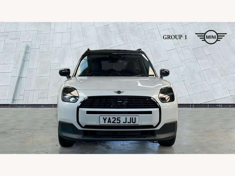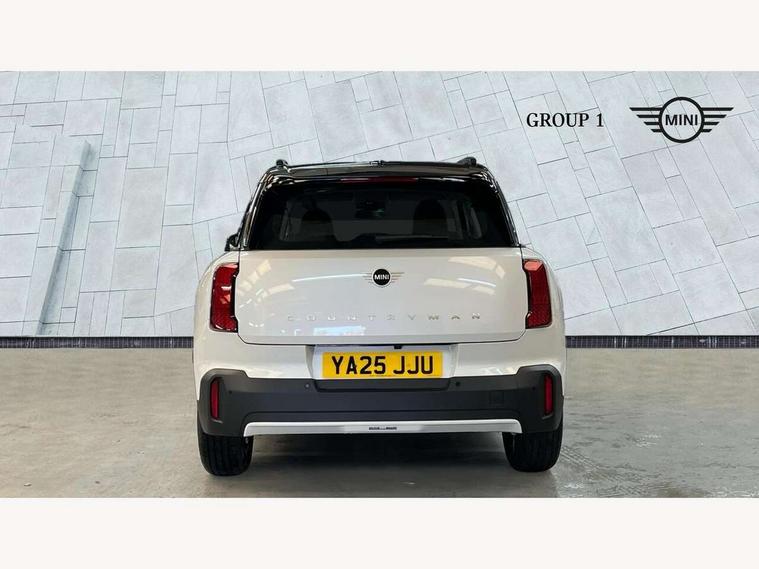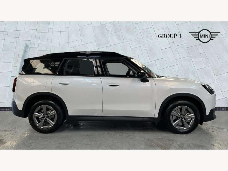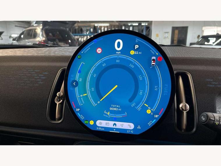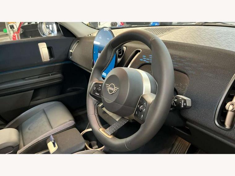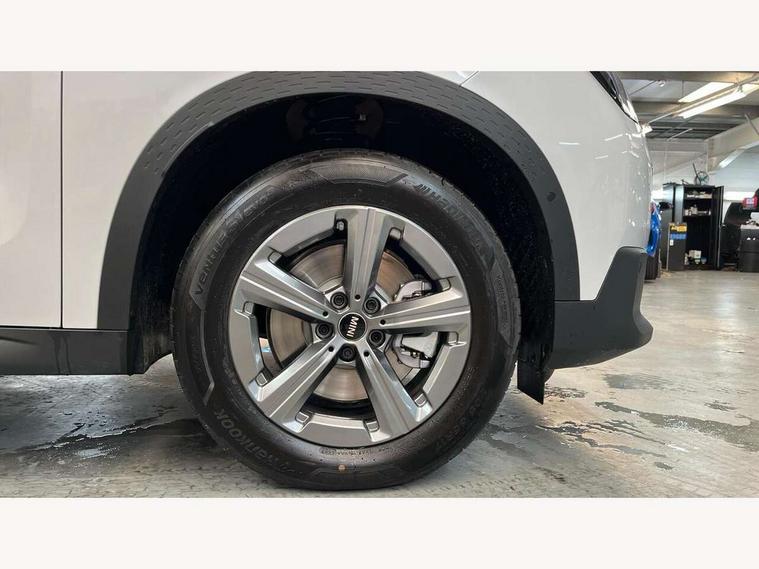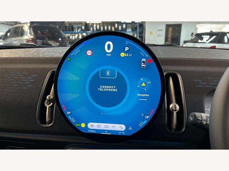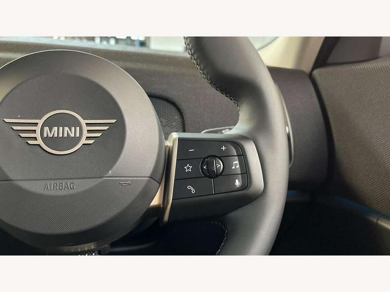 Bluetooth connection, Circular OLED Screen, Compatible mobile phone bluetooth with audio streaming, Cruise Control (DCC), Digital dashboard display, Driving assistant, E-call, Electro-mechanical speed dependant steering assistance, MINI Experience Modes, Mini navigation system, MINI TeleServices, Parking assistant in camera and ultrasound based assistance system, rear view camera, parking aid and distance control, Auto transmission with Paddles, Larger capacity fuel tank, 6 speakers, DAB Digital radio, Personal eSim, Auto tailgate, Electric adjustable heated door mirrors, Front and rear electric windows, Heated rear window, LED daytime running lights, LED Headlights, LED rear lights, LED third brake light, Rain sensor with auto headlights, Rear side wing doors, Rear window wiper, Roof rails, 3 seat bench in 2nd row, 60/40 split rear bench seat, Auto air conditioning, Floor mats, Front armrest, Front headrests, Heated steering wheel, Height and length steering column adjustment, Light headliner, Rear headrests, Single front passenger seat, Sport Vescin Steering Wheel, Sunvisors with vanity mirrors, Vescin/Cloth upholstery, 3x3 point rear seat belts, 6 Airbags - front, side, head and seat belt tensioners, ABS, DSC - Dynamic Stability Control, Electronic handbrake, Electronic Stability Programme (ESP), Front ISOFIX (iSize), Hill hold assist, Hill start assist, Manual rear child locks, Traction control, Tyre pressure monitoring system, Warning triangle, Alarm system with tilt sensor, monitoring doors, bonnet interior and tailgate, Auto drive away locking, Deadlocking function, Electronic vehicle immobiliser, Locking wheel bolts, Remote control locking, Start/stop toggle with keyless go, Black/Blue dashboard knit, MINI Mobility Kit,