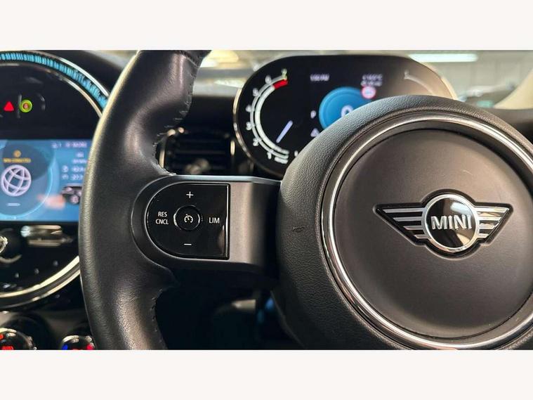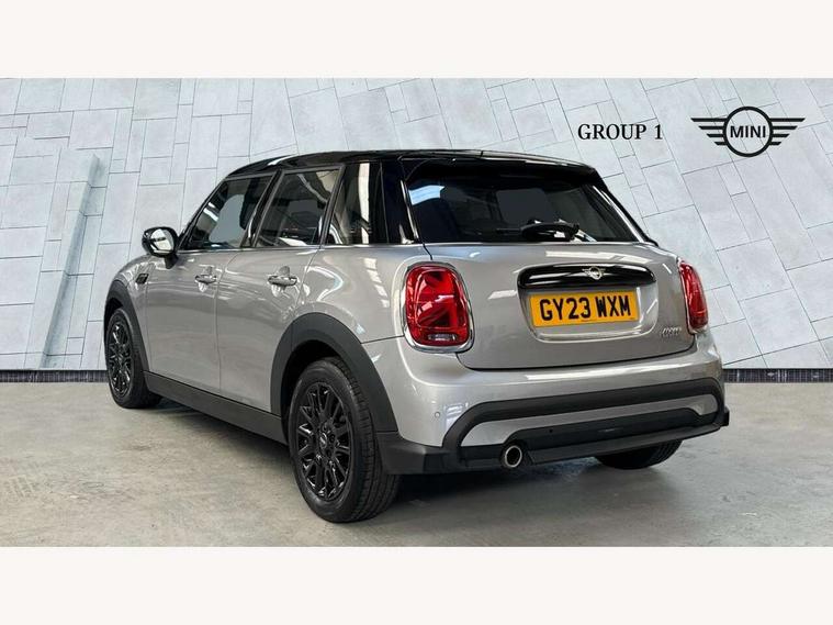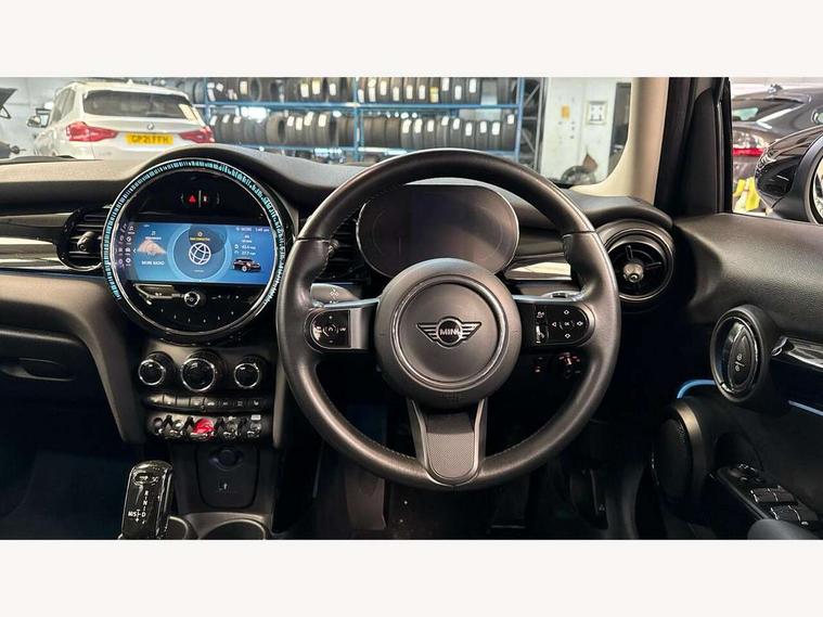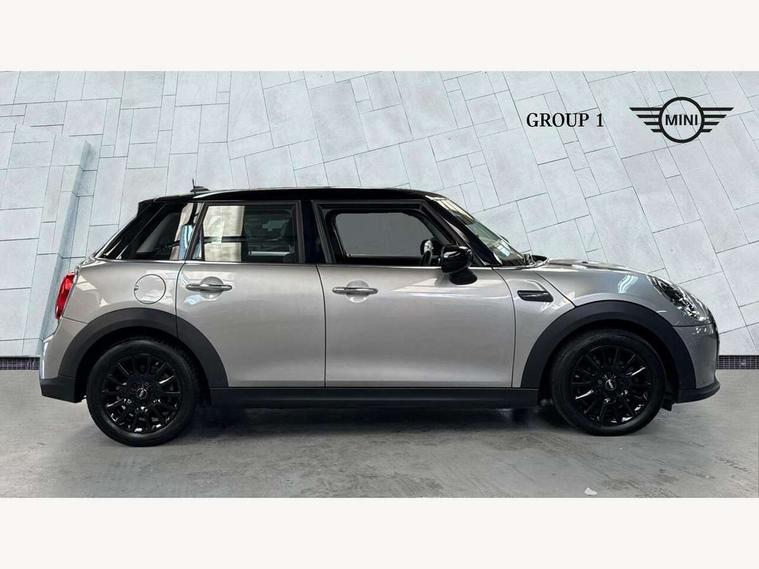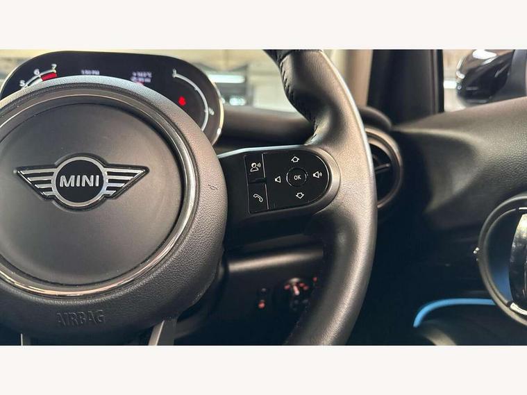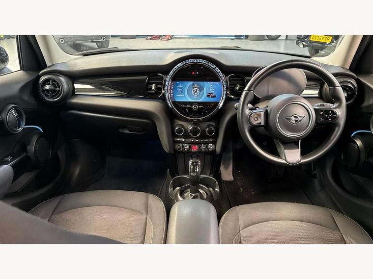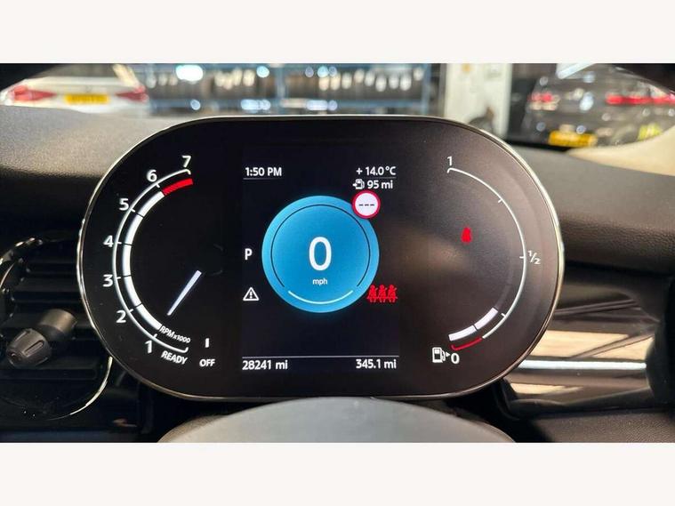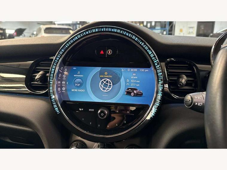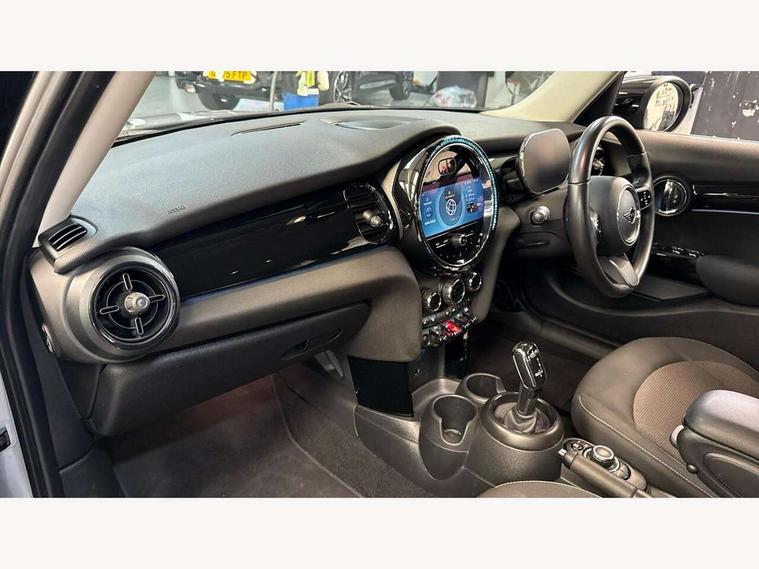 Apple CarPlay, Automatic start/stop function with brake energy recuperation, Compatible mobile phone bluetooth with audio streaming, Electro-mechanical speed dependant steering assistance, Flexible car sharing preparation, Mini E-call, MINI TeleServices, On board computer, Service interval indicator, Double Vanos system, Fully variable valve control, Gear change indicator display, High precision injection, Performance Control, Steptronic transmission with double clutch, 8.8" touchscreen with LED ring, FM tuner and DAB digital radio, 3rd brake light, Automatic headlight activation switch, Body colour fuel filler cap, Chrome border high gloss black slats radiator grille, Dynamic brake lights, Electric front+rear windows, Exhaust tailpipe on left with chrome finisher, Heated rear window, Heated windscreen washer jets, Metal door sill strips with MINI imprint, Model logo Cooper on right of tailgate, Rain sensor window wipers, Rear fog lights, Rear LED lights with union jack design, Rear side wing doors, Rear window wiper, Side scuttle panel with integrated indicator, Sun/heat protection glass, White indicator lenses, 12V Accessory socket in centre console, 3 seat bench in 2nd row, 4 lashing eyes in luggage compartment, 60/40 split folding rear seat, Ambient lighting, Carbon black colour line - Knee roll and door armrest, Chrome interior highlights, Cupholders, Front and rear head restraints, Front and rear isofix with front passenger airbag deactivation, Front and rear velour floor mats, Glove compartment, Height and length steering column adjustment, Interior lighting with 12 different colours across the dashboard, underneath door bezel with illuminated laser-engraved design on central display, Leatherette gearshift lever and handbrake gaiters, LED reading lights, vanity mirror lights, front foot well light and spotlight on front seats, Mechanical seat adjustment - forward/back & backrest for front seats and driver seat height adjust, Multifunction steering wheel, Satellite grey headlining including grab handles and clothes hooks, Single front passenger seat, Sport leather steering wheel with speed limiter and audio/communication controls, Storage compartments in doors, Sunvisors with vanity mirrors, 3 point seatbelts on all five seats, 6 Airbags - front, side, head and seat belt tensioners, Anti-lock braking system (ABS), Child locks on rear doors, DSC - Dynamic Stability Control, Front and rear disc brakes, Hill start assist, Single tone fanfare horn, Tyre pressure monitoring system, Alarm system with tilt sensor, monitoring doors, bonnet interior and tailgate, Electronic vehicle immobiliser, Start/stop toggle with keyless go, Piano black interior trim, Tool kit, Tyre repair kit,