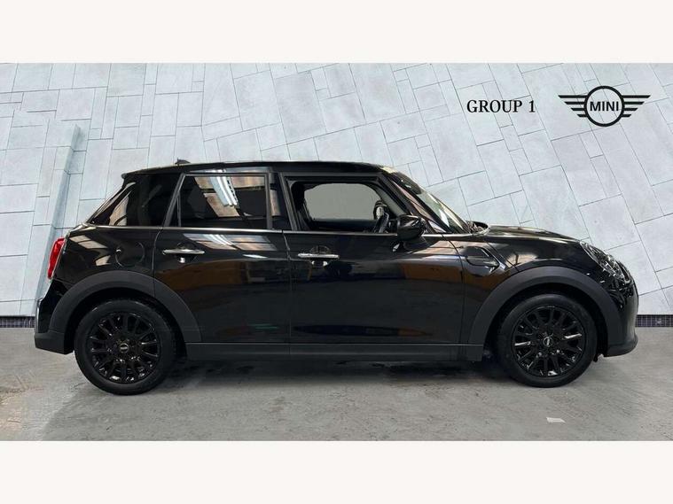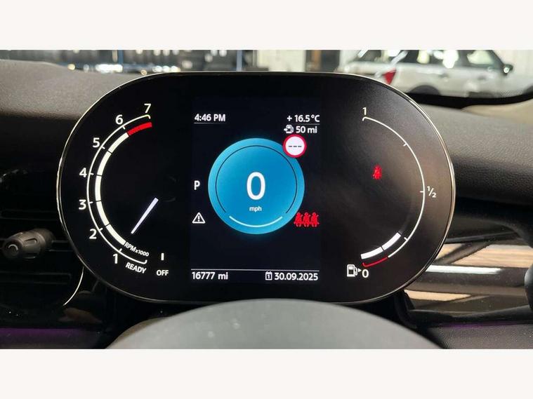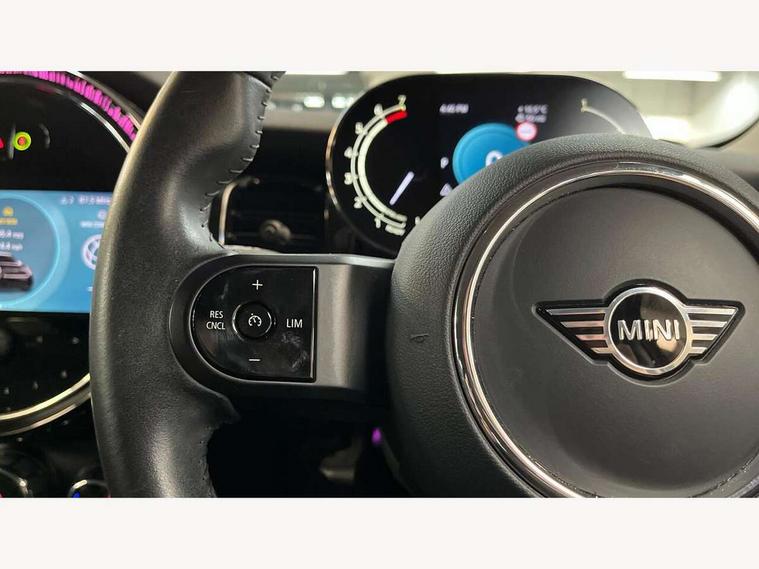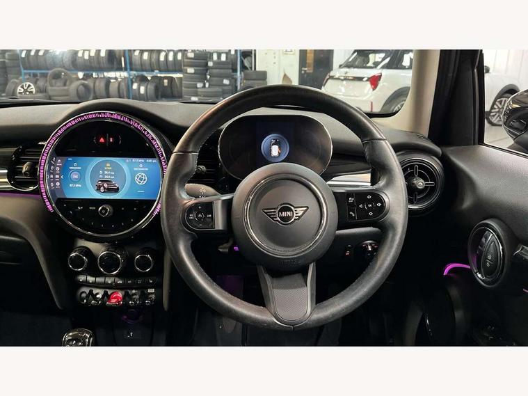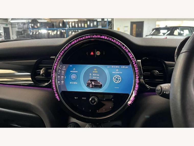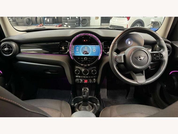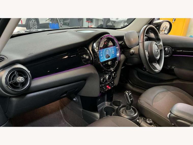 Apple CarPlay, Automatic start/stop function with brake energy recuperation, Compatible mobile phone bluetooth with audio streaming, Electro-mechanical speed dependant steering assistance, Flexible car sharing preparation, Mini E-call, MINI TeleServices, On board computer, Service interval indicator, Double Vanos system, Fully variable valve control, Gear change indicator display, High precision injection, Performance Control, Steptronic transmission with double clutch, 8.8" touchscreen with LED ring, FM tuner and DAB digital radio, 3rd brake light, Automatic headlight activation switch, Body colour fuel filler cap, Chrome border high gloss black slats radiator grille, Dynamic brake lights, Electric front+rear windows, Exhaust tailpipe on left with chrome finisher, Heated rear window, Heated windscreen washer jets, Metal door sill strips with MINI imprint, Model logo Cooper on right of tailgate, Rain sensor window wipers, Rear fog lights, Rear LED lights with union jack design, Rear side wing doors, Rear window wiper, Side scuttle panel with integrated indicator, Sun/heat protection glass, White indicator lenses, 12V Accessory socket in centre console, 3 seat bench in 2nd row, 4 lashing eyes in luggage compartment, 60/40 split folding rear seat, Ambient lighting, Carbon black colour line - Knee roll and door armrest, Chrome interior highlights, Cupholders, Front and rear head restraints, Front and rear isofix with front passenger airbag deactivation, Front and rear velour floor mats, Glove compartment, Height and length steering column adjustment, Interior lighting with 12 different colours across the dashboard, underneath door bezel with illuminated laser-engraved design on central display, Leatherette gearshift lever and handbrake gaiters, LED reading lights, vanity mirror lights, front foot well light and spotlight on front seats, Mechanical seat adjustment - forward/back & backrest for front seats and driver seat height adjust, Multifunction steering wheel, Satellite grey headlining including grab handles and clothes hooks, Single front passenger seat, Sport leather steering wheel with speed limiter and audio/communication controls, Storage compartments in doors, Sunvisors with vanity mirrors, 3 point seatbelts on all five seats, 6 Airbags - front, side, head and seat belt tensioners, Anti-lock braking system (ABS), Child locks on rear doors, DSC - Dynamic Stability Control, Front and rear disc brakes, Hill start assist, Single tone fanfare horn, Tyre pressure monitoring system, Alarm system with tilt sensor, monitoring doors, bonnet interior and tailgate, Electronic vehicle immobiliser, Start/stop toggle with keyless go, Piano black interior trim, Tool kit, Tyre repair kit,