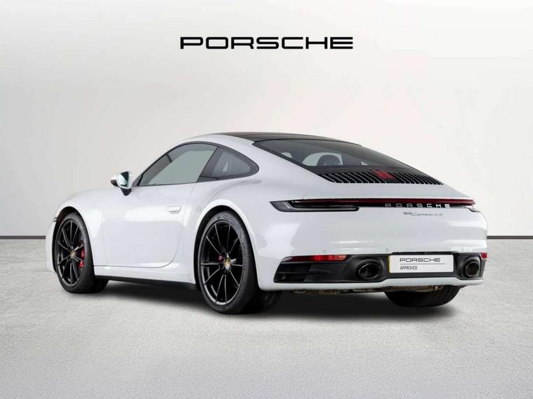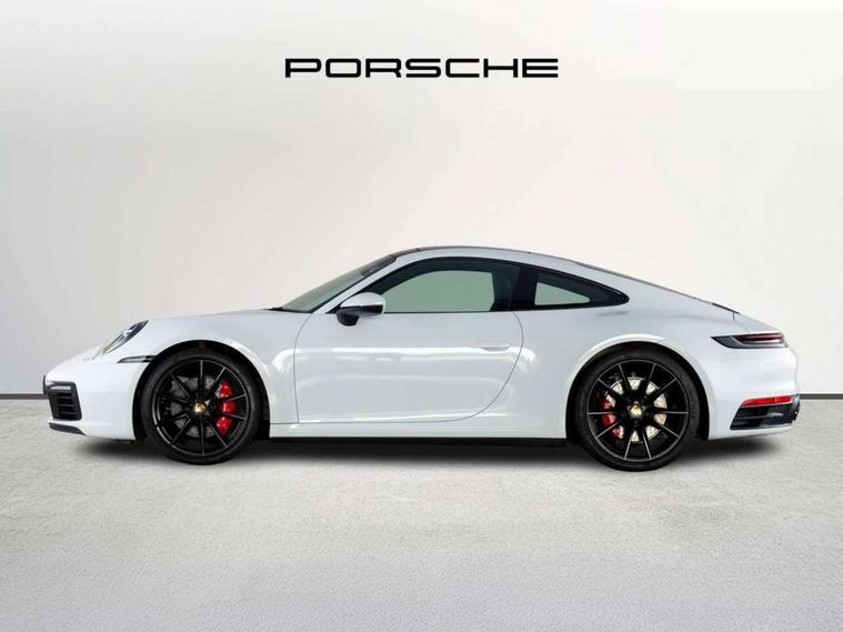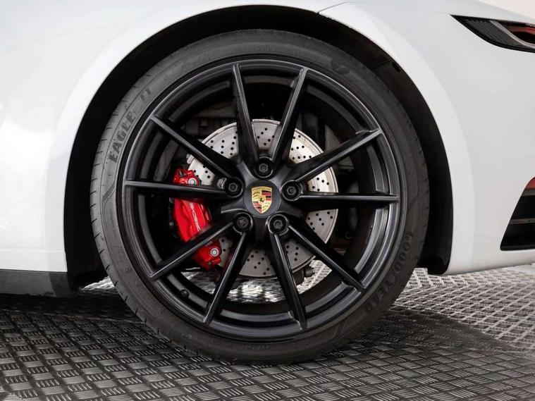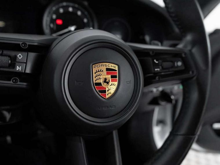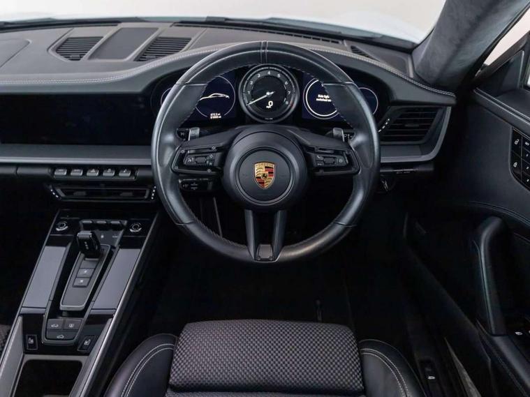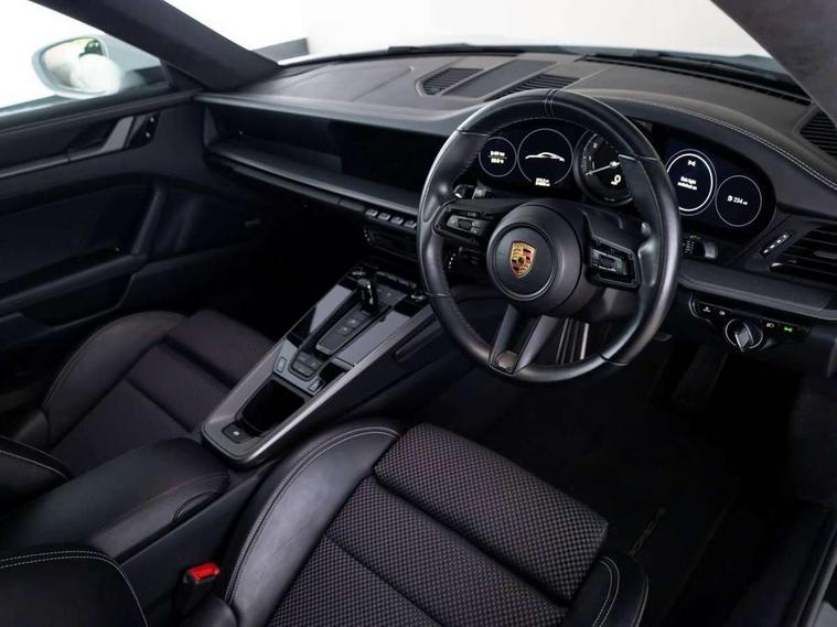 10.9 inch centre display, Automatic start/stop system, Connect Plus, Apple CarPlay, telephone module, wireless internet access, carfinder, remote vehicle status, remote service, vehicle track, Digital display for selected gear in rev counter, Electromechanical power-assisted steering with variable steering ratio and steering pulse generator, Instrument cluster with central analogue rev counter and two 7-inch TFT displays, PAS, Porsche communication management (PCM) including online navigation module, Porsche WET Mode, Service indicator, Stationary management with HOLD function, Trip computer, Warn and Brake Assist, 8 Speed Porsche Doppelkupplung (PDK), Aluminium block and cylinder heads, Direct fuel injection (DFI), Expansion intake manifold, Four valve per cylinder, Front anti roll bar, Gasoline particulate filter, Integrated dry-sump lubrication with an on-demand oil pump, McPherson strut front suspension, Multi-link suspension with anti-roll bar at rear, Porsche Stability Management (PSM), ABS with extended brake functions, Porsche Torque Vectoring Plus (PTV Plus) inc electronically regulated rear differential lock and fully variable torque distribution, Twin turbocharger intercooled, Two three-way catalytic converters and on-board diagnostics for monitoring emission control system, VarioCam Plus variable valve timing and switchable valve lift, Analogue sound system, DAB Digital radio, "PORSCHE" lettering integrated in taillight strip, Automatic headlight activation including welcome home lighting, Automatically operated rear spoiler, Body colour bumpers, Electrically adjustable heated exterior mirrors on door waist rails, aspherical on driver's side, Engine compartment cover grille with vertical slats in silver colour (high-gloss), Four-tract exhaust system with twin dual-tube tailpipes (in stainless steel), Green tinted heat insulating glass, Heated rear windscreen, Intelligent lightweight body in Aluminium/Steel composite construction, LED auxiliary light units in the front end with position lights, direction indicators and side indicators, Model designation on rear trim with highly polished chrome-plated finish, Power windows with one touch operation and door seal protection, Retractable door handles, Side air intakes at front with active cooling flaps and air blades, Taillight strip including integral parking lights and rear driving lights, Three dimensional LED taillights and integral third brake light, Trims on sideskirts in black, Windscreen washer system with aero wiper blades and washer jets, Windscreen with grey top tint, 12V socket in front passenger footwell, Automatic air recirculate, Centre console cupholder, Clothes hooks on seat backrests and on B-pillars, Floor mats, Front and rear head restraints, Heated front seats, Individual driver/passenger temperature controls, Inner door sill guards with model designation, ISOFIX child seat mounting points on passenger seat, Luggage compartment at front, Multifunction steering wheel, Passenger cupholder, Pollen/active carbon filters, Roof lining and A, B & C-pillar trims in fabric, Split folding rear seats, SPORT button to activate dynamic driving settings for engine, transmission (with PDK), Storage compartments in each doors, Two zone automatic climate control, Sound package plus - 911 (992), Brake discs with 350mm diameter at front and 350mm at rear, internally vented and cross-drilled, Dual stage driver/passenger airbags, Electric parking brake, Electromechanical power brake, ESP, Porsche side impact protection doors with thorax airbag in outer backrest side bolster and head airbag for driver/passenger in door panel, POSIP, PTM (Porsche Traction Management) and All-wheel drive with map-controlled multi-plate clutch, Six piston front and four piston rear in closed type aluminium monobloc, TPMS (Tyre pressure monitoring system), Alarm, interior ultrasonic protection, Electronic immobiliser, Keyless Go, Remote central locking, Tyre sealing compound and electric air compressor kit,