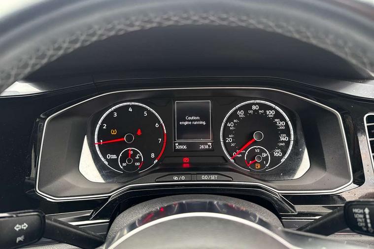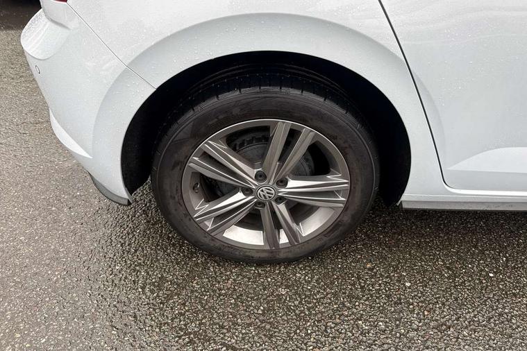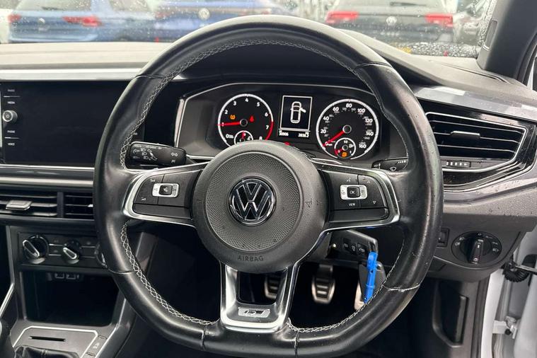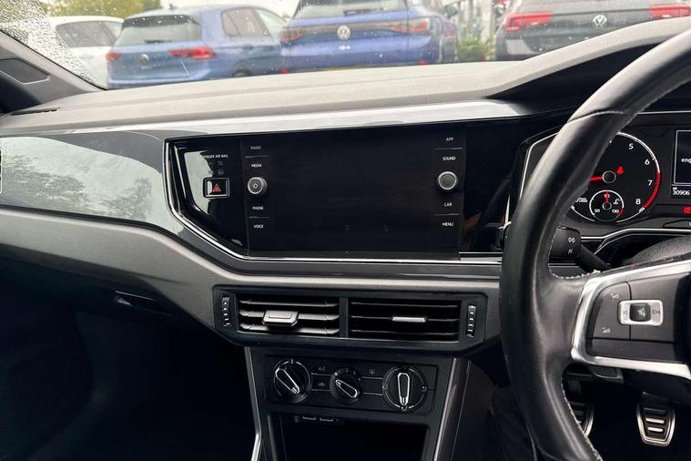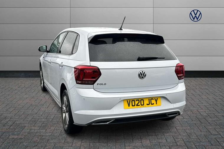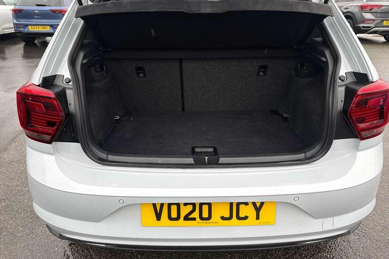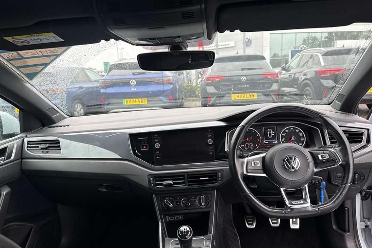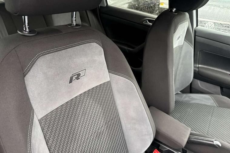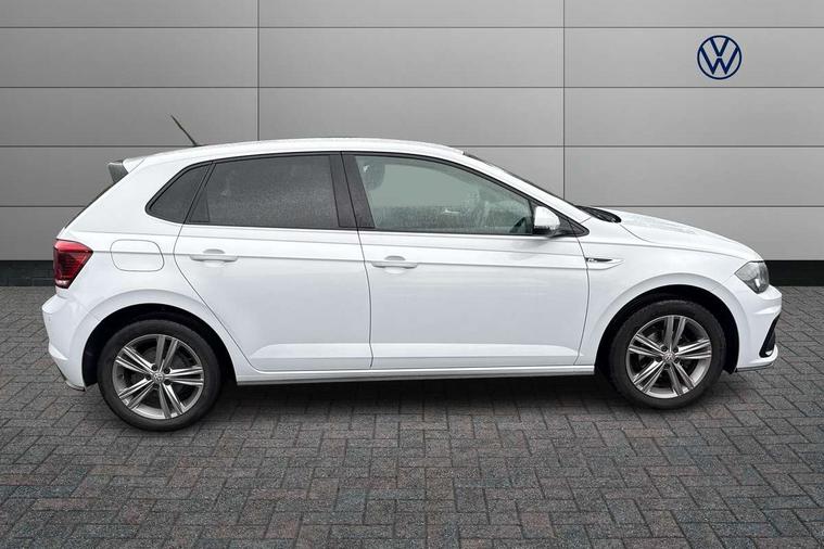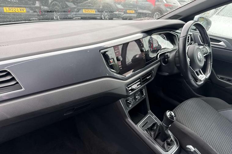 App-Connect, Digital clock, Driver alert system, Lights on warning, Multifunction computer plus, Power assisted speed sensitive steering, Speedo and rev counter, electronic odometer, trip, service interval display and fuel gauge, Start/stop system, Volkswagen connect, Warning buzzer and light for front seatbelts unfastened, Battery regeneration during braking, Galvanished body, Black grille with chrome surround, Body colour door handles, Body coloured side sills, Chrome trimmed strip on lower bumper, Electric front windows, Electrically foldable, adjustable and heated door mirrors with reverse activated kerb view adjustment on passenger's side, Front fog lights including static cornering, Front windscreen washers and wipers with 4 speed intermittent delay, Heated rear window with auto timer, High level 3rd brake light, LED darkened rear light clusters, LED daytime running lights, LED rear number plate lights, Left and right chrome effect trapezoid fascia exhaust tailpipe surrounds, Rear diffuser, Rear electric windows, Rear windscreen washer and wiper with interval delay, reverse activated, Unique R Line badging, 2 bag hooks in luggage compartment, 2 front cupholders and 12 V socket with cover, 3 rear head restraints, 60/40 split folding rear seat, Ambient lighting in front foorwell, front/rear door and dashboard light strips, Carbon flag cloth upholstery, Centre console storage with open storage compartment, Chrome-plated electric mirror adjustment switch surround, Chrome-plated electric window button surround, Driver and front passenger seat height adjustment, Driver and front passenger sunvisors with illuminated vanity mirrors, Dust/pollen filter, Folding rear seat backrest, Front + rear carpet mats, Front centre armrest with storage compartment, Front head restraints, Front seat backrest storage pockets, Front sport seats with lumbar adjustment and R line logo on seat backrest, Gear lever gaiter in black trim surround, Glovebox, Handbrake grip button in chrome effect, Height/reach adjustable steering column, Instrument lighting, adjustable panel illumination, Interior light with delay, Isofix Preparation 2 Rear child seats, Jack and tool kit, Leather gear knob and handbrake grip, LED interior lighting - 2 reading lights front and rear with interior delay and dimming function, Luggage compartment cover, removable, Luggage compartment lighting, Luggage compartment with variable load floor, Stainless steel pedals, Storage compartment in front doors, Storage compartment in rear doors, Storage compartment under front seats, Three spoke leather trimmed multifunction steering wheel with aluminium inserts and R Line Logo, Titanium black roof lining and sun visors, Unique R Line door sill protectors, Light and sight pack - Polo, R Line styling pack - Polo, 3 point height adj front seatbelts + pretensioners, 3x3 point rear seatbelts, ABS, Automatic post collision braking, Driver/front passenger airbag, Drivers and front passengers safety optimised head restraints, ESP with EDL + ASR, Front and rear passenger curtain airbags, Front passenger airbag deactivation, Front seat side impact airbags, Front/rear disc brakes, Hill hold control, Hydraulic Brake Assist (HBA), Single tone horn, Tyre pressure monitoring system, Alarm with interior protection and deactivation via infotainment system, Electronic engine immobiliser, Remote central locking with 2 remote folding keys, Chrome plated air vent surround, Chrome plated instrument surrounds, Shadow steel decorative inserts, Steel space saver spare wheel,