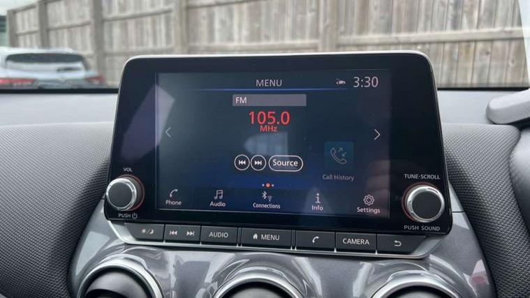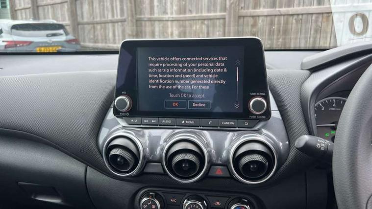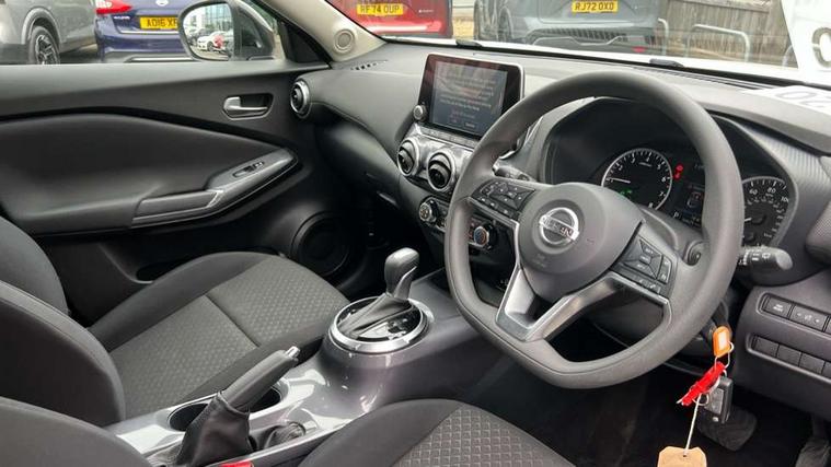 4.2" full colour TFT screen combimeter, Apple CarPlay and Google Android auto, Cruise control + speed limiter, eCall emergency call system, Emergency and breakdown call, Idle start/stop system, Intelligent lane intervention, Lane departure warning system, Nissan connect 8" touch screen entertainment system, Nissan connect services and Wifi connection, Outside temperature sensor, Power Steering, Rear view camera, Traffic sign recognition, Trip computer, Voice recognition, Gasoline particulate filter, 4 speakers, Bluetooth system, USB, Aux-in and 12V socket, DAB Digital radio, Automatic hazard signal with emergency stop signal, Body colour bumpers, Body colour door handles, Electrically adjustable door mirrors with integrated indicators, Follow me home headlights, Front and rear electric window with one touch driver window, High beam assist, LED daytime running lights, LED headlamps, LED rear fog lamp, LED rear lamps, Manual dimming interior rear view mirror, Pearl black door mirrors, Rear side wing doors, Rear wiper, Three blink turn signal, 3 height adjustable rear headrests, 3 seat bench in 2nd row, 60/40 split folding rear seat, Cloth upholstery, Driver and passenger sliding and reclining seats, Driver/passenger sunvisors and vanity mirrors, Front and rear cabin lights, Front door pockets with bottle holders, Front head restraints, Height adjustable driver's seat, Internal chrome door handles, Luggage space lighting, Monoform sporty seats, Multifunction steering wheel, Rear door bottle holders, Single front passenger seat, Steering wheel mounted gearshift paddles, Telescopic steering wheel adjustment, Two cupholders in front centre console, Two rear isofix child seat anchorage points with top tether, Welcome light and console tray ambient lighting, ABS with EBD and brake assist, Active ride control, Active Trace Control, Driver and passenger airbags, Driver and passenger side airbags, Electronic Stability Programme (ESP), Front and rear curtain airbags, Height adjustable seatbelts, Hill start assist, Intelligent emergency braking with pedestrian and cyclist recognition, Rear door child safety locks, Rear drum brakes, Seatbelt reminder for driver/front passenger and rear seats, Single tone horn, Three 3 point rear seatbelts, Traction control, Tyre pressure monitoring system, VDC Dynamic Vehicle Control, Alarm, Immobiliser, Remote central locking, 17" Sakura Flex wheels,