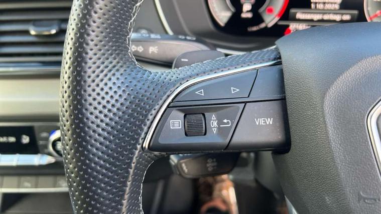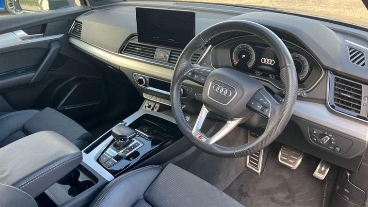 Audi connect safety and service (e-call), Audi connect with Amazon Alexa Integration, Audi drive select, Audi virtual cockpit plus with 12.3" screen and three different layout designs, Audi wireless smartphone interface, Automatic start-stop system with coasting functionality and efficiency programme, Bluetooth interface, Electro - mechanical power assisted steering, MMI navigation plus with 10.1" touch screen, Power tailgate, Reversing camera, Service interval indicator, Voice control system with Audi hotword activation "Hey Audi", Quattro on demand, S line sports suspension, 2 x USB charging port with aux input socket, DAB Digital radio, Acoustic windscreen, Aluminium roof rails, Audi matrix LED headlights with dynamic front and rear indicators, Auto dimming door mirrors, Auto dimming rear view mirror, Automatic headlights and windscreen wipers, Body colour door mirrors, Body colour rear diffuser with matt aluminium silver surrounds, Body colour underbody protection, Chrome plated exhaust trims, Daytime running lights, Door sills in Selenite silver, Electric adjustable/heated/folding door mirrors, Front air inlet surrounds in aluminium, Front and rear electric windows, Front radiator grille in honeycomb design, Headlight washers, High level LED brake light, Lower bumpers painted in contrast Manhattan grey, Rear chrome trim strip below lights, Rear privacy glass and rear side windows, Rear side wing doors, Rear wiper, Roof bars, S Line badges on the front wings, S Line front and rear bumpers, S Line rear spoiler, S Line side skirts, 3 rear headrests, 40:20:40 split folding 3 rear bench seat in 2nd row with rear centre armrest, Black cloth headlining, Comfort front centre armrest, Contrast stitching on seats, steering wheel and gear lever gaiter, Deluxe 3 zone electronic climate control, Front head restraints, Front/rear floor mats, Gear lever in black leather, Heated front seats, Height/reach adjustable steering column, Illuminated door sill trims with S logo, ISOFIX child seat mounting and top tether, Manual seat adjustment with 4-way electric lumbar support, Removable luggage compartment floor, Single front passenger seat, Stainless steel pedals, Sunvisors with vanity mirrors, Trunk roller cover, High gloss pack - Q5, LED interior light pack - Q5, 3 point seatbelts on all seats, 6 airbags - Driver, front passenger, curtain and side airbags, Electrically operated child locks on rear doors, Electromechanical parking brake, Electronic stabilisation control including ABS, ASR and EDL, Front passenger airbag deactivation, Hill descent control, Hill hold assist, Multi collision brake assist, Pop-up bonnet for pedestrian protection, Pre sense city, Seat belt force limiter, Seatbelt monitoring, Tyre pressure warning, Warning triangle and first aid kit, Anti theft alarm, Anti-theft wheel bolts, Keyless Go access/ignition system, Remote central locking, Matt brushed aluminium inlays,