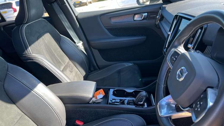 12.3" Active TFT crystal driver's instrument display, 9" centre console portrait touch screen, Adjustable steering wheel force, Bluetooth hands free telephone kit, Drive mode selector, Lane keep assist with driver alert control, Oncoming Lane Mitigation, Sensus navigation with European mapping and traffic information, Speed limiter, Speed sensitive steering, Voice activated control for key functions, Volvo on call, Electric front axle drive, Recharging port located in nearside front wing, Sports chassis, DAB Digital radio, Steering wheel mounted remote controls, Active bending headlights, Adaptive brake lights with high level LED brake lights, Auto dimming interior mirror, Automatic headlamp levelling, Black stone door mirrors, Black stone roof, Colour coordinated auto folding and heated power door mirrors, Dark tinted windows for rear door side windows and cargo compartment, Dual integrated exhaust pipes with high gloss black surround, Front aluminium tread plates, Front and rear electric windows, High gloss black front and rear skid plate, High gloss black lower front bumper, High gloss black mesh front grille with high gloss black surround, High gloss black roof rails, High gloss black sensus surround deco, High gloss black window trim, Home safe and approach lighting, LED front fog lights with static cornering light function, LED Headlights + Active high beam incorporating daytime running lights, Rain sensor with automatic windscreen wiper activation, Rear side wing doors, Rear wiper, Roof antenna, Roof spoiler, Visible VIN plate, 12V socket in front tunnel console and luggage compartment, 2 zone electronic climate control and rear air vent, 3 seat bench in 2nd row, 60/40 split folding rear seat, Ambient front door and instrumental panel lighting, Black headlining, Bright metal luggage threshold, Centre console cupholders and storage, Driver's side lower dashboard credit card storage compartment, Front door pocket and front cupholder illumination, Front footwell illumination, Front headrests, Front reading light and theatre lighting, Glovebox bag hook, Height/reach adjustable steering column, High gloss centre tunnel deco, Illuminated glovebox, Illuminated luggage compartment, Illuminated tailgate, Illuminated vanity mirrors, Isofix attachments on outer rear seats, Key integrated remote, Leather gearknob, Load protection net, Multi directional lumbar support, Multicolour theatre lights, Rear armrest / integral cup holders / storage tray, Rear coat hook, Rear reading and courtesy lights, Single front passenger seat, Sports Leather steering wheel, Sports pedals, Underfloor cargo storage, 3x3 point rear seatbelts, City safety includes pedestrian, cyclist and large animal detection and front collision warning with full auto brake, Drivers knee airbag, Dual stage driver/passenger airbags, Electronic parking brake with auto hold, First aid kit, Front and outer rear seatbelt reminder and pretensioners, Front seats SIPS airbags, Hill descent control, Hill start assist, Inflatable curtain, Passenger airbag cut-off device, Road sign information display, Run off Road Mitigation, Run off Road Protection, SIPS (Side Impact Protection System), Slippery road and hazard light alert, Stability and Traction Control with Spin control, Engine Drag Control and Corner Traction Control, Tyre pressure monitoring system, Vehicle deceleration control with Anti-lock Brake System, Electronic Brake Distribution and Emergency Brake Assist, Warning triangle, WHIPS whiplash protection system - front, Anti-theft alarm including immobiliser/volume sensor + level sensor, Care key with user defined top speed, Key integrated remote control central locking + fuel flap with deadlocking system and auto open/close power windows, Locking wheel nuts, Private locking for tailgate, Cutting edge aluminium inlay,