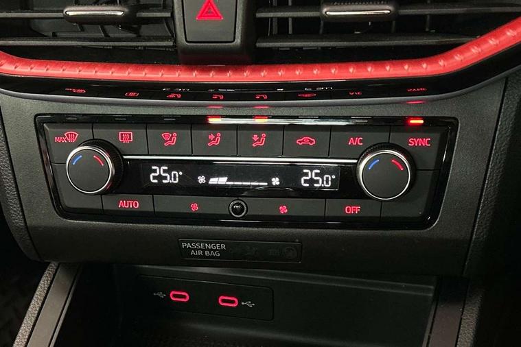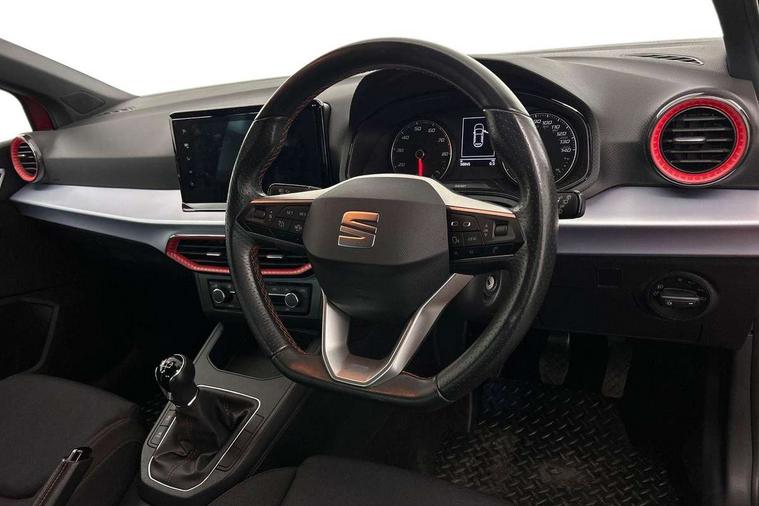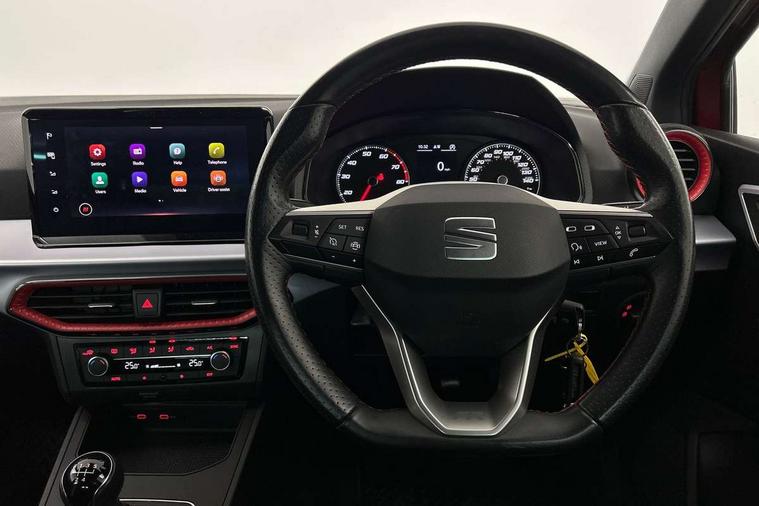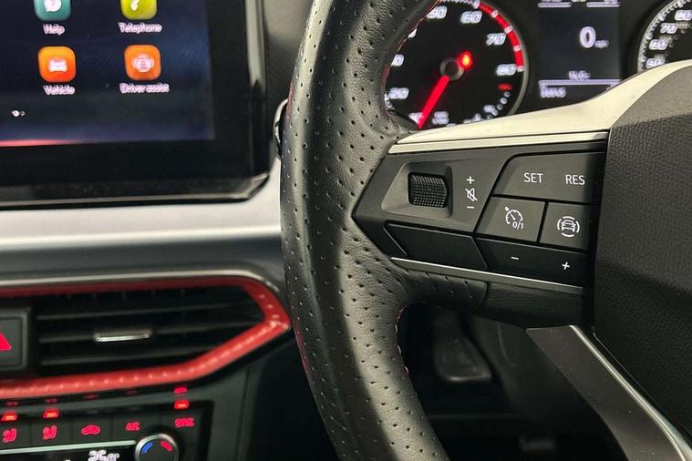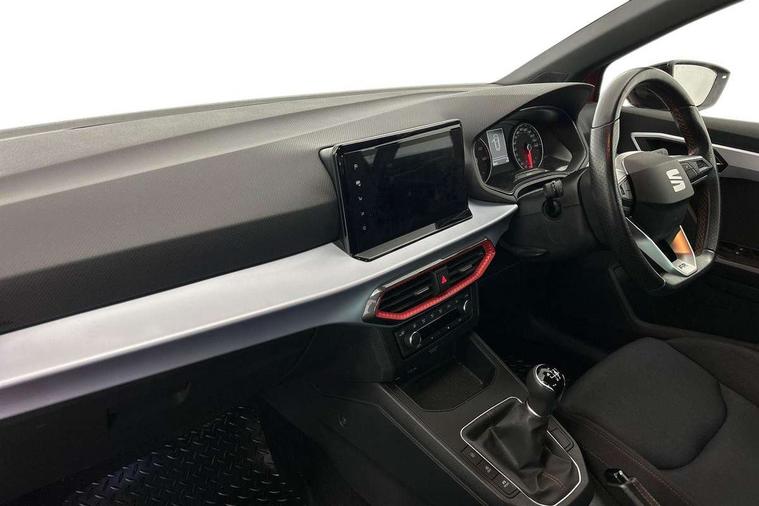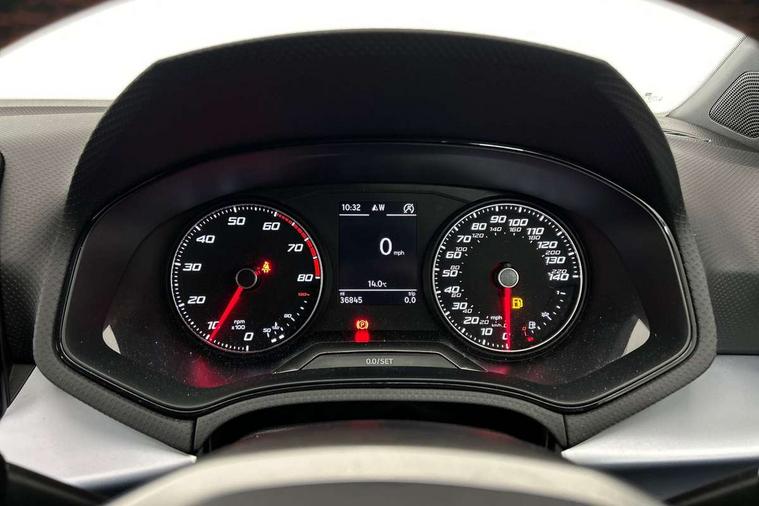 'Lights On' Reminder warning buzzer, 9.2" touchscreen navigation system with type C USB socket, Voice control and DAB/AM/FM radio, Auto start and stop system, Bluetooth audio streaming with handsfree system, Digital clock, Full link smartphone integration with mirror link, wireless apple carplay, Google android auto + USB Type C cable for apple and android devices, Lane assist, Low fuel warning light, Outside temperature gauge, Power Steering, Seat connect with safety, service, remote and online, SEAT drive profiles and ECO function, SEAT logo boot release, Speed limiter, Trip computer, Sports suspension, Auxiliary input socket, Radio/MP3 player, SD card slot, Steering wheel mounted controls, Anti theft roof antenna, Auto dimming rear view mirror, Automatic rain sensing wipers, Black door mirrors, Body colour bumpers, Body colour door handles, Brilliant black window surrounds, Dark tinted rear windows, Electric adjustable/heated/folding door mirrors, Electric front windows, Electric headlight adjustment, Electric rear windows, Front/rear fog lights, FULL LED automatic headlights with dynamic headlight range control, coming and leaving home, LED daytime running lights, LED tail lights, Rear roof spoiler with FR twin exhausts, 60/40 split folding rear seat, Ambient interior lighting, Chrome detailing and black headlining, Cloth upholstery, Dual zone climate control with combination filter, Front courtesy lights, Front cupholders x 2, Front reading lights, Gear shift indicator, Glovebox, Height adjustable front and rear headrests (five), Height adjustable front seats, Height/reach adjust steering wheel, Illuminated air vent surrounds, Illuminated boot, Instrument lighting with brightness control, Isofix, Leather multifunction flat bottomed sports steering wheel, Passenger sunvisor, Sports seats, Sunvisors with mirror and driver side card holder, 3 point seatbelts on all 3 rear seats, ABS, Active front headrests, Child locks on rear doors, Electronic stability control, Energy recovery system, Front assist forward collision warning and autonomous emergency braking, Front driver and passenger side airbags with curtain airbag and front passenger airbag deactivation, Hill hold control, Multi-Collision braking, Seat belt reminder for front and rear seats, Tiredness recognition system, Tyre pressure monitoring system, Electronic engine immobiliser, Locking wheel bolts, Perimeter alarm and interior monitoring with backup horn and tow away protection, Remote central locking + deadlocks, 17" Alloy wheels in Brilliant silver,