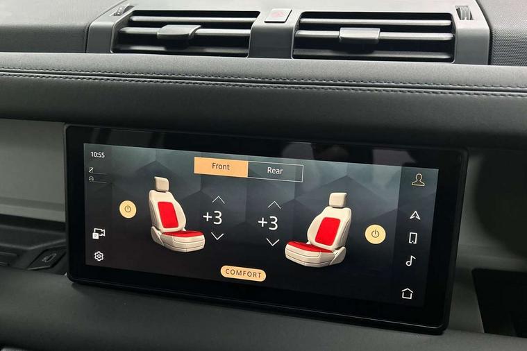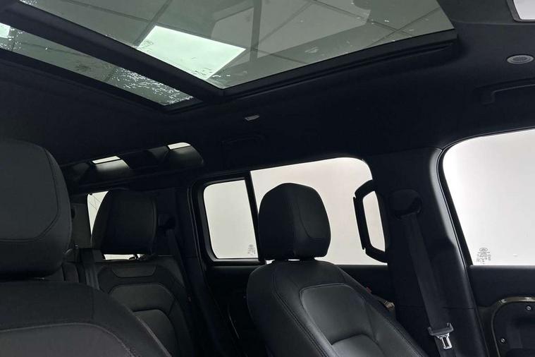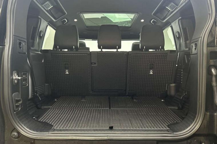 360 degree parking aid, 3D Surround Camera with 360 View, 180 Rear View, Front Traffic Detection, Forward Vehicle Guidance, Tow Hitch Assist and clear sight Ground View, Adaptive cruise control, Android Auto, Apple CarPlay, Assisted tailgate with soft close, Blind spot assist, Bluetooth system, Brake pad wear indicator, Clear exit monitor, Connected navigation pro, Driver condition monitor, Electric power assisted steering (EPAS), Interactive driver display, Lane keep assist, Push button start, Rear traffic monitor, Traffic sign recognition with adaptive speed limiter, Trip computer, Wade Sensing, 8 speed automatic transmission, Adaptive dynamics, All wheel drive system, Twin speed transfer box, DAB Radio (Digital Audio Broadcasting), Meridian 400w sound audio system with 11 speakers and subwoofer, Pivi pro connected, Automatic headlight levelling, Automatic headlights, Black exposed rear recovery eyes, Centre high mounted stop light, Electric heated/power fold door mirrors with approach lights and auto dimming driver side, Electric windows with one touch open/close and anti-trap, Follow me home lighting, Heated rear window with timer, Heated windscreen, LED tail lights, Privacy glass, Puddle lights, Rain sensing windscreen wipers, Rear fog lights, Rear side wing doors, Rear wiper, Side hinged tailgate, Trailer stability assist, X-Dynamic badge, 12V power socket in loadspace, 2 seat bench in 3rd row, 3 seat bench in 2nd row, Alpine lights, Configurable cabin lighting, Durable rubber cabin flooring, Durable rubber loadspace flooring, Footwell lights, Front passenger isofix child seat attachment, Loadspace cover, Loadspace Hook, Multifunction steering wheel, Overhead stowage for sunglasses, Premium cabin lighting, Rear headrests, Rear ISOFIX, Rear reading lights, Single front passenger seat, Storage glovebox, Sunvisors with illuminated vanity mirrors, Online pack with data plan - Defender, 7 three point seatbelts, ABS, Brake hold function, Cornering brake control (CBC), Customer configurable autolock, DSC - Dynamic Stability Control, EBD - Electronic brakeforce distribution, Electric parking brake (EPB), Emergency brake assist, Emergency braking, ESP + traction control, Front airbags with passenger seat occupant detector, HDC - Hill descent control, Hill launch assist, Low traction launch, Power operated child locks, Remote for (e-Call, Optimised assistance call, InControl app, Climate, beep and flash and door), RSC - Roll stability control, Seat belt reminder, TPMS (Tyre pressure monitoring system), Alarm, Immobiliser, Intrusion sensor, Keyless entry, Locking wheel nuts,
