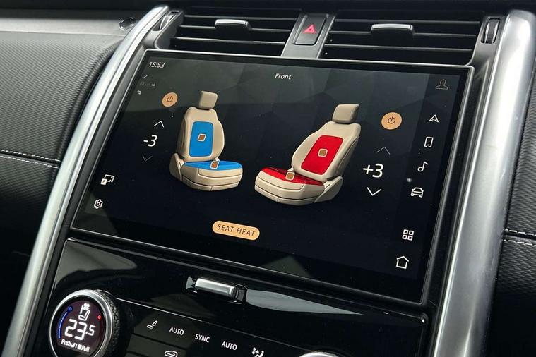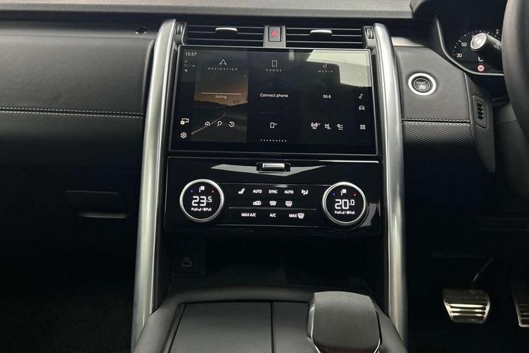 11.4" touchscreen, 3D surround camera, Adaptive cruise control, Android Auto, Apple car play, Blind spot assist, Driver condition monitor, Electric power assisted steering (EPAS), Emergency services call system, Front and rear parking aid, Interactive driver display, Lane keep assist, Power inner tailgate, Power tailgate/boot lid, Push button start, Rear collision monitor, Rear traffic monitor, Remote, Remote boot release, Service interval indicator, Speed proportional steering, Sportshift selector, Stop/start system, Traffic sign recognition with adaptive speed limiter, Trip computer, Wade Sensing, Adaptive dynamics, Dynamic stability control, Electronic air suspension, Front axle open differential, Digital Audio Broadcast radio-DAB, Dynamic volume control, Pivi pro connected, USB/aux input socket, Acoustic laminated windscreen, Animated directional indicators, Auto dimming interior rear view mirror, Automatic headlight levelling, Automatic headlights, Body colour bumpers, Body colour door handles, Centre high mounted stop light, D300 badge, Electric heated/power fold memory door mirrors with approach lights and auto dimming driver side, Electric windows with one touch open/close and anti-trap, Heated rear window, Heated windscreen, LED darkend tail lights, Matrix LED headlights with signature DRL, Narvik black Discovery script, Privacy glass, Puddle lights, Rain sensing windscreen wipers, Rear fog lights, Rear side wing doors, Rear wash/wipe, Trailer stability assist, Variable intermittent wiper, 12V power sockets, 12V USB charging socket in loadspace, 2 seat bench in 3rd row, 3 seat bench in 2nd row, 60/40 electric heated folding rear seats with manual slide and powered recline, centre headrest and armrest, Central hinged twin lidded storage, Configurable cabin lighting, Ebony morzine headlining, Electric adjustable steering column, First and second row door bins, Footwell lights, Front and rear 12V with front USB, Front passenger seat isofix location point, In-facia storage, Isofix child seat preparation for front passenger seat, Leather steering wheel, Loadspace cover, Loadspace Hook, Loadspace light, Lockable glovebox, Lower centre console storage, Luggage tie downs in loadspace, Multi function steering wheel, Overhead lighting console, Premium carpet mats, Rear ISOFIX, Shopping bag hook, Single front passenger seat, Storage glovebox, Sunvisors with illuminated vanity mirrors, Third row storage, Treadplates with metal inserts, Twin front cupholders with cover, USB with 12V socket in centre console, Black exterior pack - Discovery Dynamic SE/HSE, Online pack with data plan - Discovery, 3x3 point rear seatbelts, Anti-lock braking system (ABS), Brake pre-fill technology, Cornering brake control, Curtain airbags, Customer configurable autolock, Driver and passenger airbags, EBD - Electronic brakeforce distribution, Electronic traction control, Emergency brake assist, Emergency braking, ESP, Front side airbags, Gradient acceleration control, Hill descent control, Hill launch assist, Power operated child locks, Rear airbags, Roll stability control, Seat belt reminder, Torque vectoring brake, Tyre pressure monitoring system, Immobiliser, Intrusion sensor, Keyless entry, Locking wheel nuts, Remote central locking, All terrain tyres,